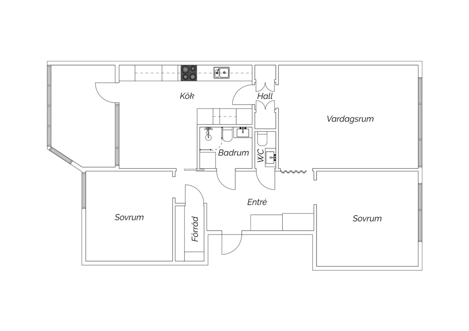 3 rum, 84 kvm boarea