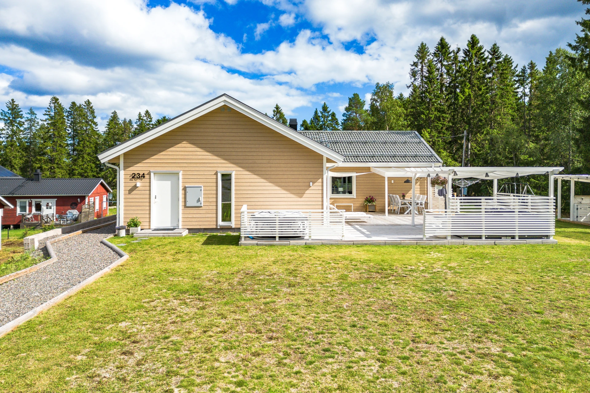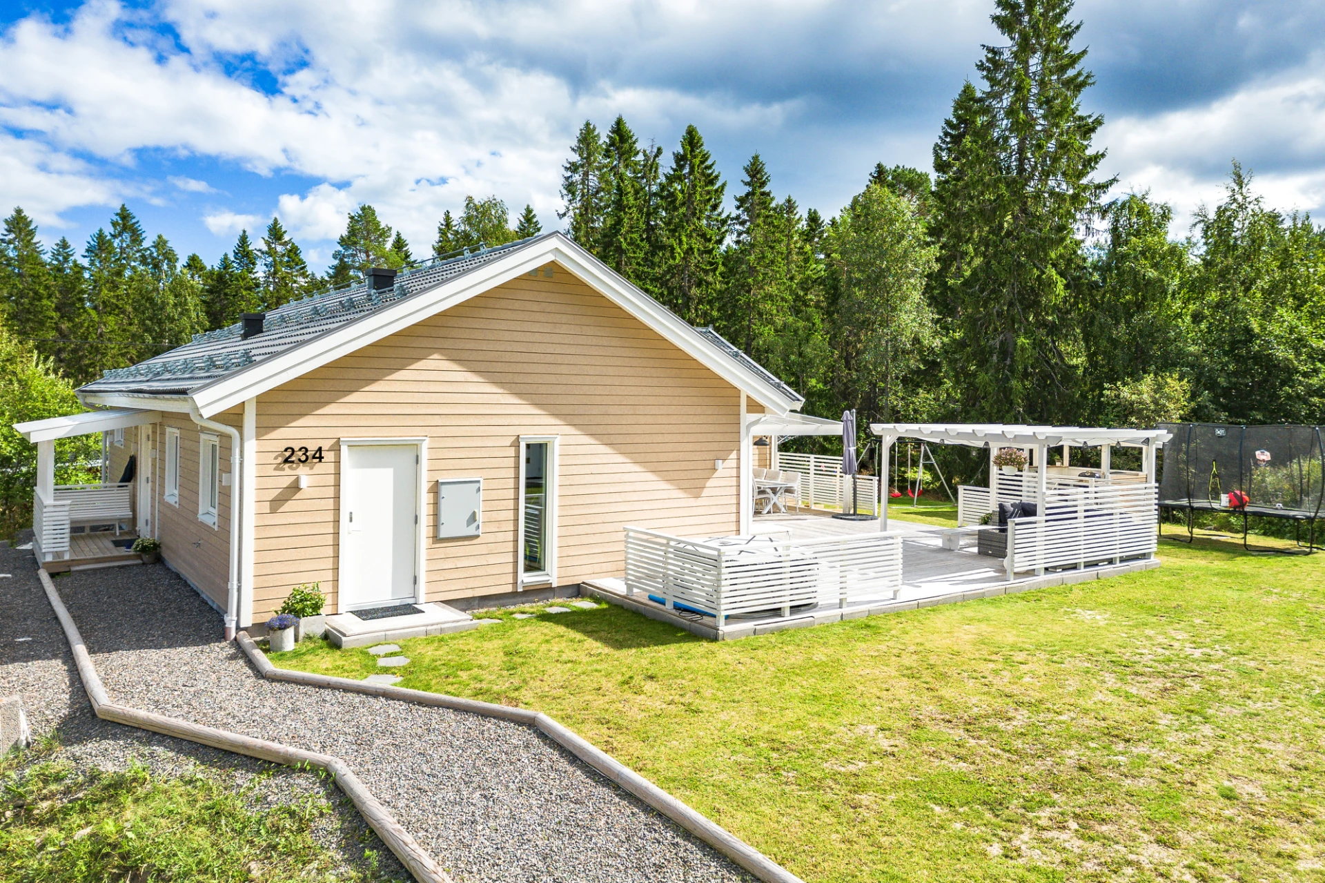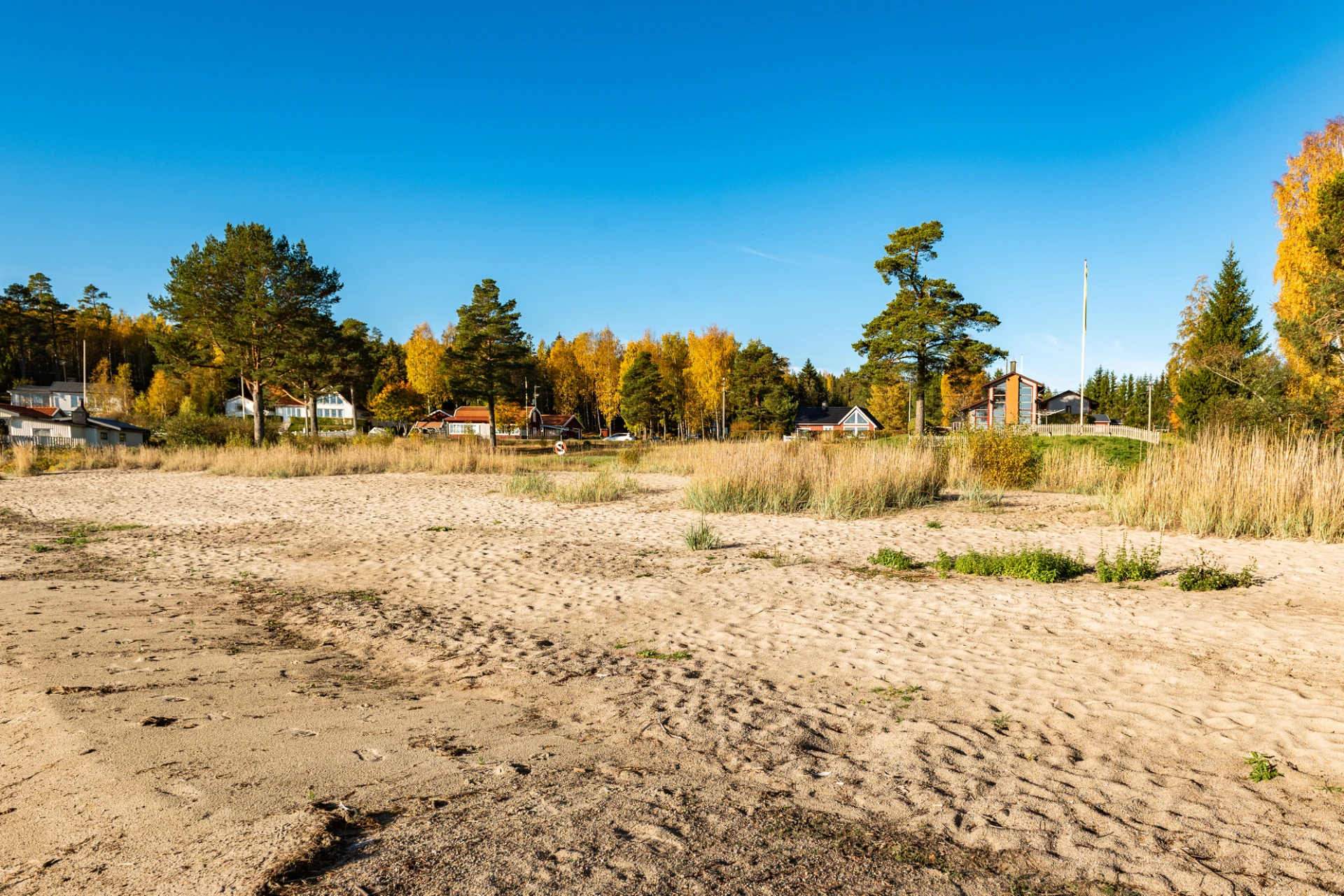 Sovrum 2 har ljusa väggar och ett ljust ekgolv, vilket ger en rymlig och luftig känsla. Det finns tillräckligt med plats för både en säng och ett skrivbord.