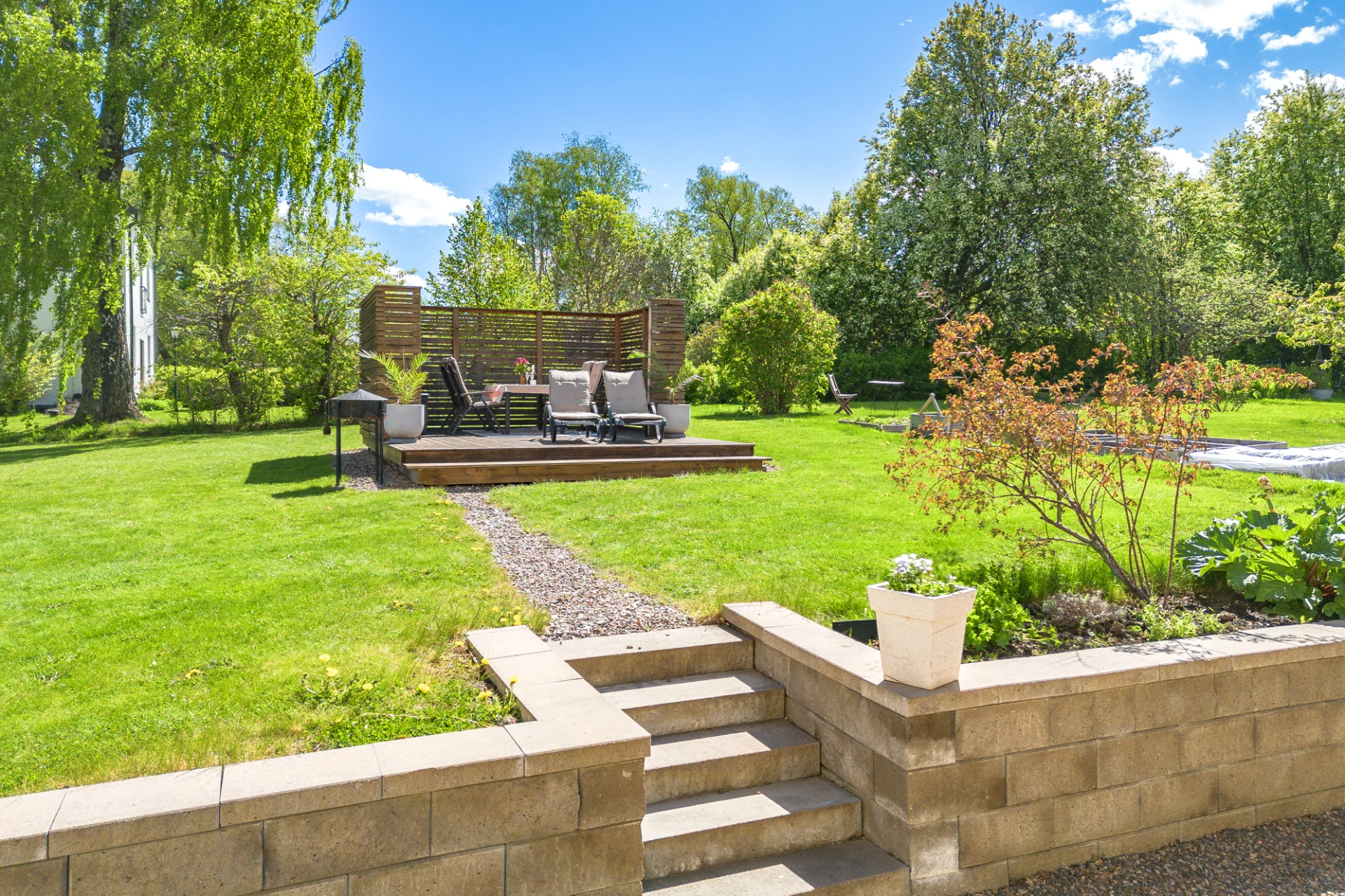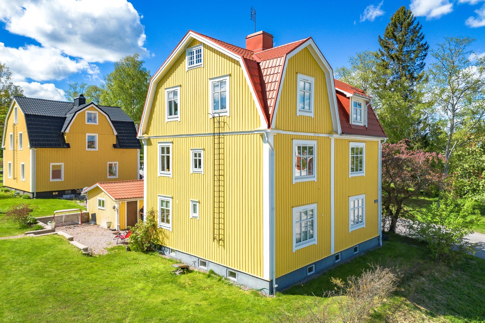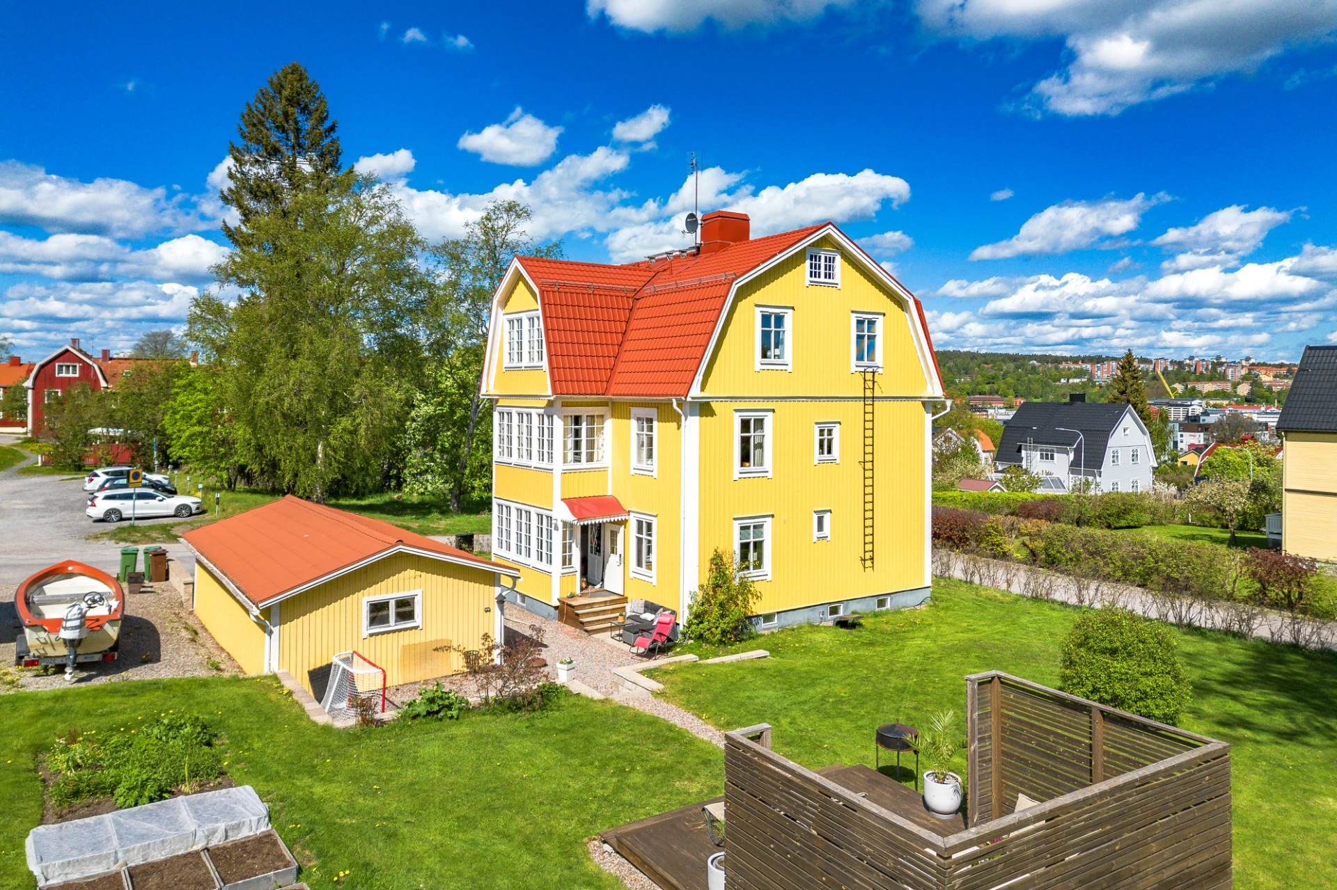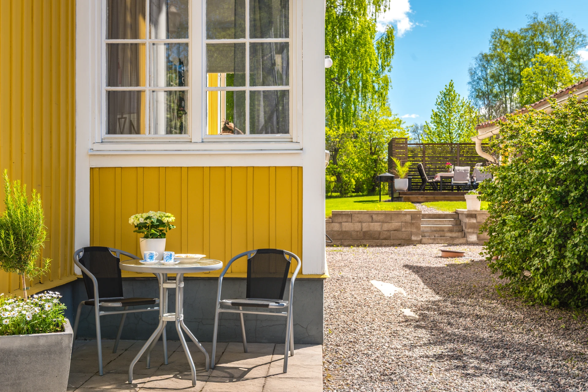 Vardagsrum på våningsplan 1 erbjuder utrymme för en bekväm sittgrupp och en matsalsmöbel, perfekt för både avkoppling och måltider.