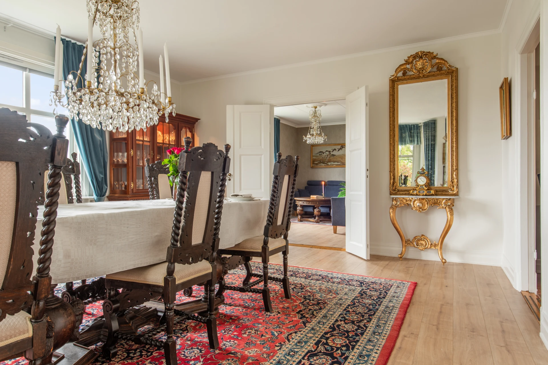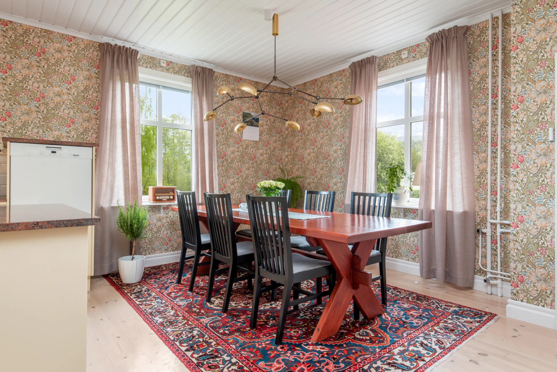 Rymligt kök med plats för stort matsalsbord, generösa arbetsytor och gott om förvaring. Utrustat med köks- och köksbänkar i granit, vilket ger en elegant touch.
