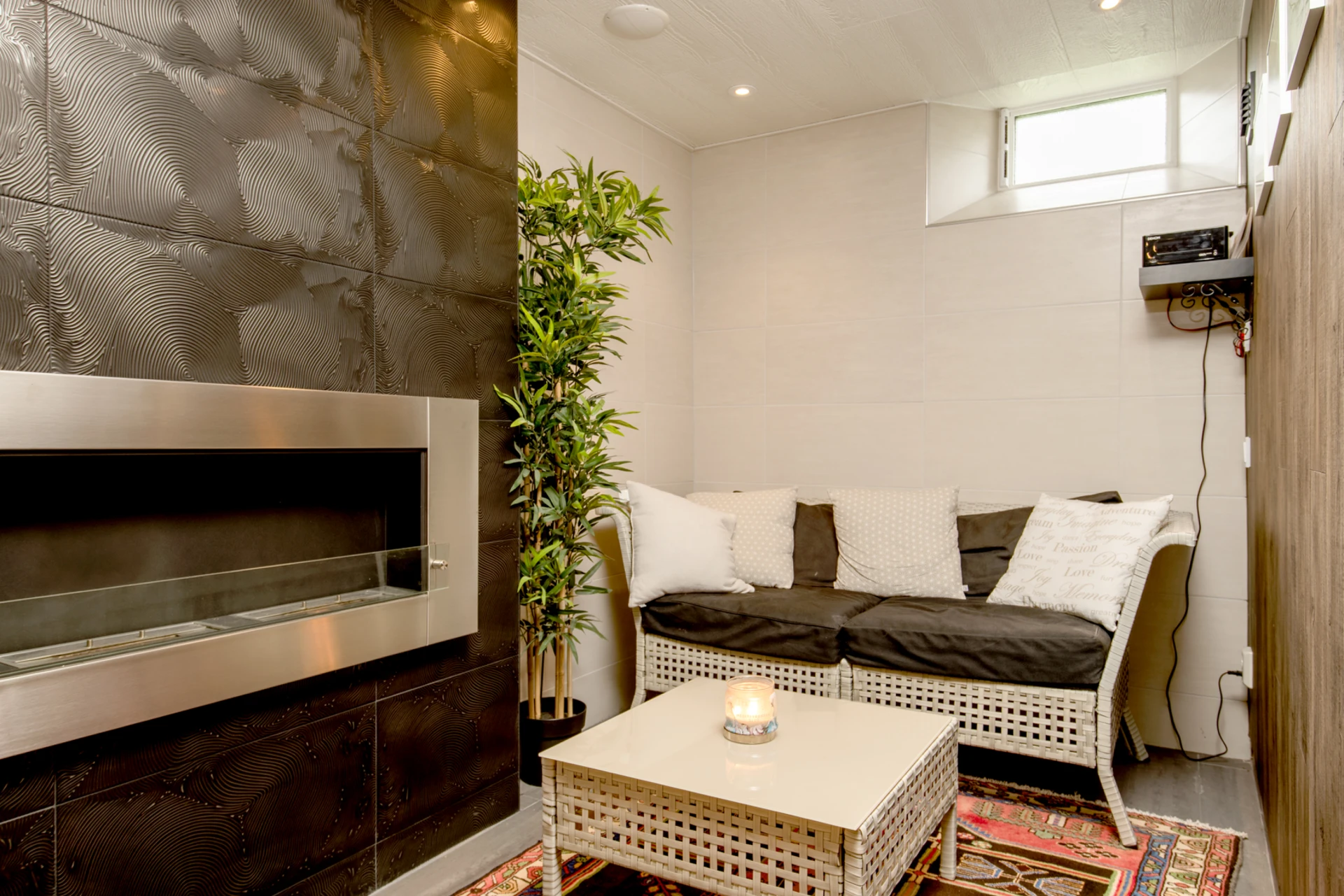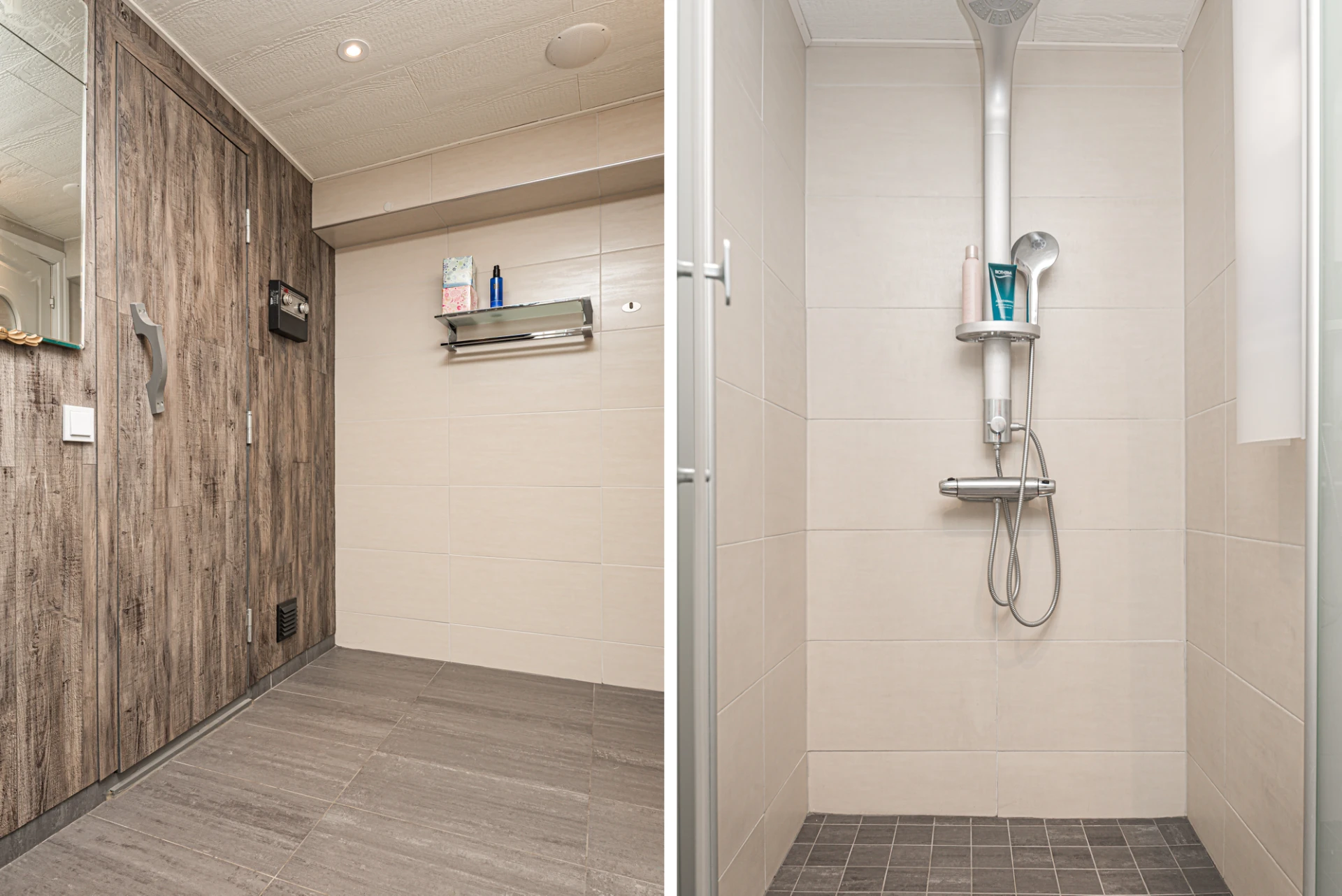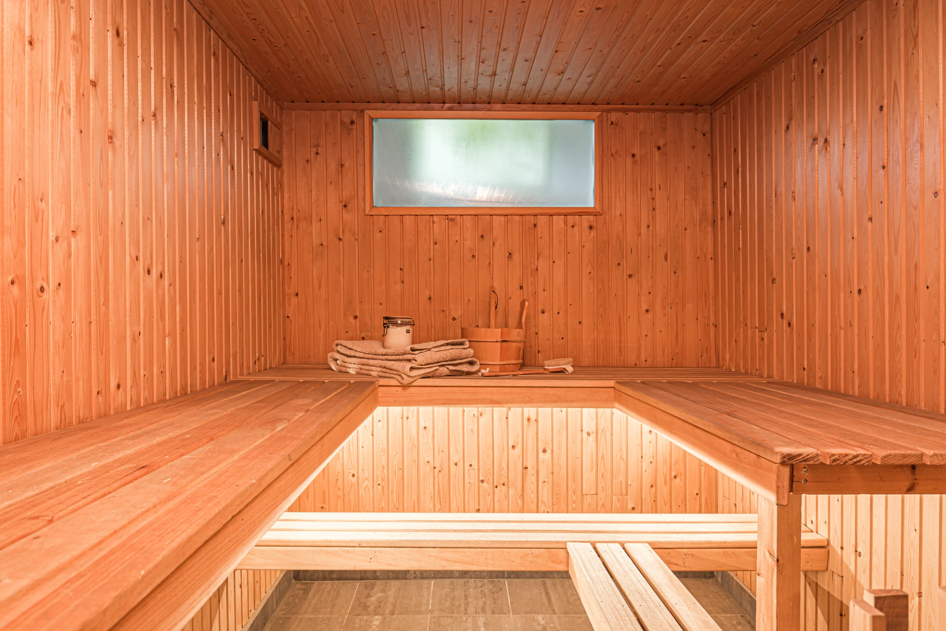 Den moderna relaxavdelningen erbjuder en helkaklad yta med bastu, dusch och en loungedel för ultimativ avkoppling och komfort. Perfekt för en lugn stund.