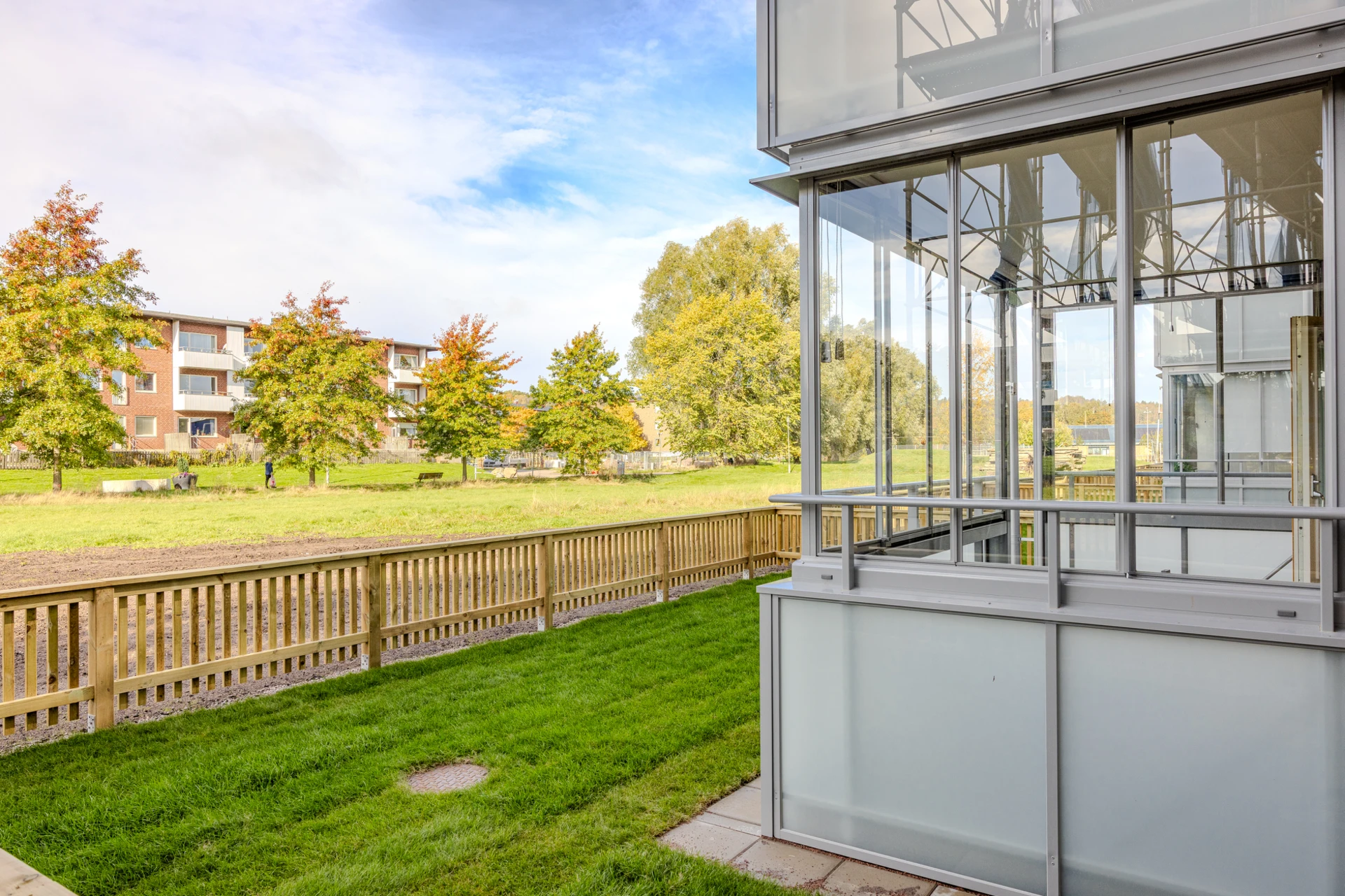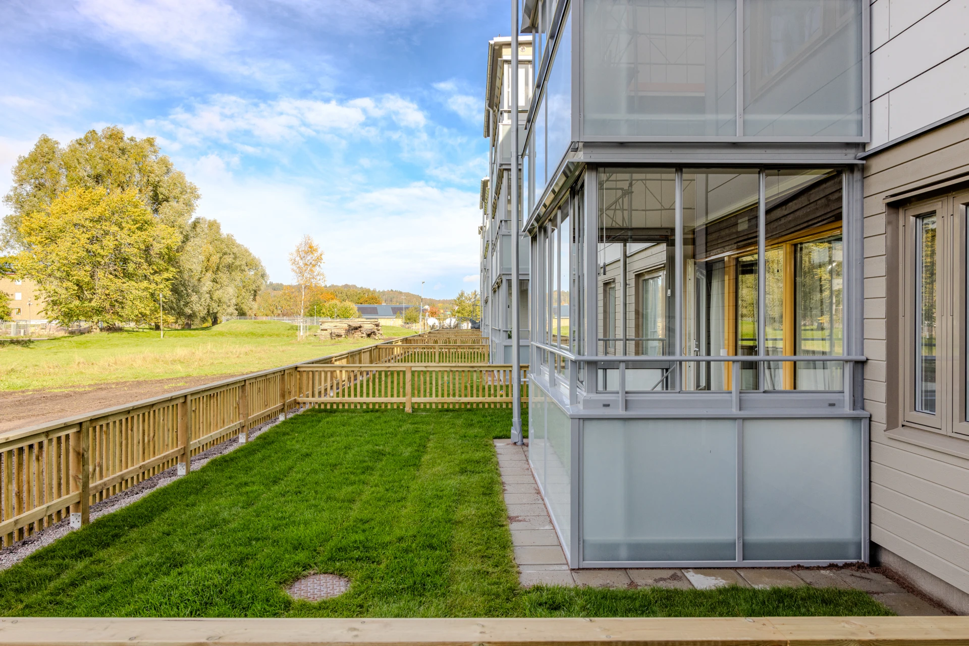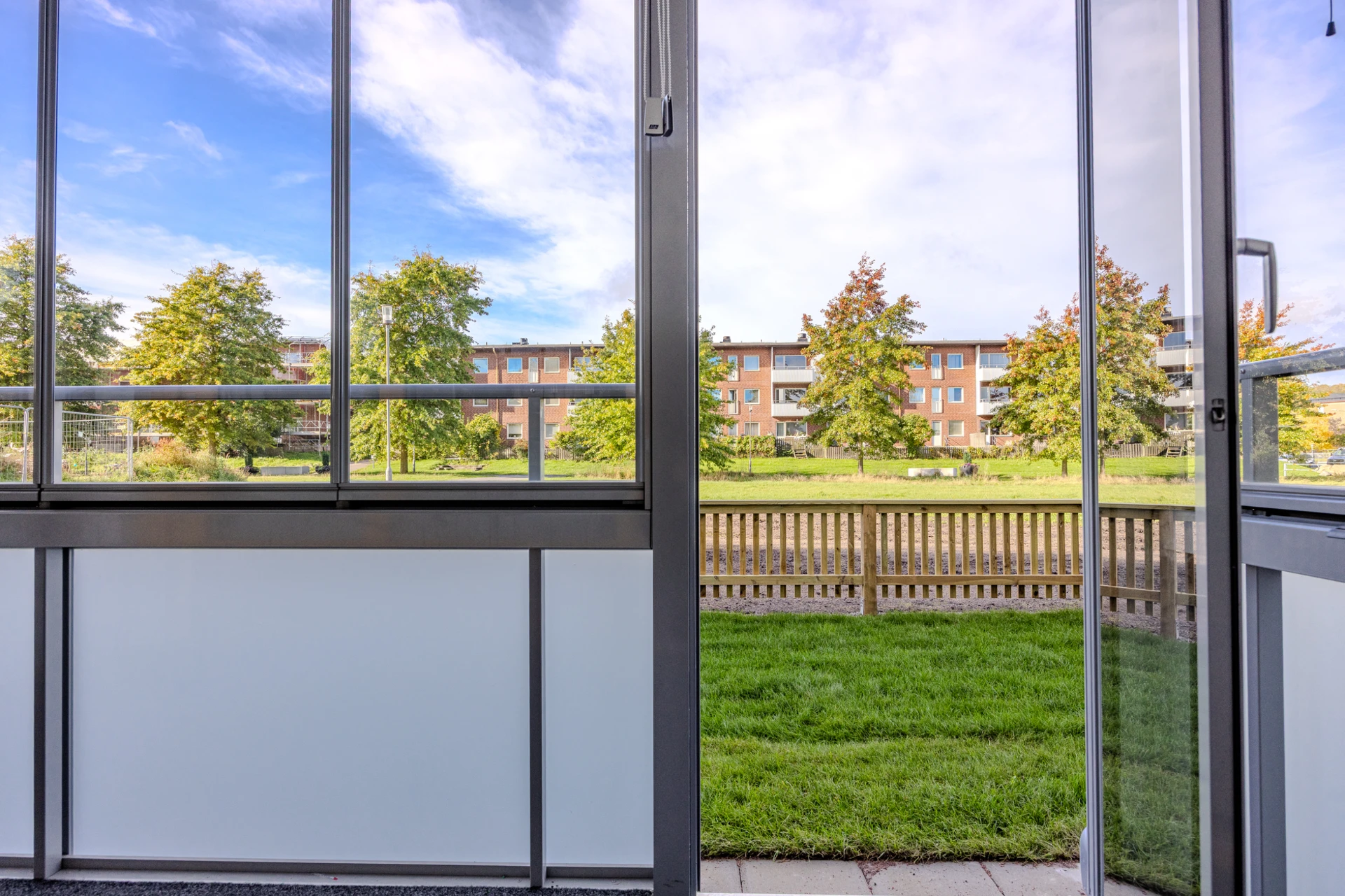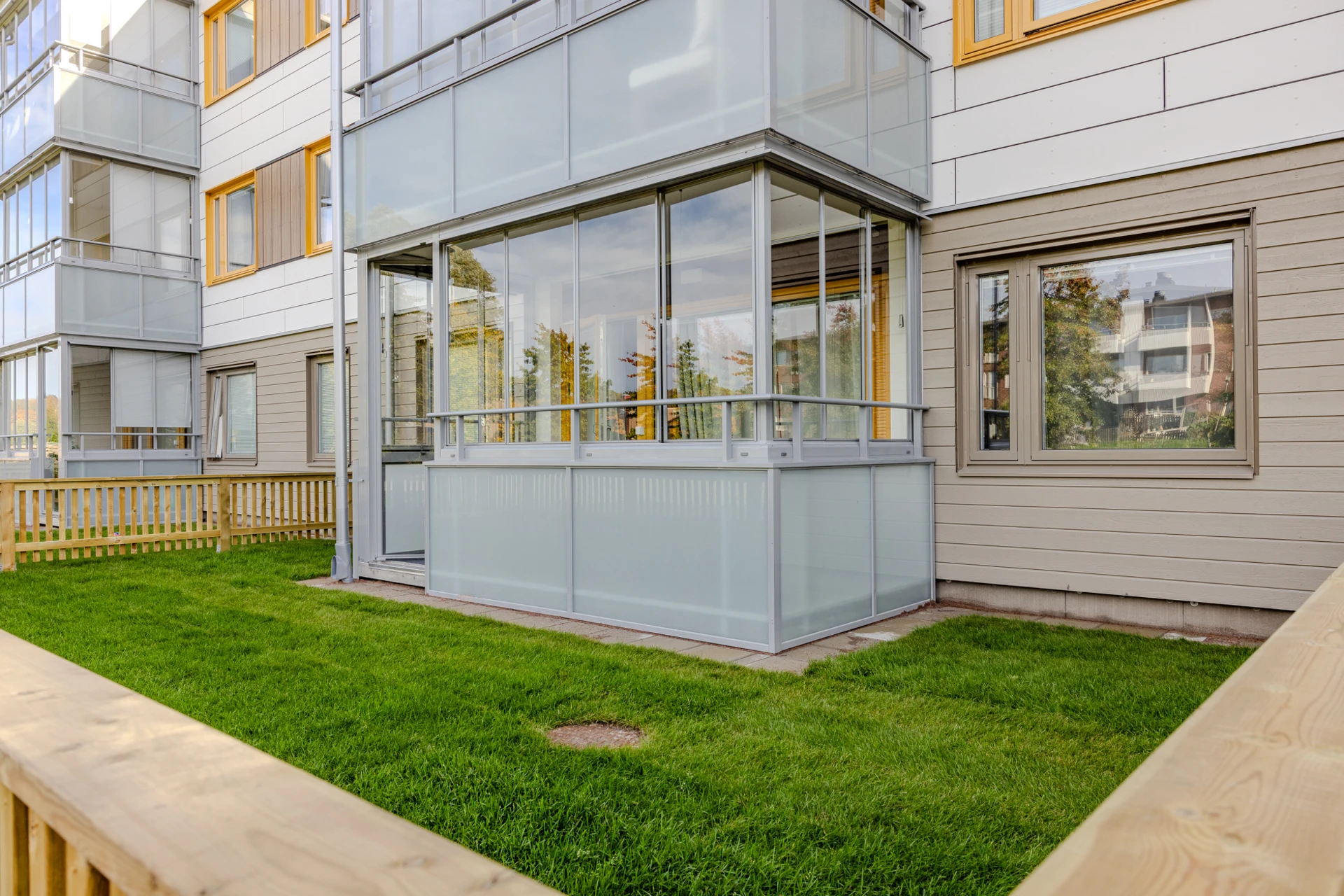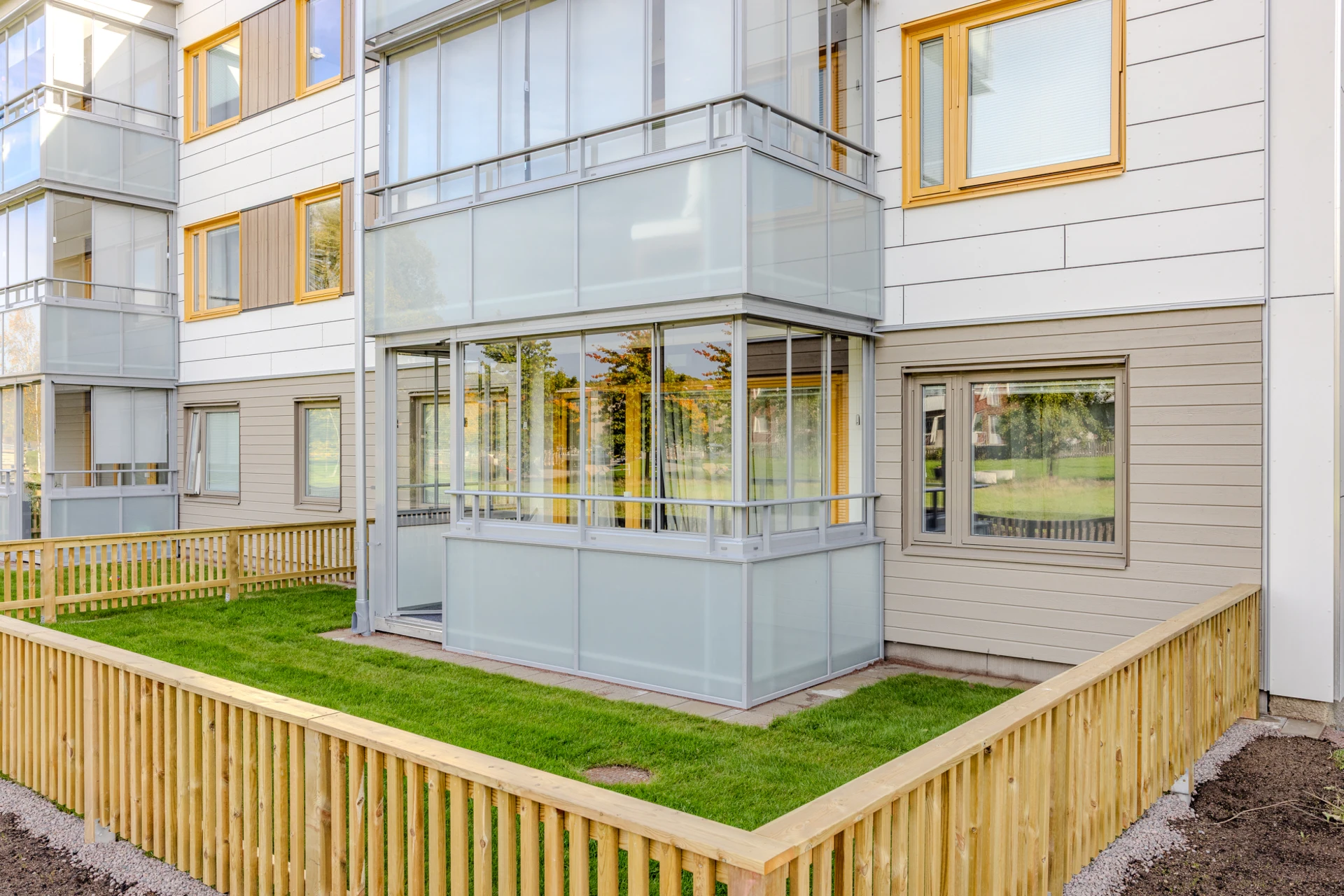 Nybyggt (2025) uterum ca 9 m² i västerläge gjort av föreningen i samband med fasadrenoveringarna, skjutbara fönster/dörrar samt utgång till uteplatsen.