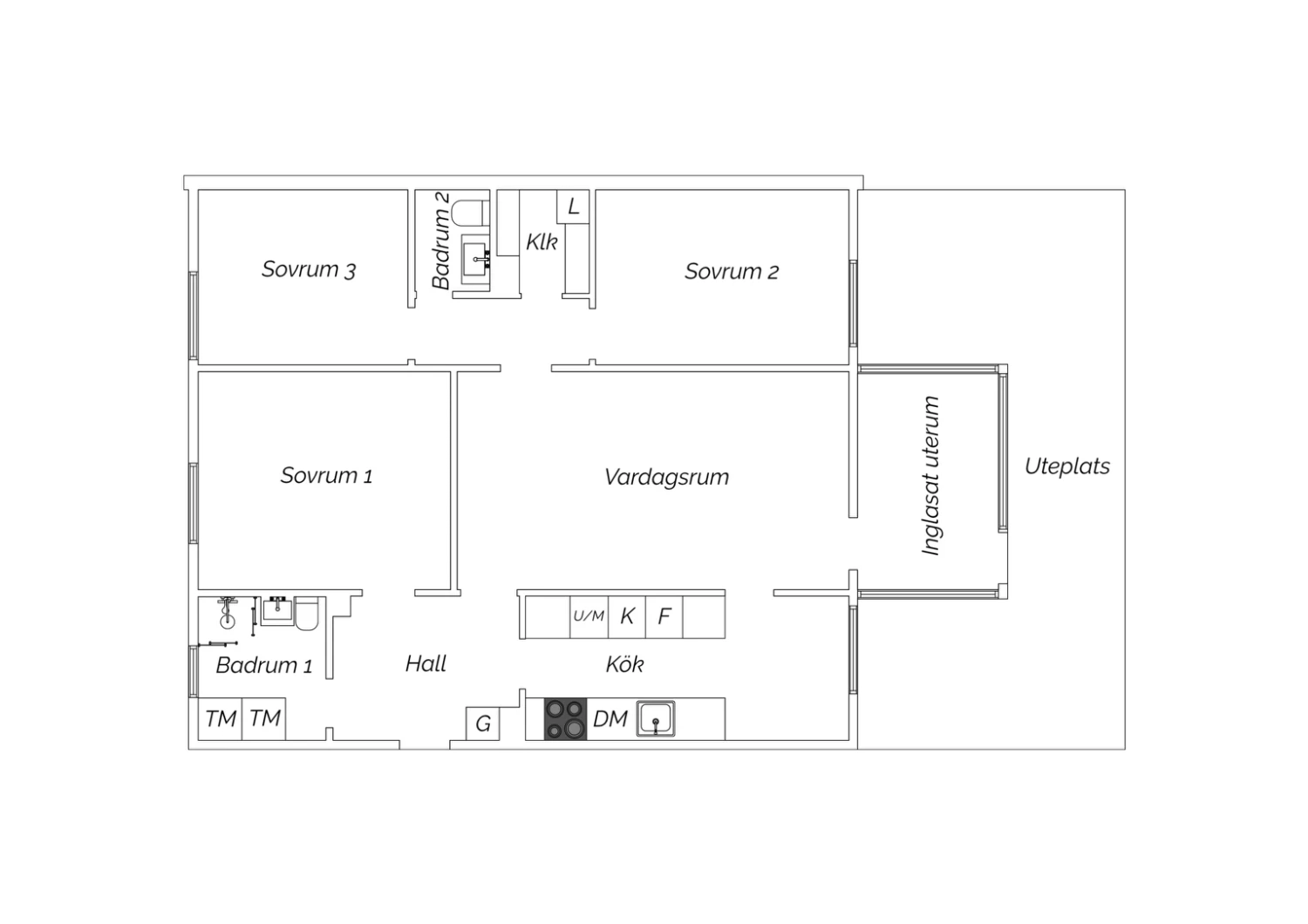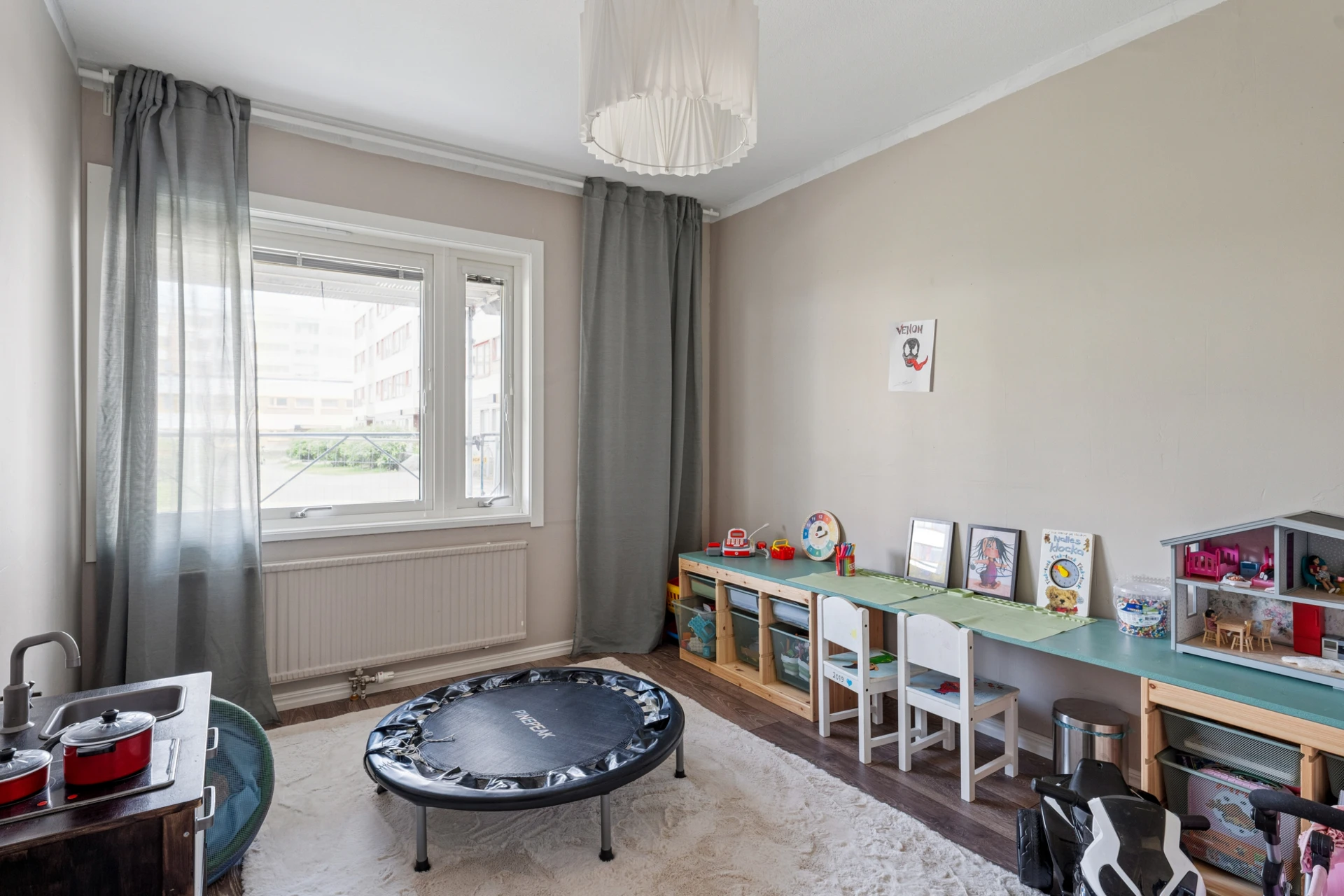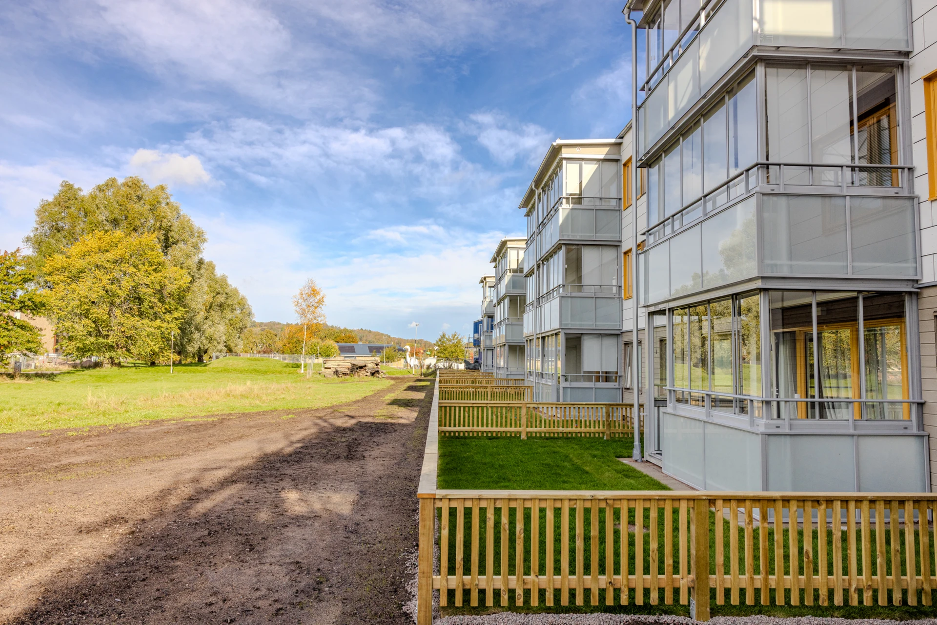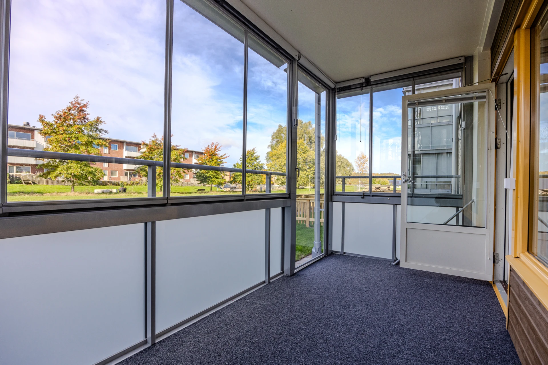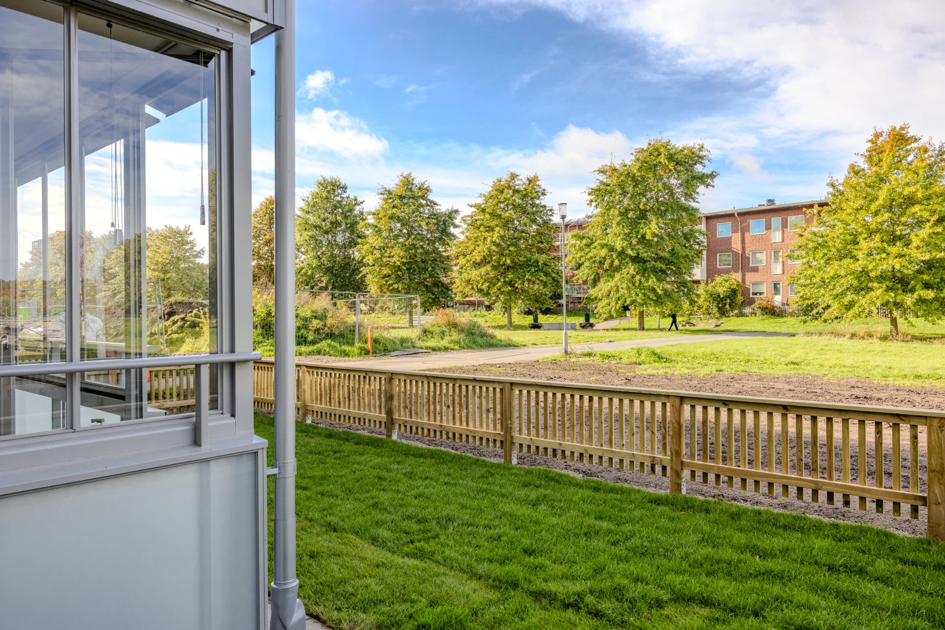 Nybyggt (2025) uterum ca 9 m² i västerläge gjort av föreningen i samband med fasadrenoveringarna, skjutbara fönster/dörrar samt utgång till uteplatsen.