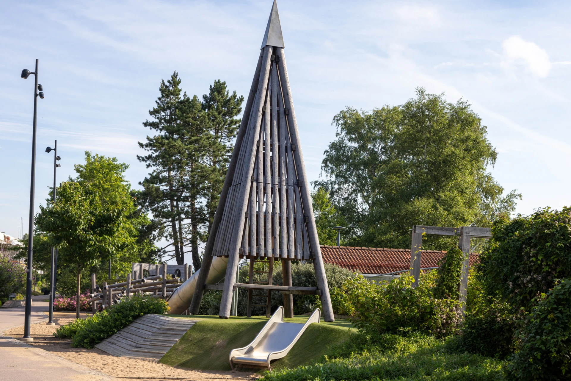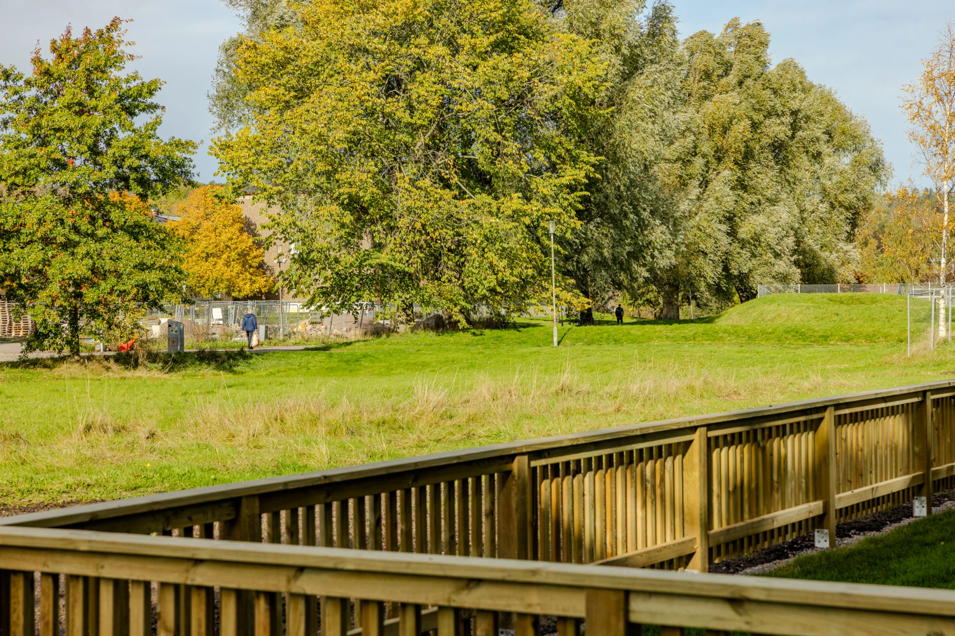Generös uteplats med soligt västerläge med god plats för utomhusmöbler.
