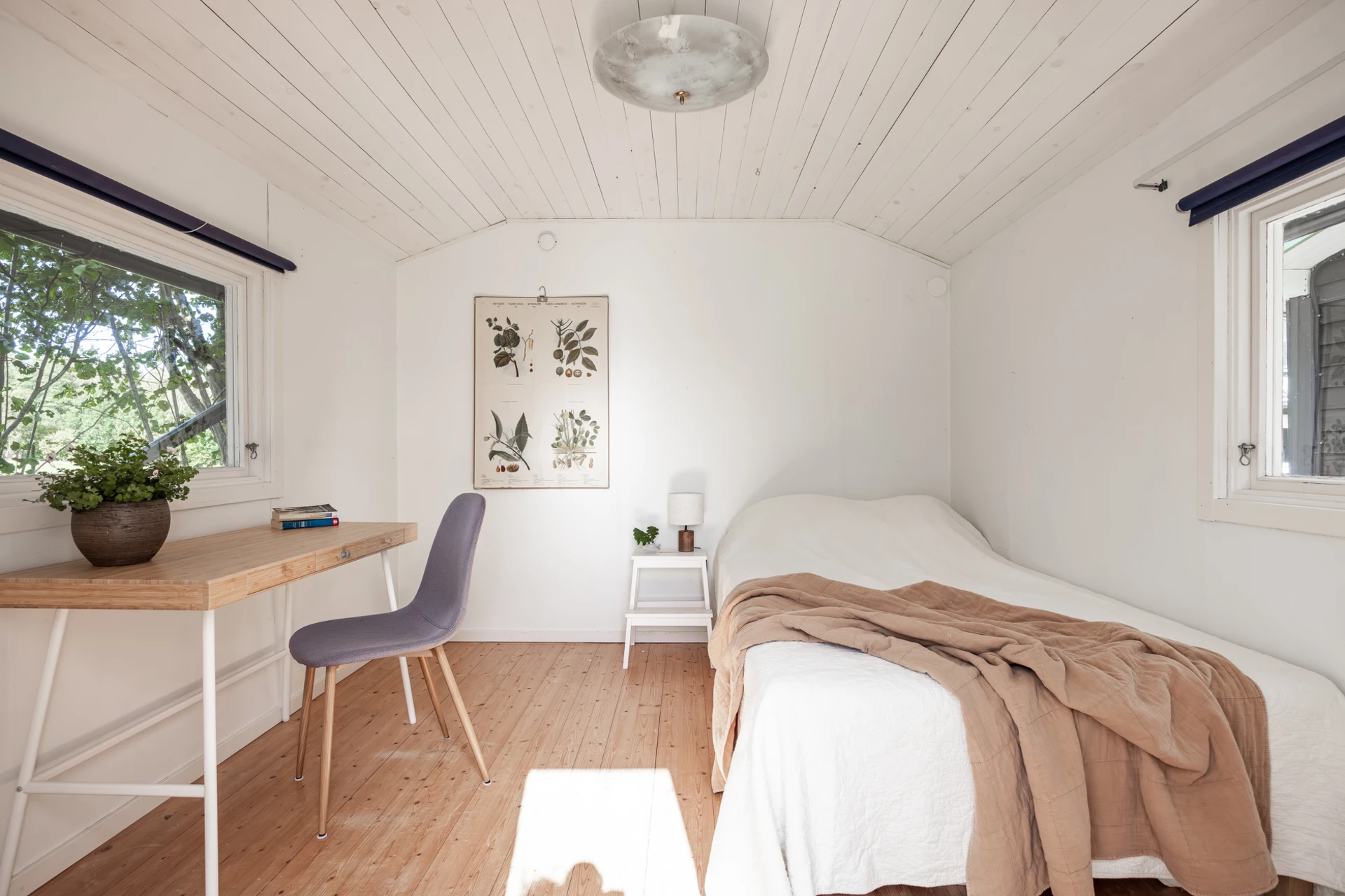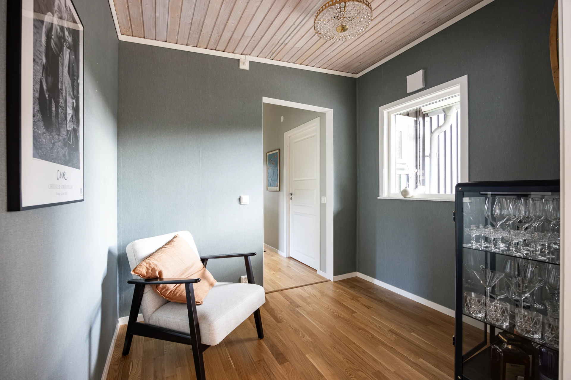 Trägolv och ljusa väggar. Här finns plats för säng med tillhörande möblemang eller möbleras efter önskemål och behov som ex kontor.