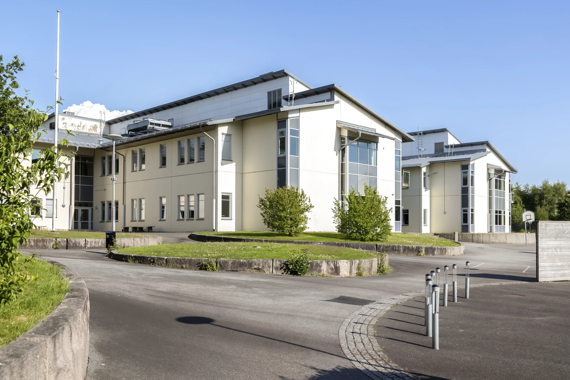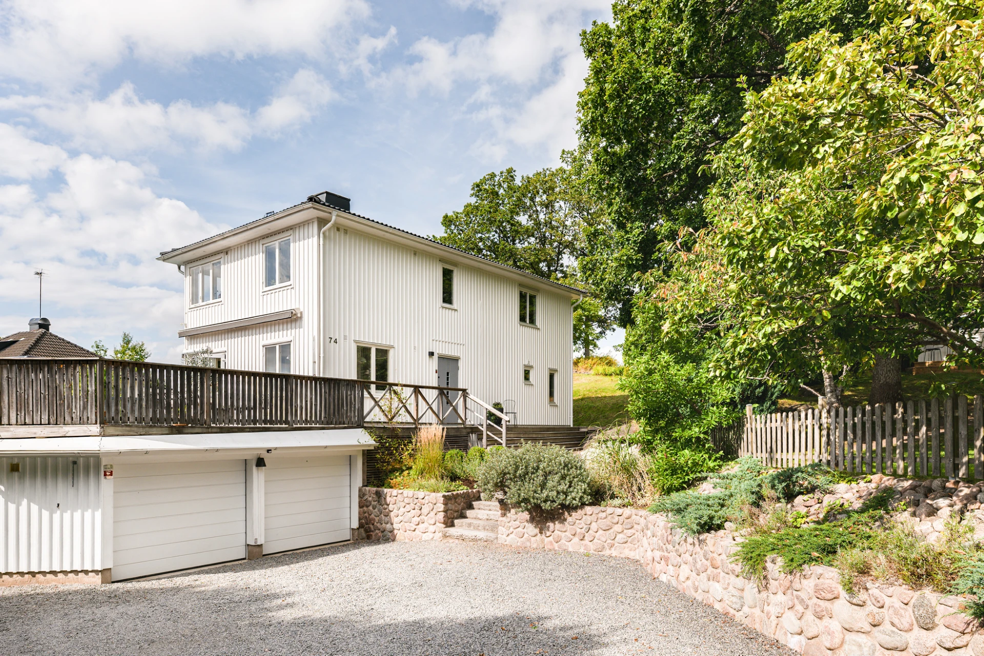 På den grusbelagda infarten framför huset finns dessutom generösa parkeringsmöjligheter för gäster eller extra fordon.