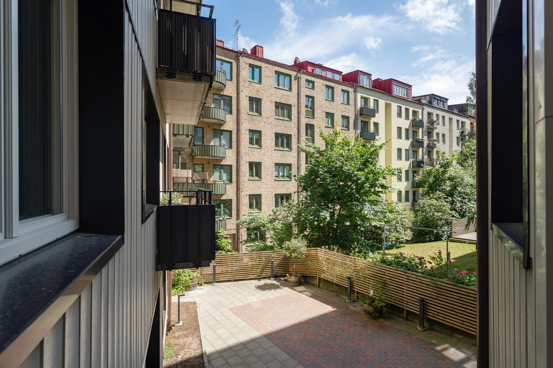 Med fönster mot Carlandersparken får du en insynsskyddad och naturnära utsikt. I den välmående föreningen med låg månadsavgift, kan du dessutom njuta av en gemensam takterrass med imponerande utsikt över vacker innergård. Denna bostad har allt du kan önska dig, välkommen hem till ett liv där stadsnära möter rofyllt!