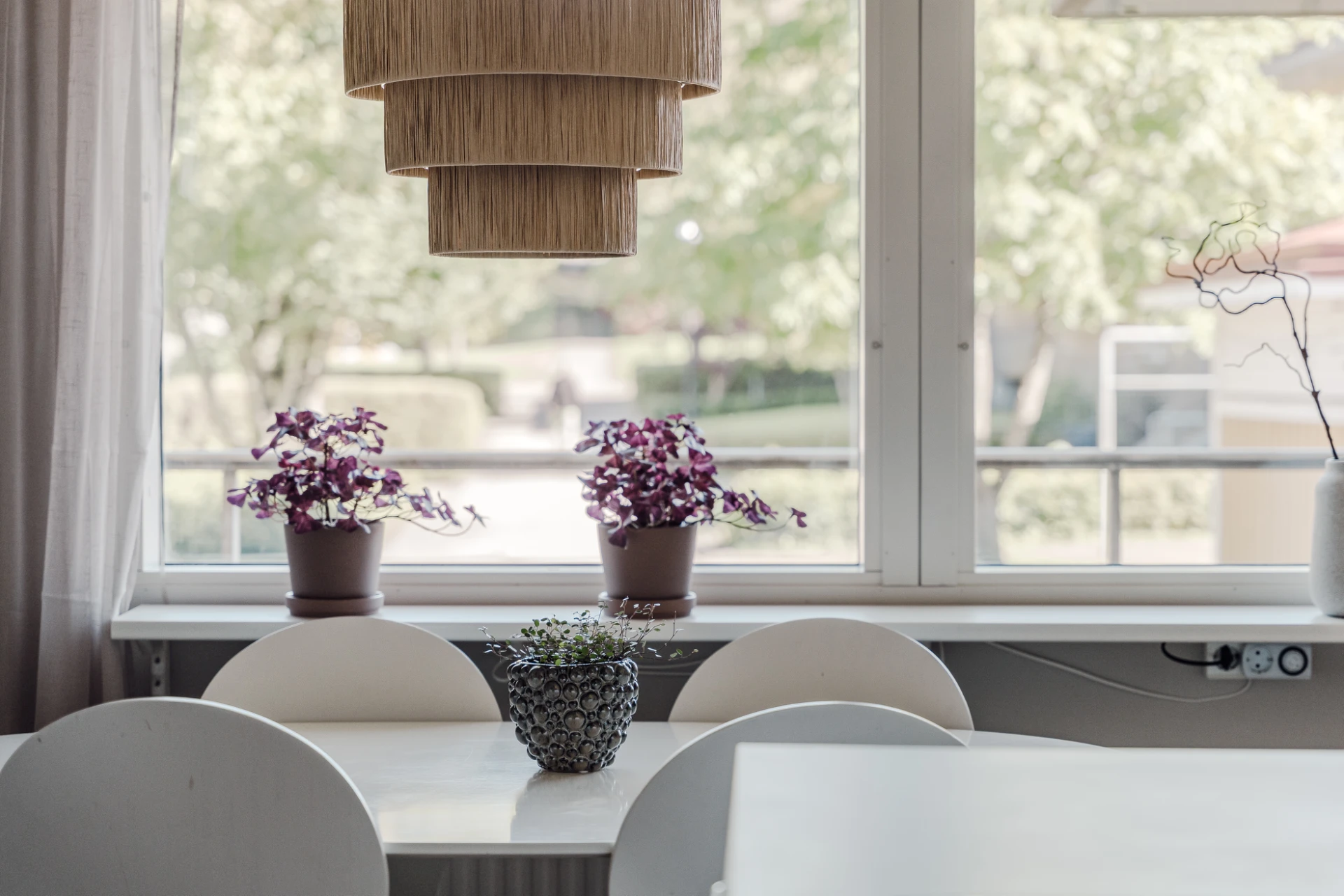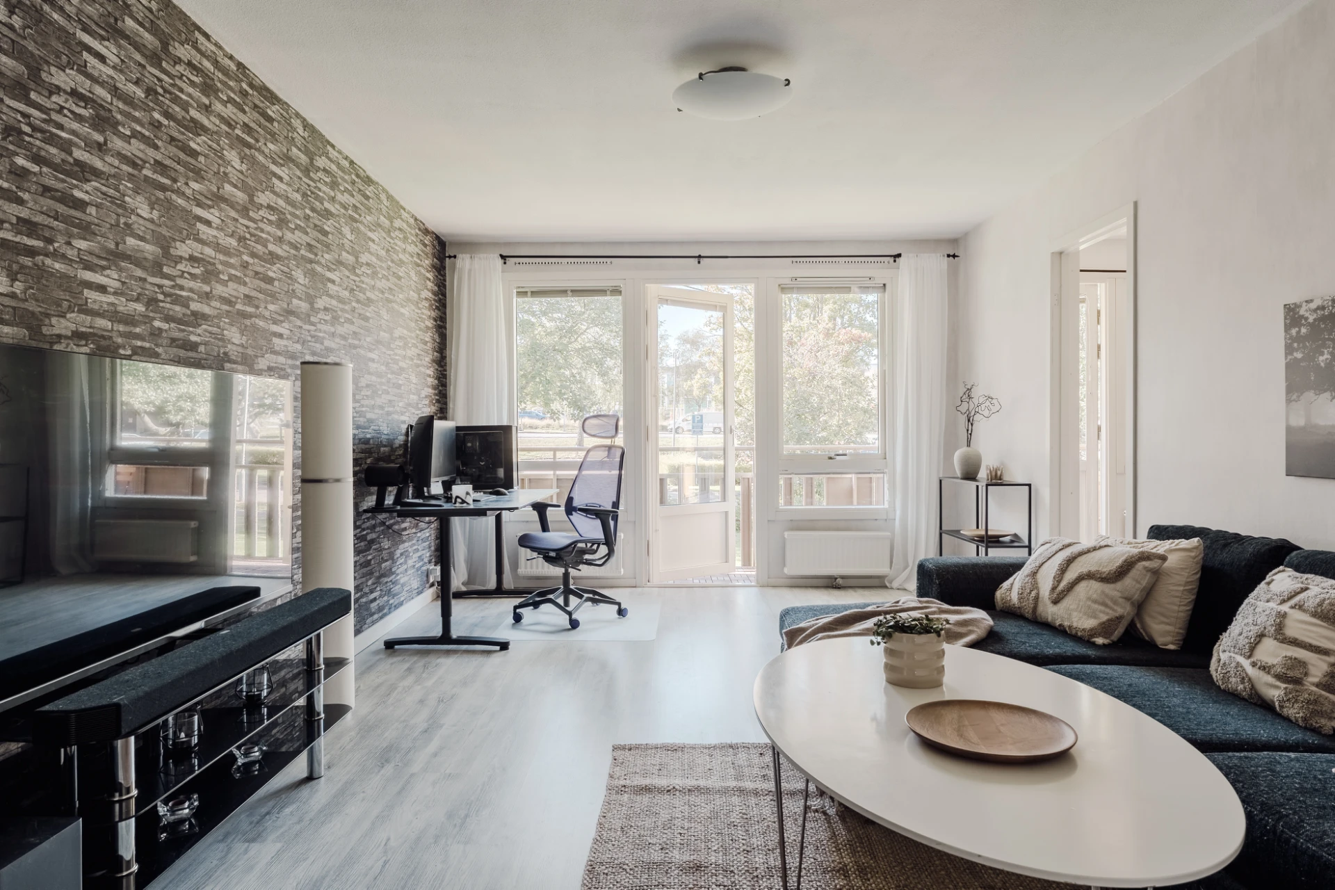 Den genomgående planlösningen i kombination med stora fönsterpartier i två väderstreck skapar ett fantastiskt ljusinsläpp och en luftig atmosfär som genomsyrar hela hemmet. Från både vardagsrum och sovrum nås balkongen, en självklar favoritplats under årets varmare månader.