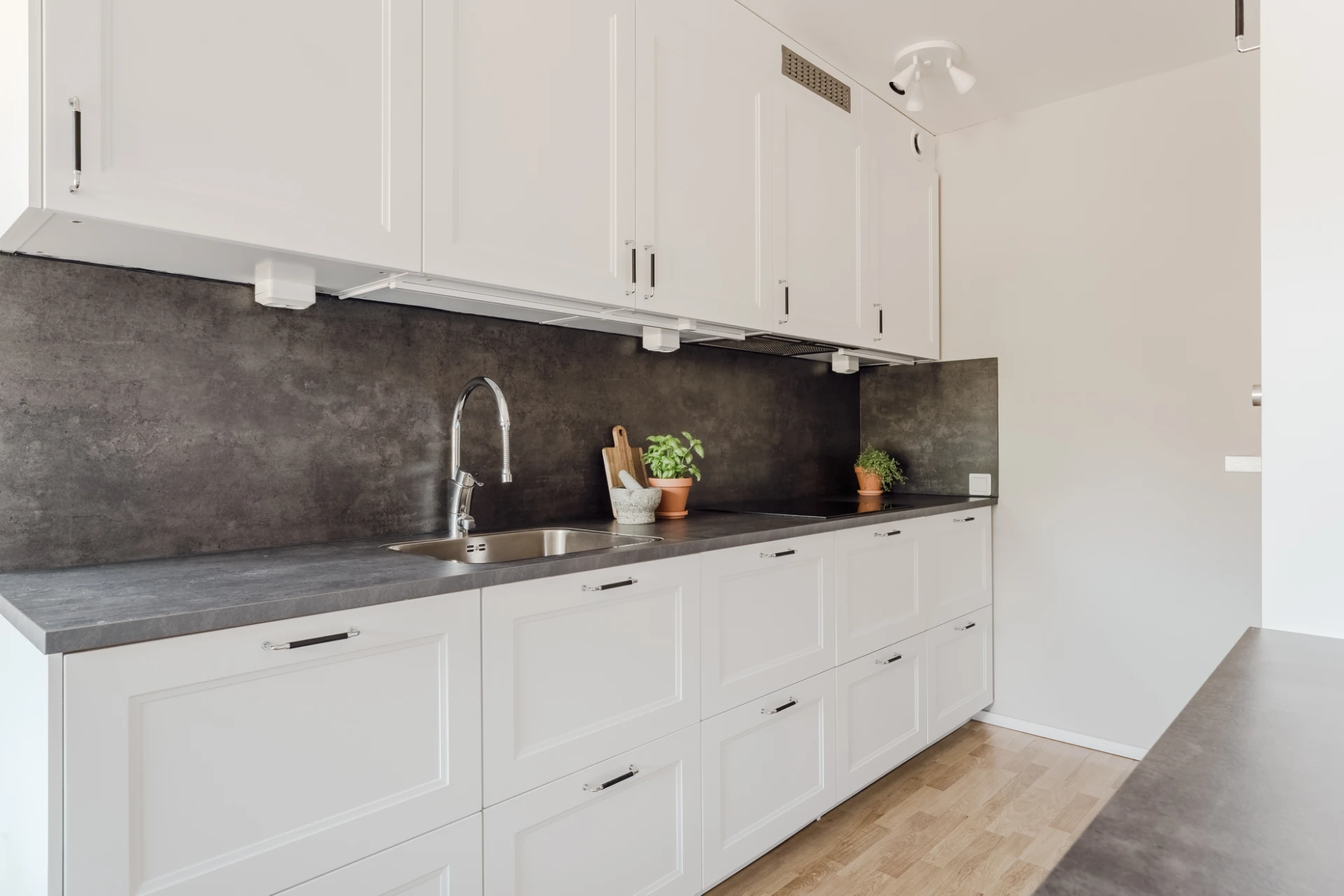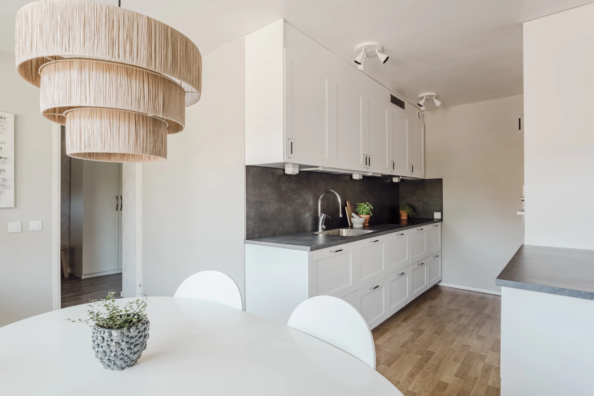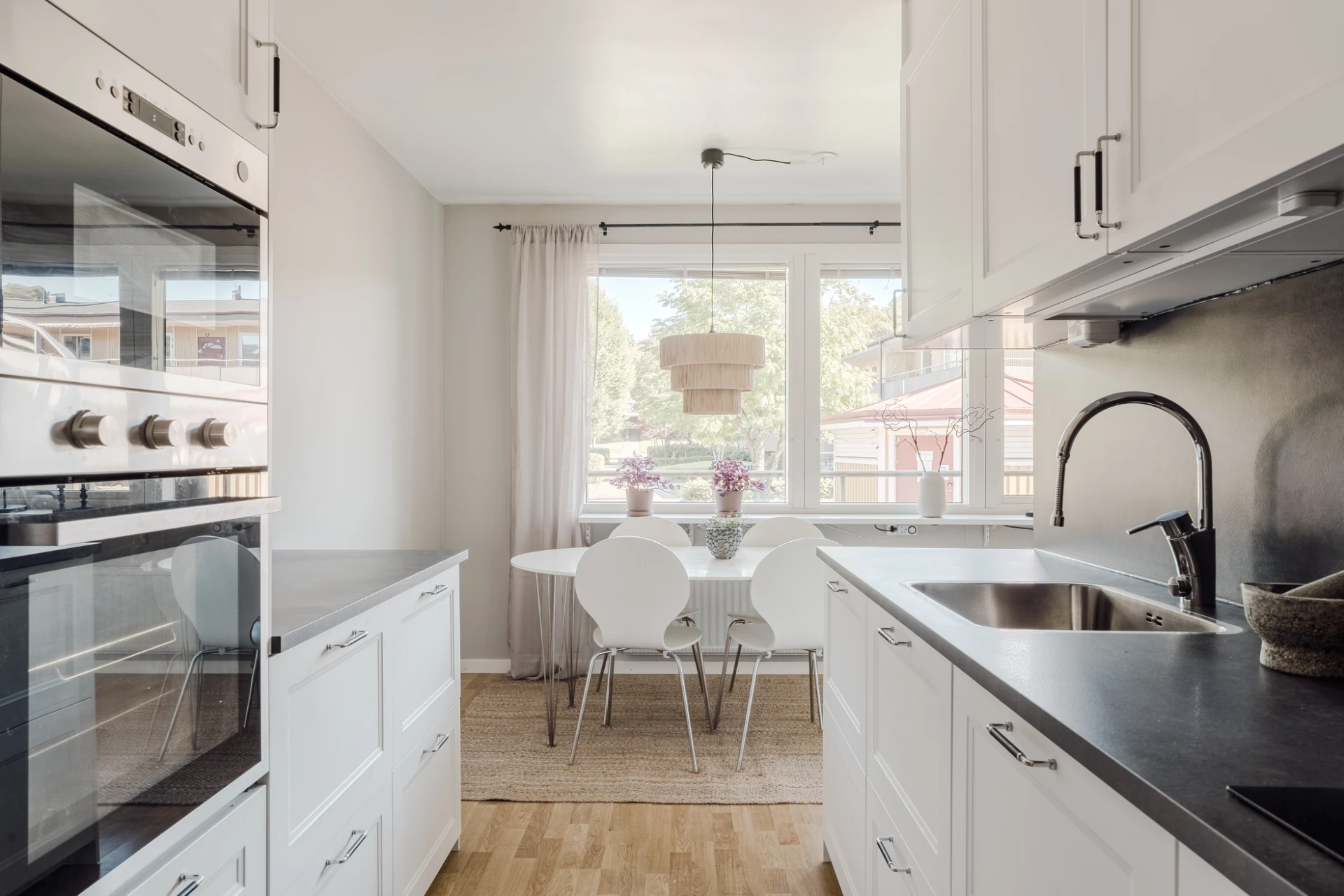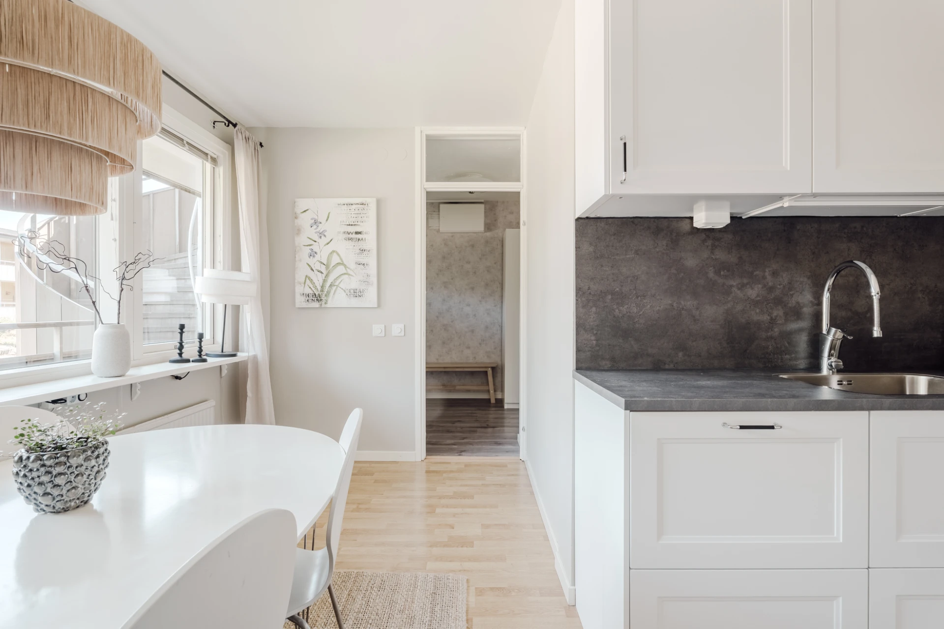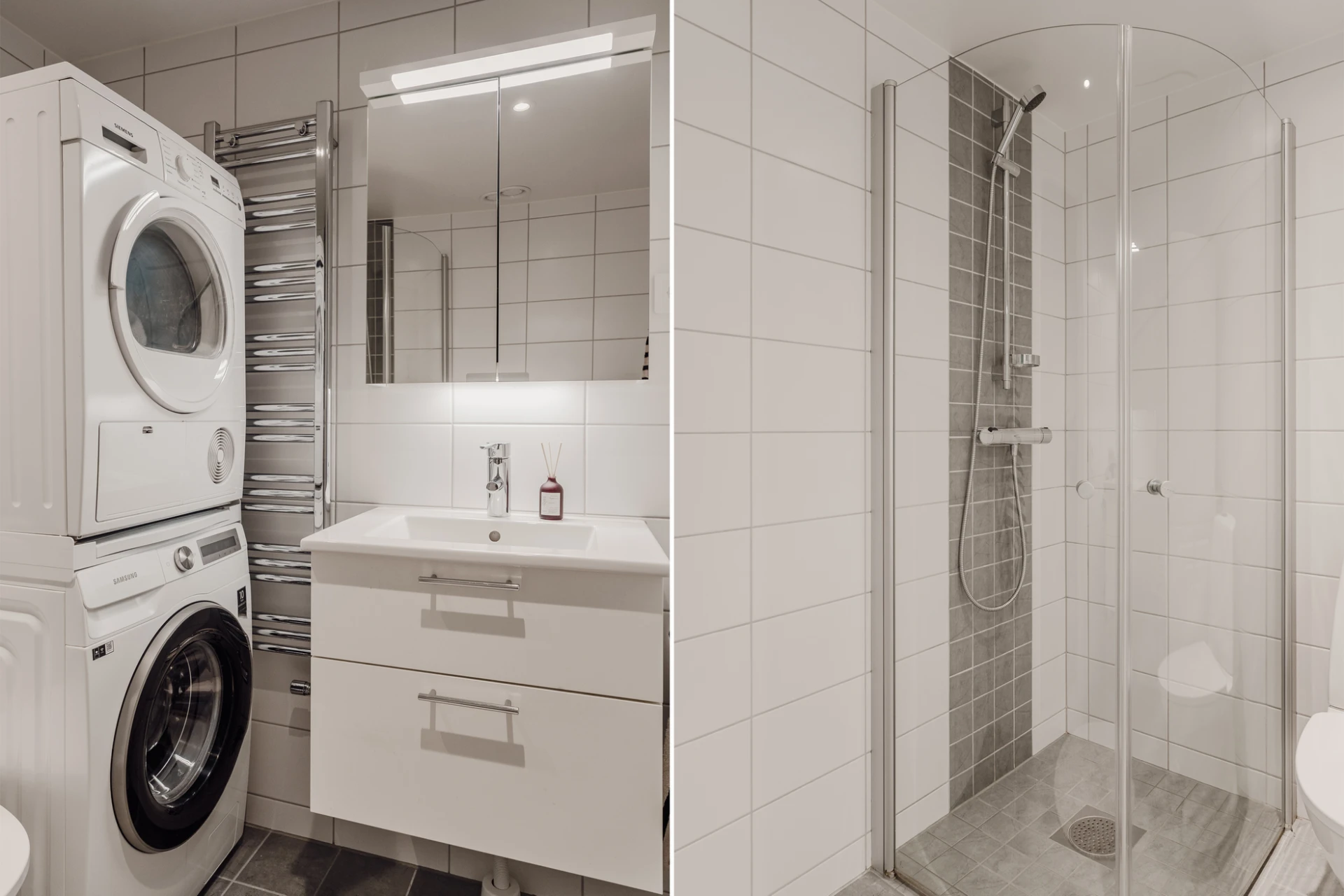 Köket är både stilrent och funktionellt, med gott om arbetsytor och smarta lösningar för dig som uppskattar matlagning. Här går design och praktiska detaljer hand i hand. Generösa förvaringsmöjligheter gör det enkelt att hålla bostaden välorganiserad. Det smakfullt stamrenoverade badrummet bjuder på extra komfort med golvvärme, handdukstork samt både tvättmaskin och torktumlare.