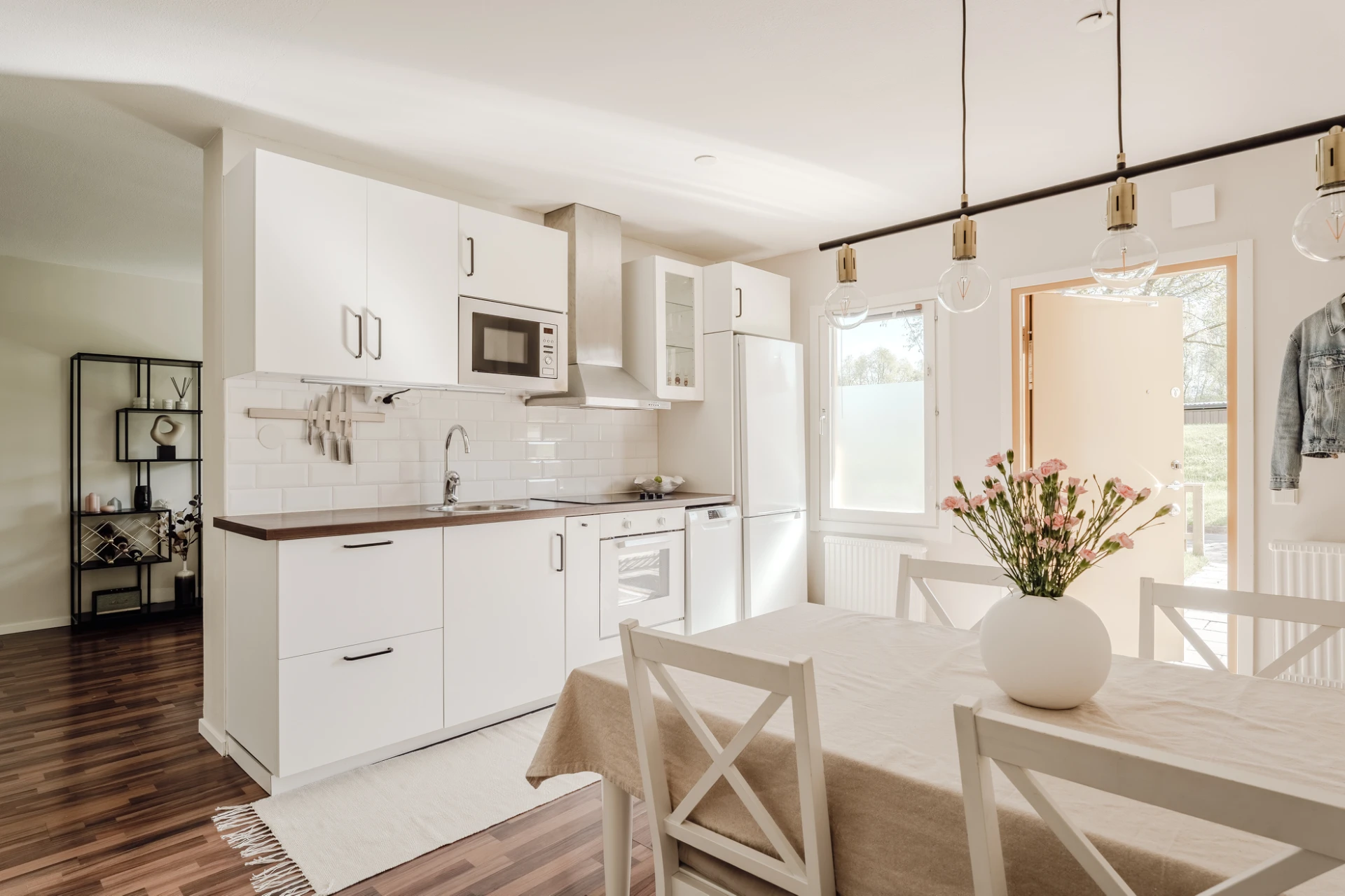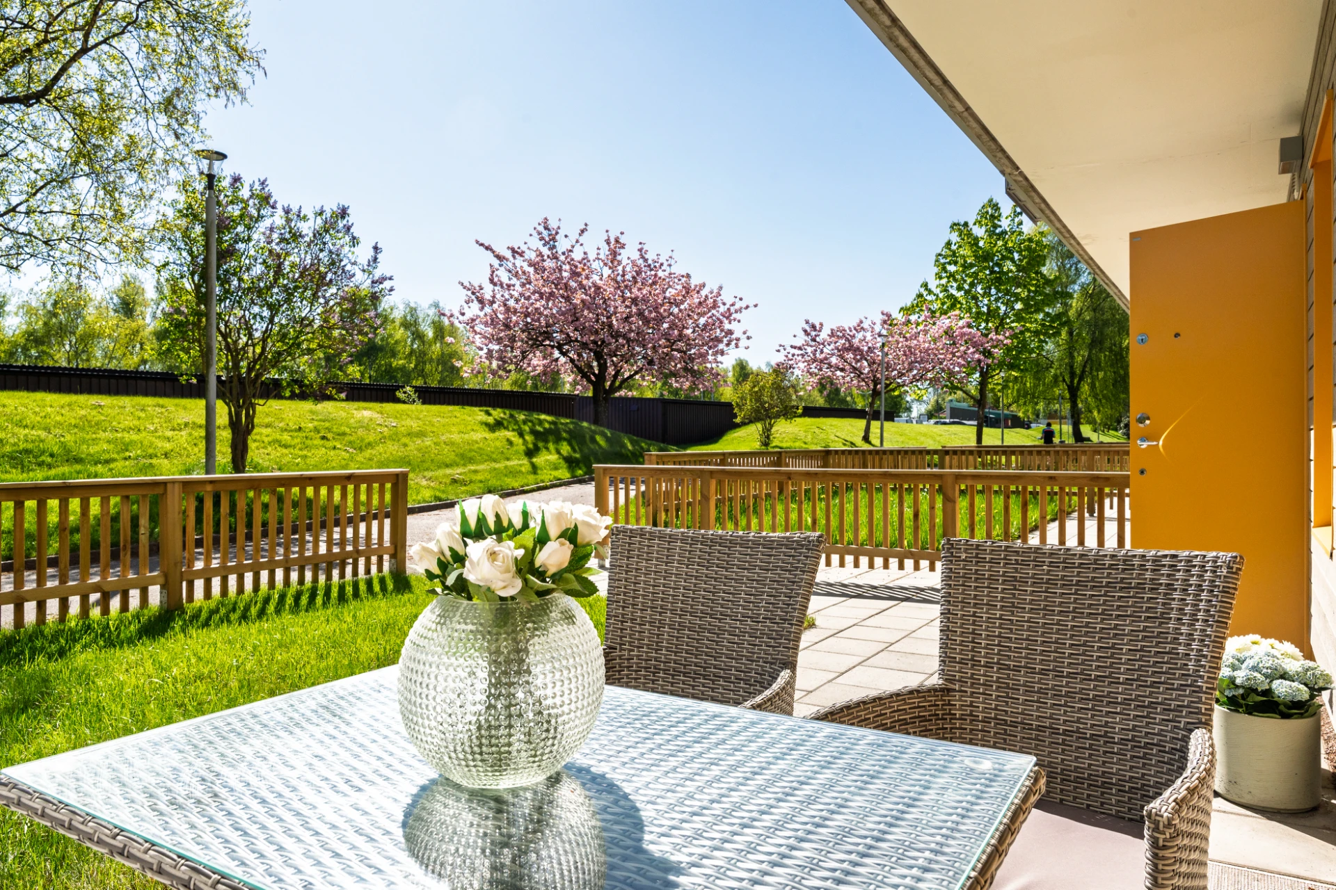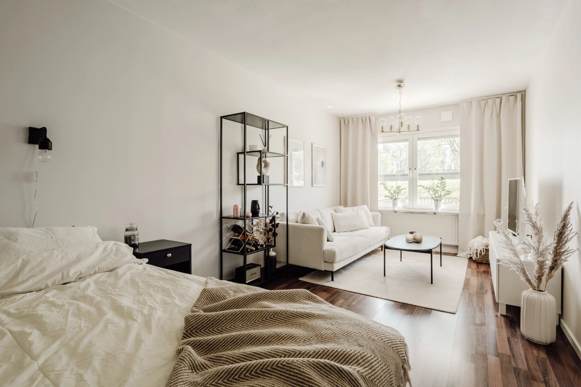Välkommen till denna ljusa och renoverade etta om ca 40 m² med stor och härlig uteplats! Köket är i ljusa kulörer och erbjuder goda arbetsytor, bekvämligheter som diskmaskin samt gott utrymme för middagar tillsammans med familj och vänner. Vardagsrummet är rymligt och luftigt med en del av rummet som kan användas som sovalkov/sovplats.