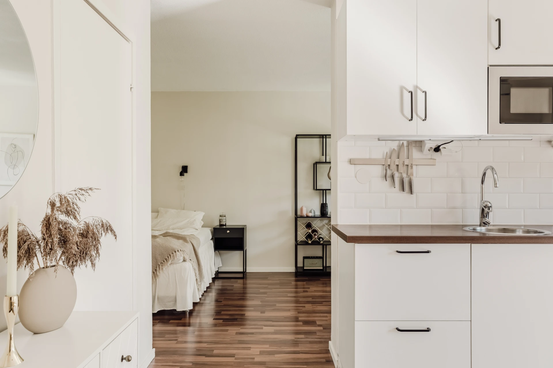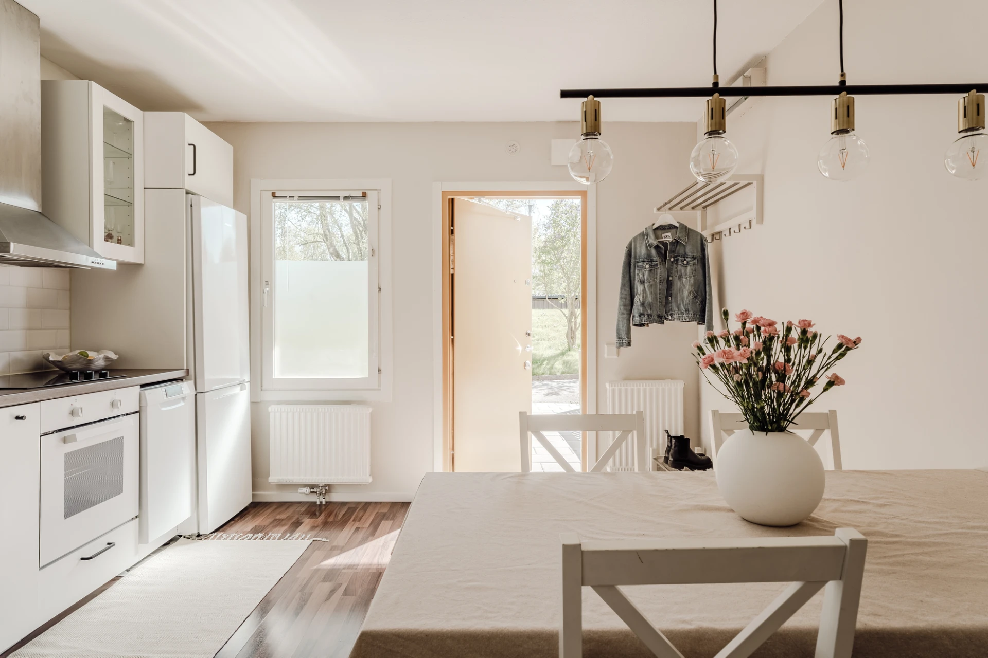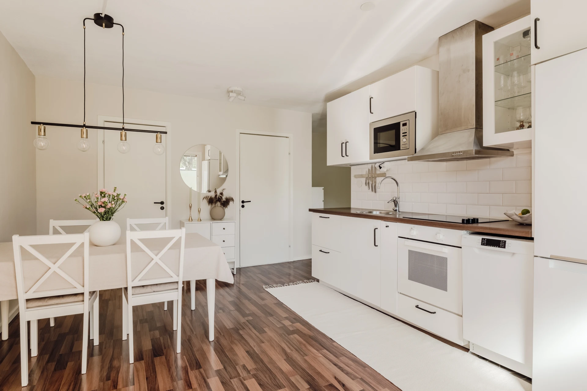 Välkommen till denna ljusa och renoverade etta om ca 40 m² med stor och härlig uteplats! Köket är i ljusa kulörer och erbjuder goda arbetsytor, bekvämligheter som diskmaskin samt gott utrymme för middagar tillsammans med familj och vänner. Vardagsrummet är rymligt och luftigt med en del av rummet som kan användas som sovalkov/sovplats.