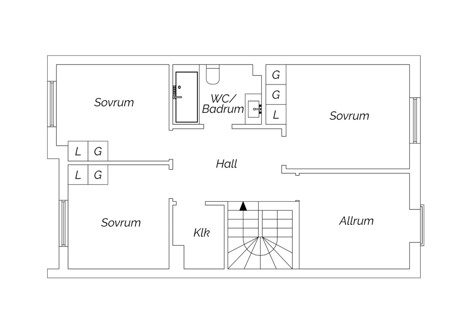 4 rum och kök enligt föreningens lägenhetsförteckning, disponeras som 5 rum och kök enligt nuvarande planlösning.