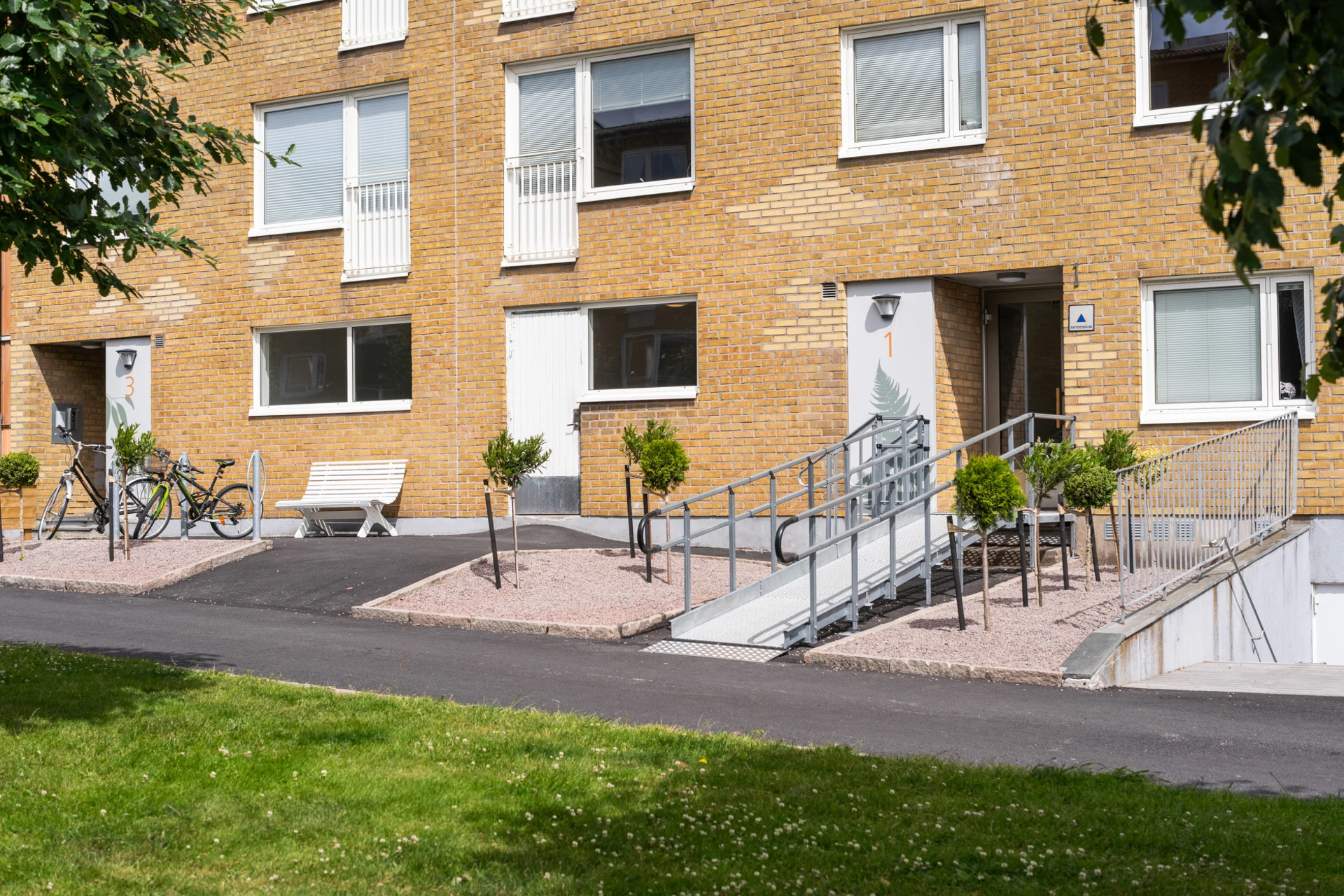 2021 monterades nya entrédörrar samt balkongdörrar mot innergården.