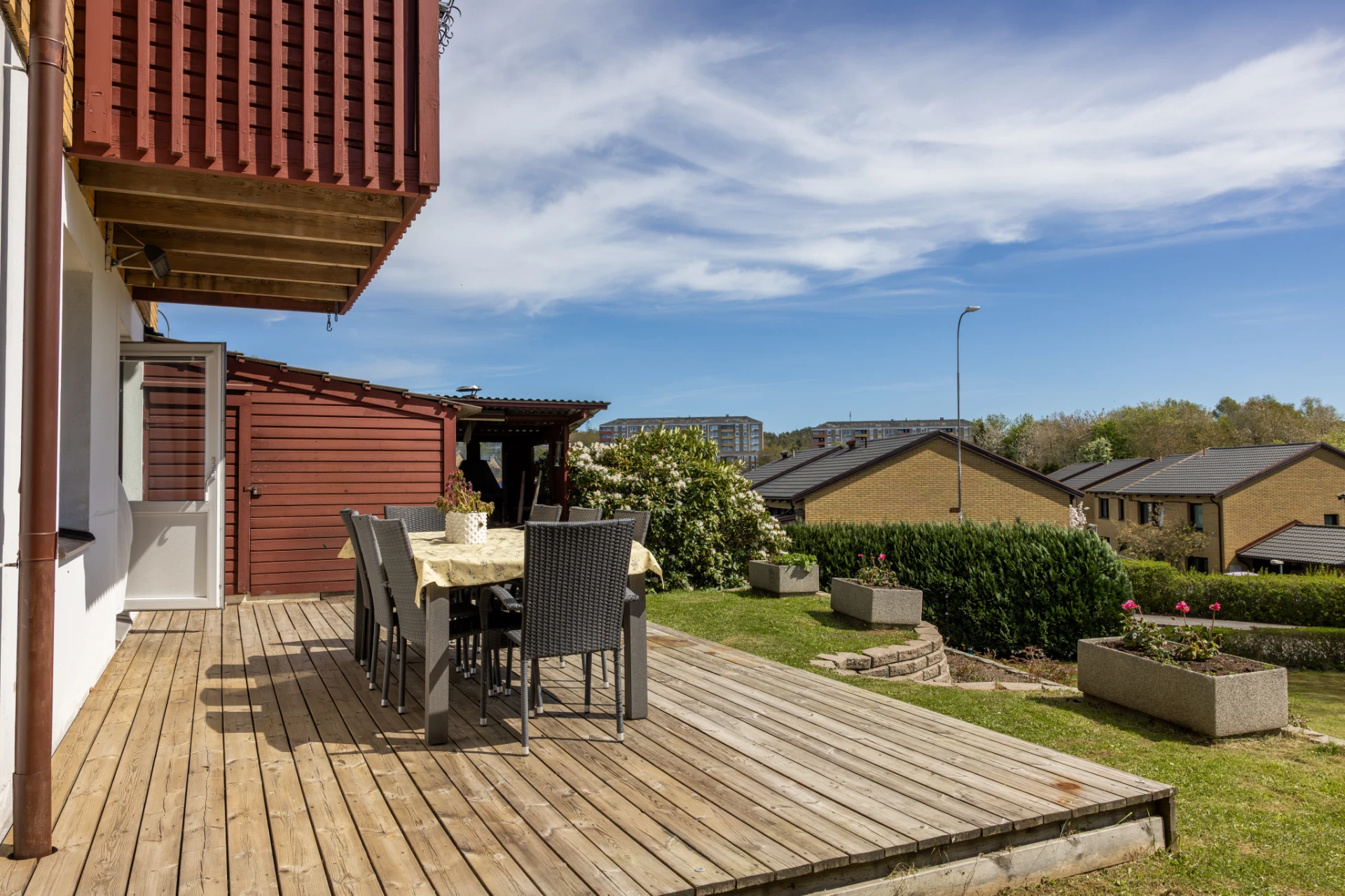 Uteplats i anslutning till sovrum 3 med plats för utemöbler och grill i söder/västerläge.