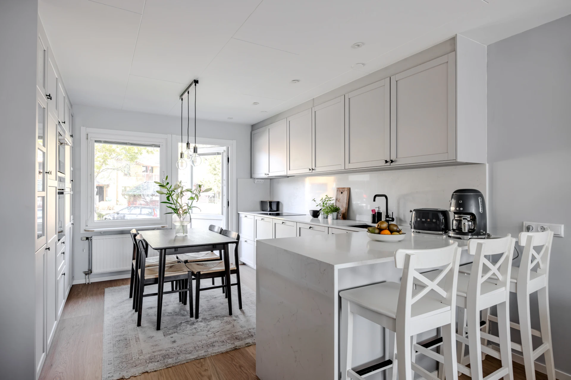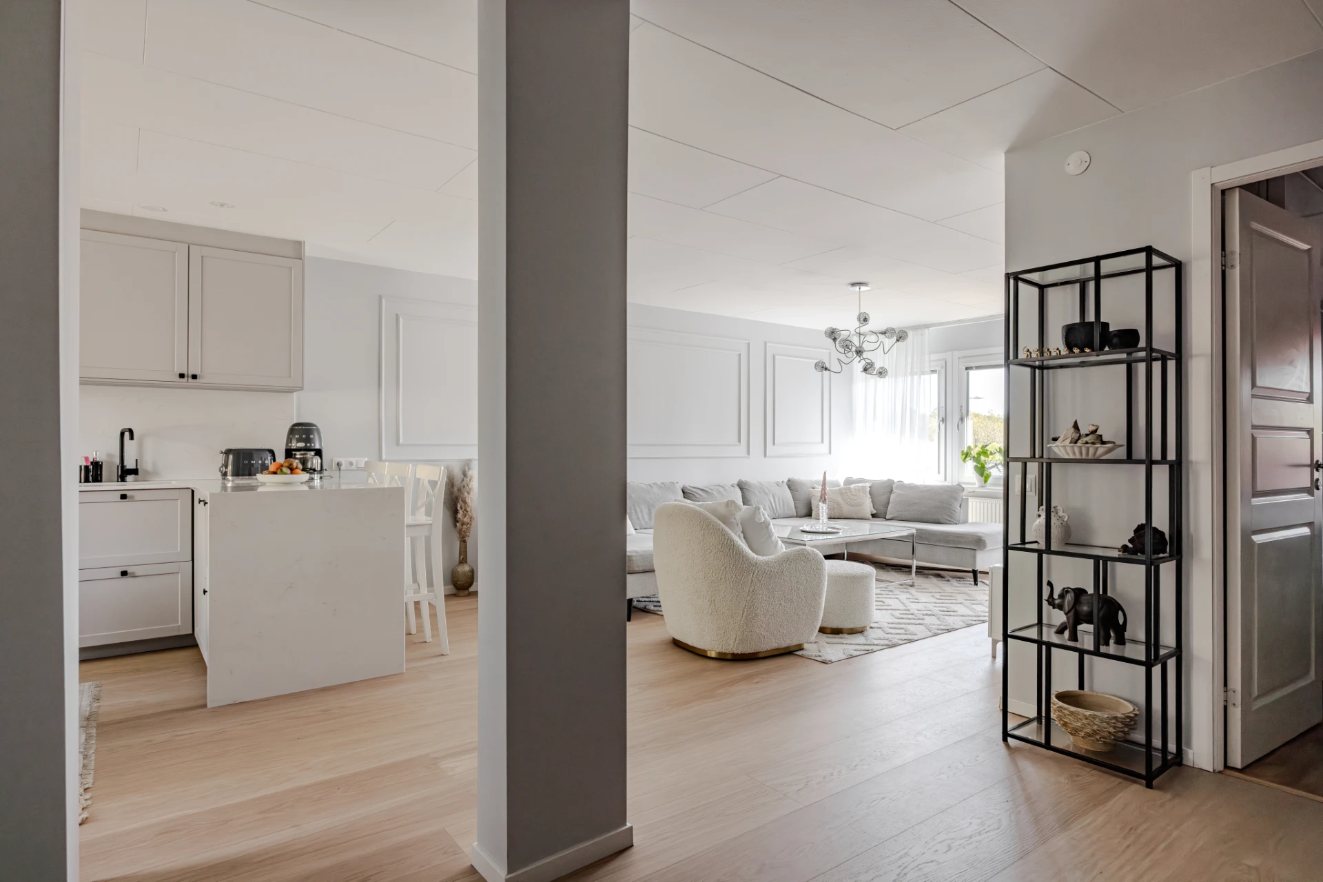 2025 renoveras köket för ca 185 000 kr och det öppnas upp mot vardagsrummet. Nya innedörrar samt golv installeras i bostaden.