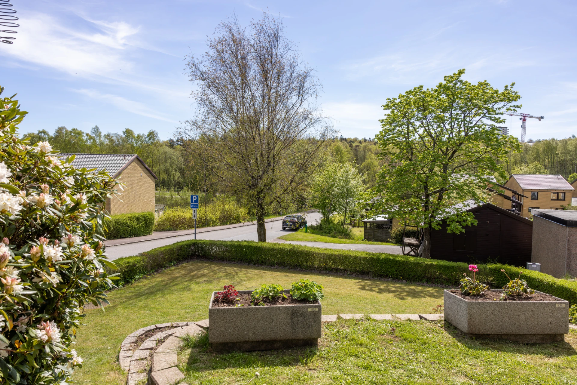 Plats för två bilar intill huset, carport och ytterligare parkering finns i området mot parkeringskort.