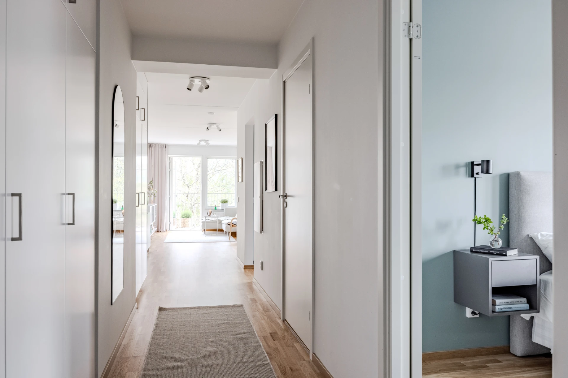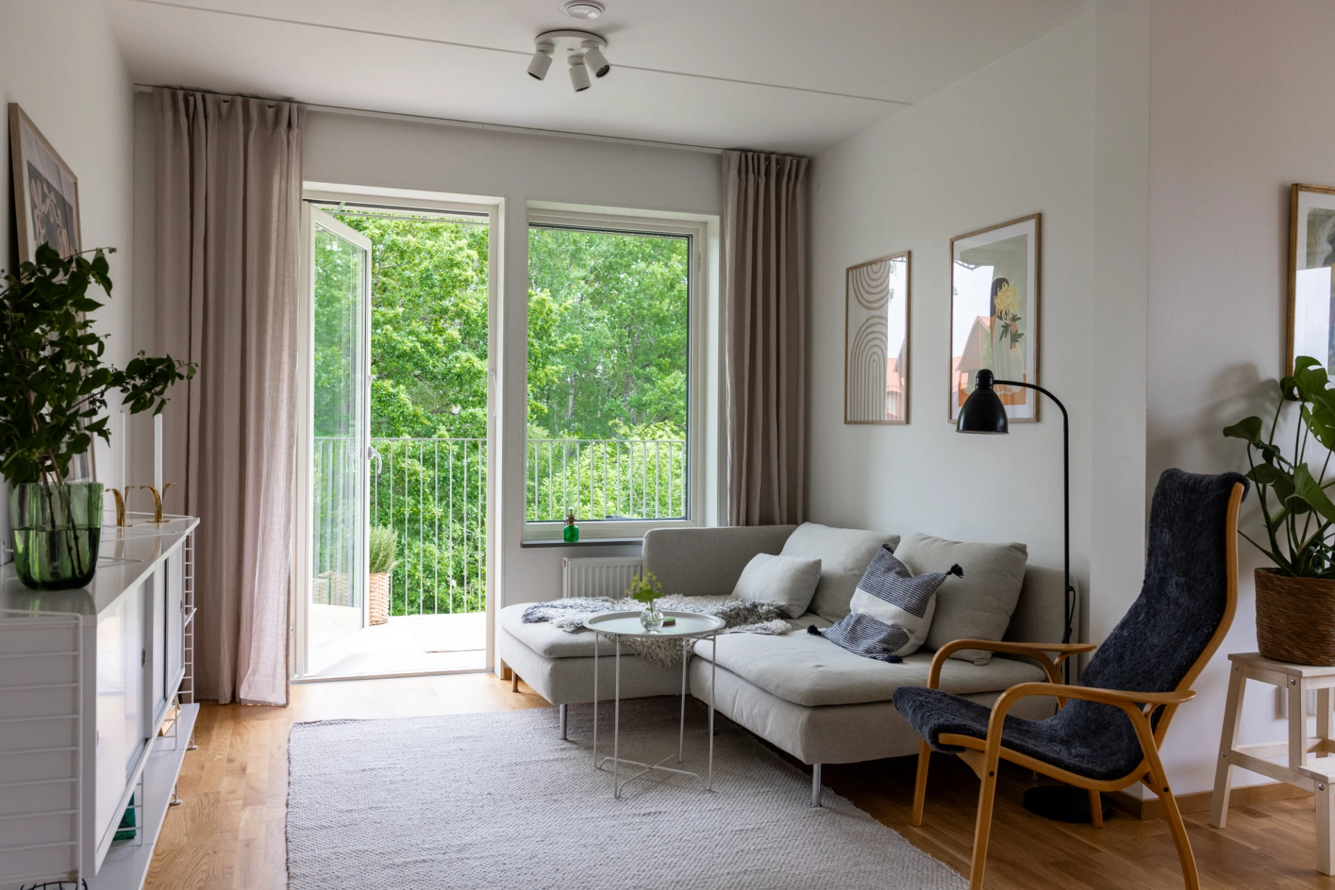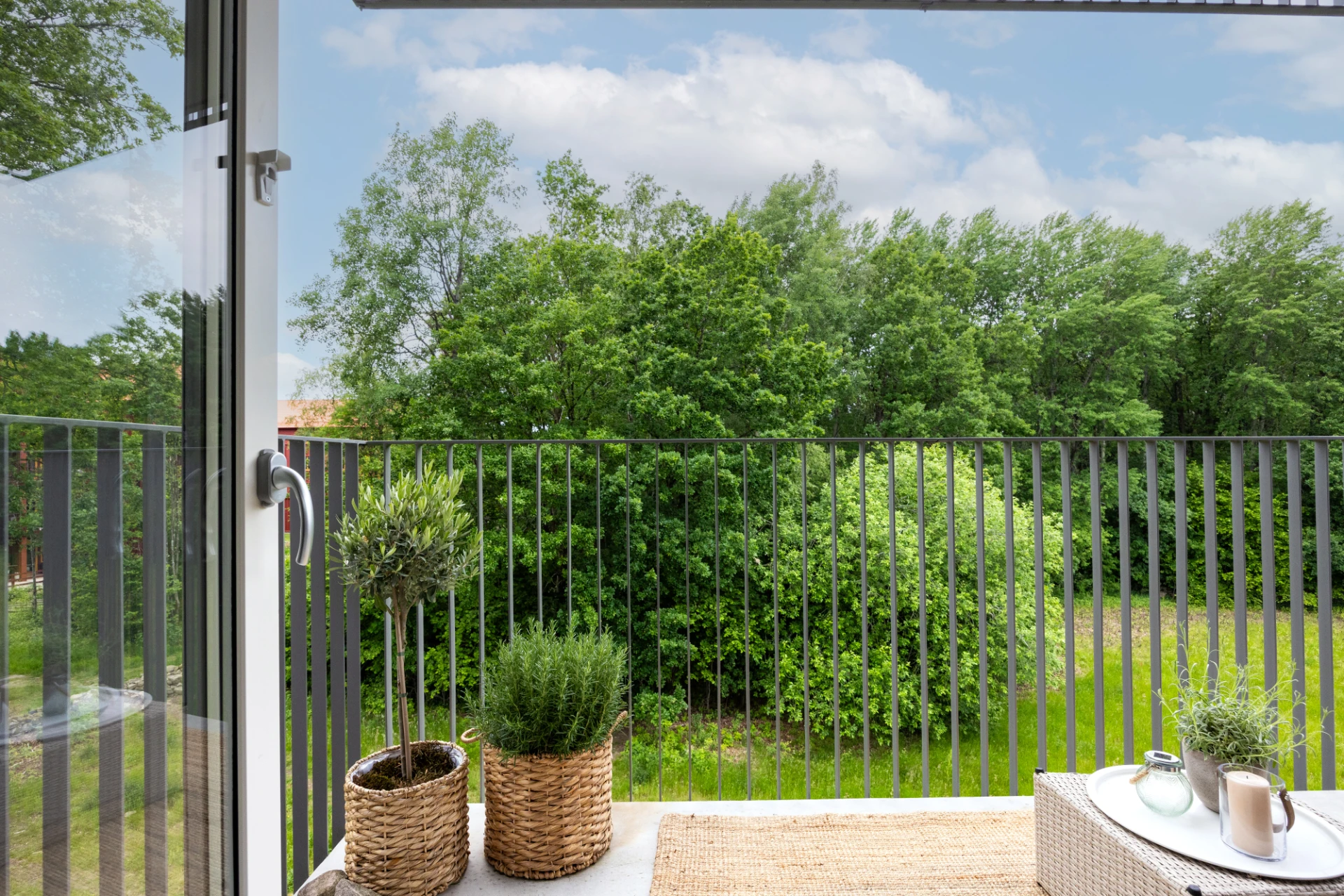 Från vardagsrummet kliver du ut på en härlig balkong i västerläge, med fri sikt mot grönskande skog och natur. Här kan du njuta av fågelsång, eftermiddagssol och ett insynsskyddat läge. Tack vare planlösningen och de generösa fönsterpartierna får bostaden ett fantastiskt ljus på morgonen och håller sig behagligt sval även under sommarens varmaste dagar.