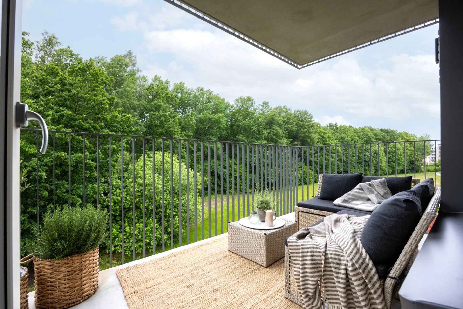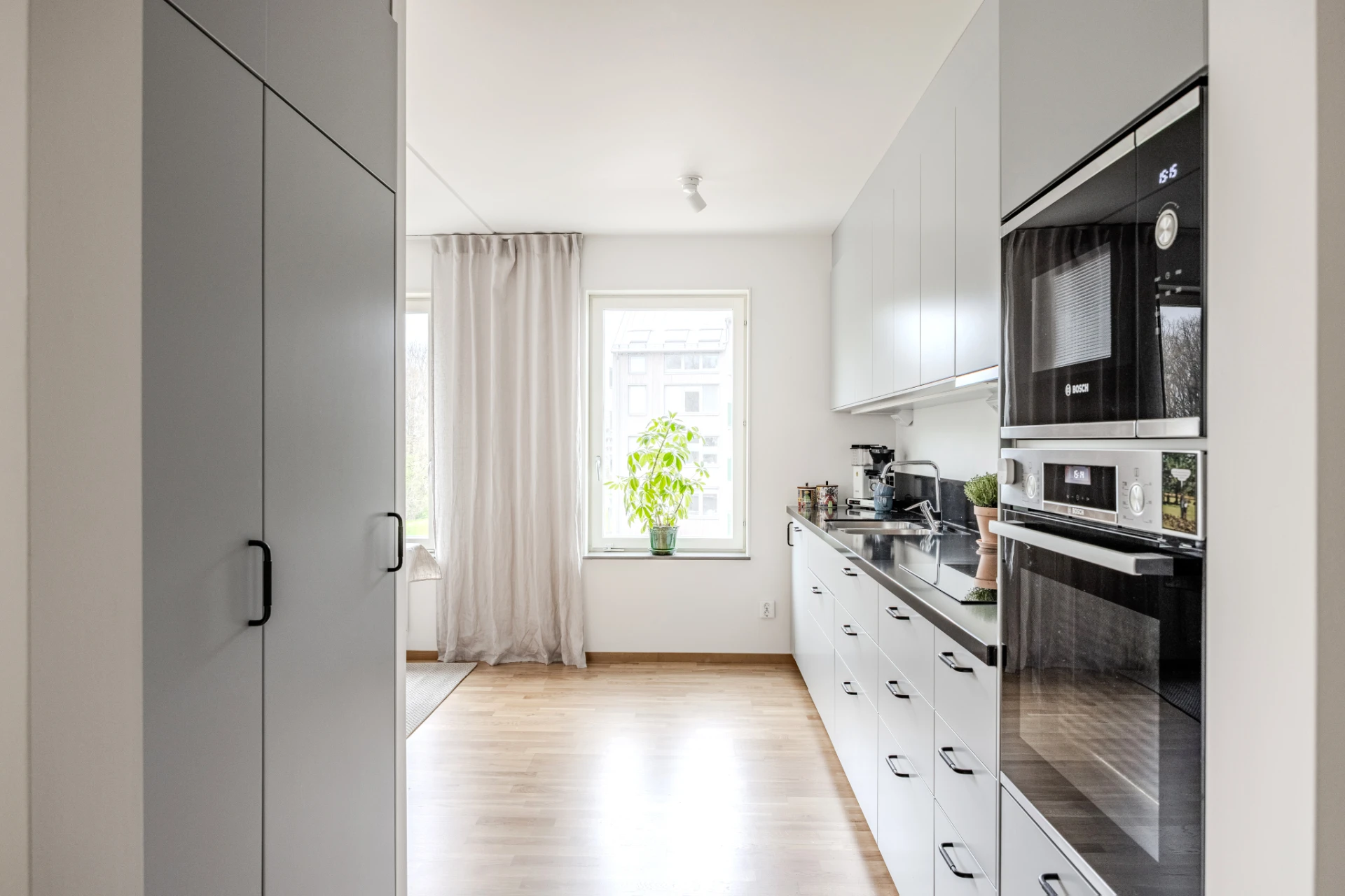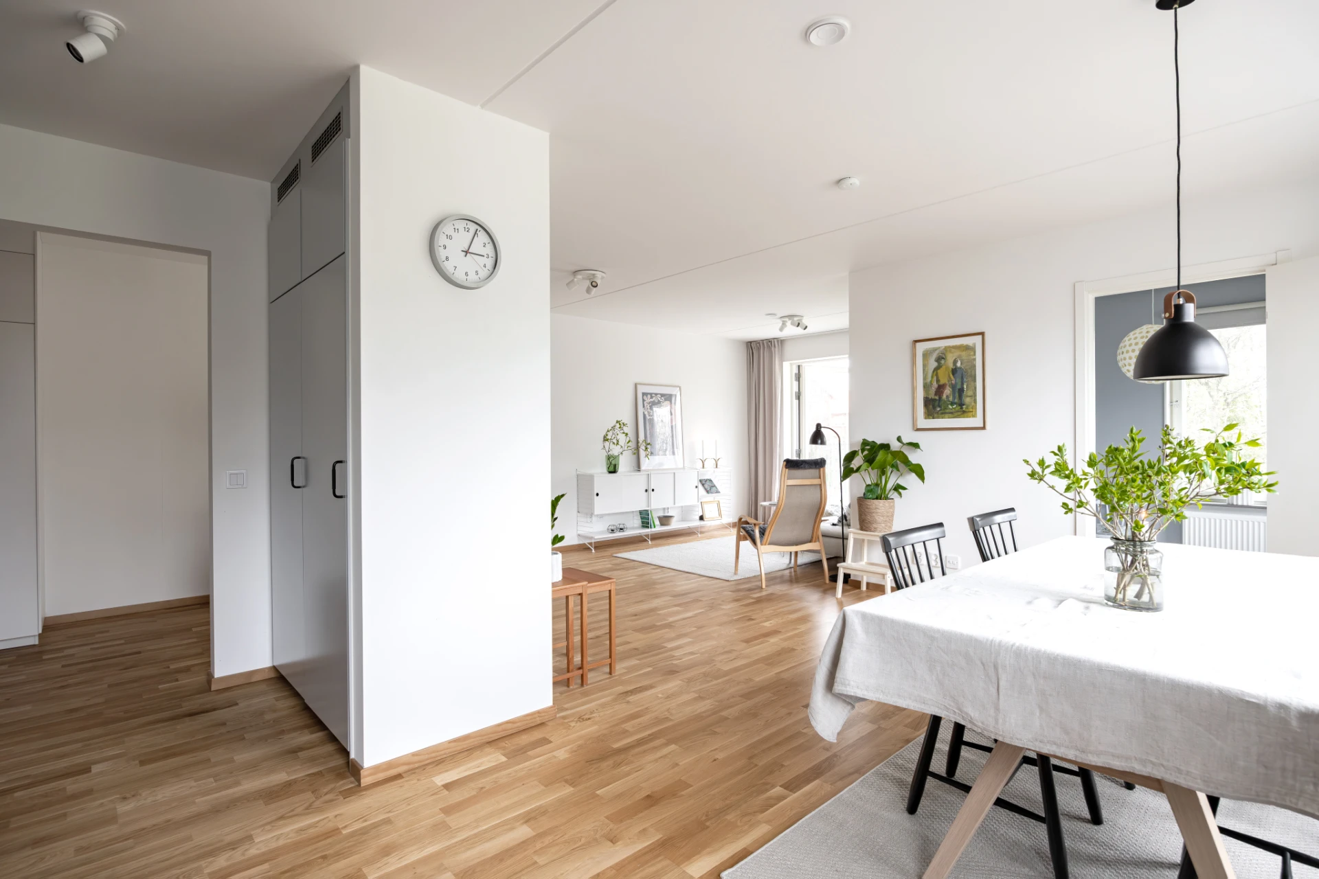 Från vardagsrummet kliver du ut på en härlig balkong i västerläge, med fri sikt mot grönskande skog och natur. Här kan du njuta av fågelsång, eftermiddagssol och ett insynsskyddat läge. Tack vare planlösningen och de generösa fönsterpartierna får bostaden ett fantastiskt ljus på morgonen och håller sig behagligt sval även under sommarens varmaste dagar.