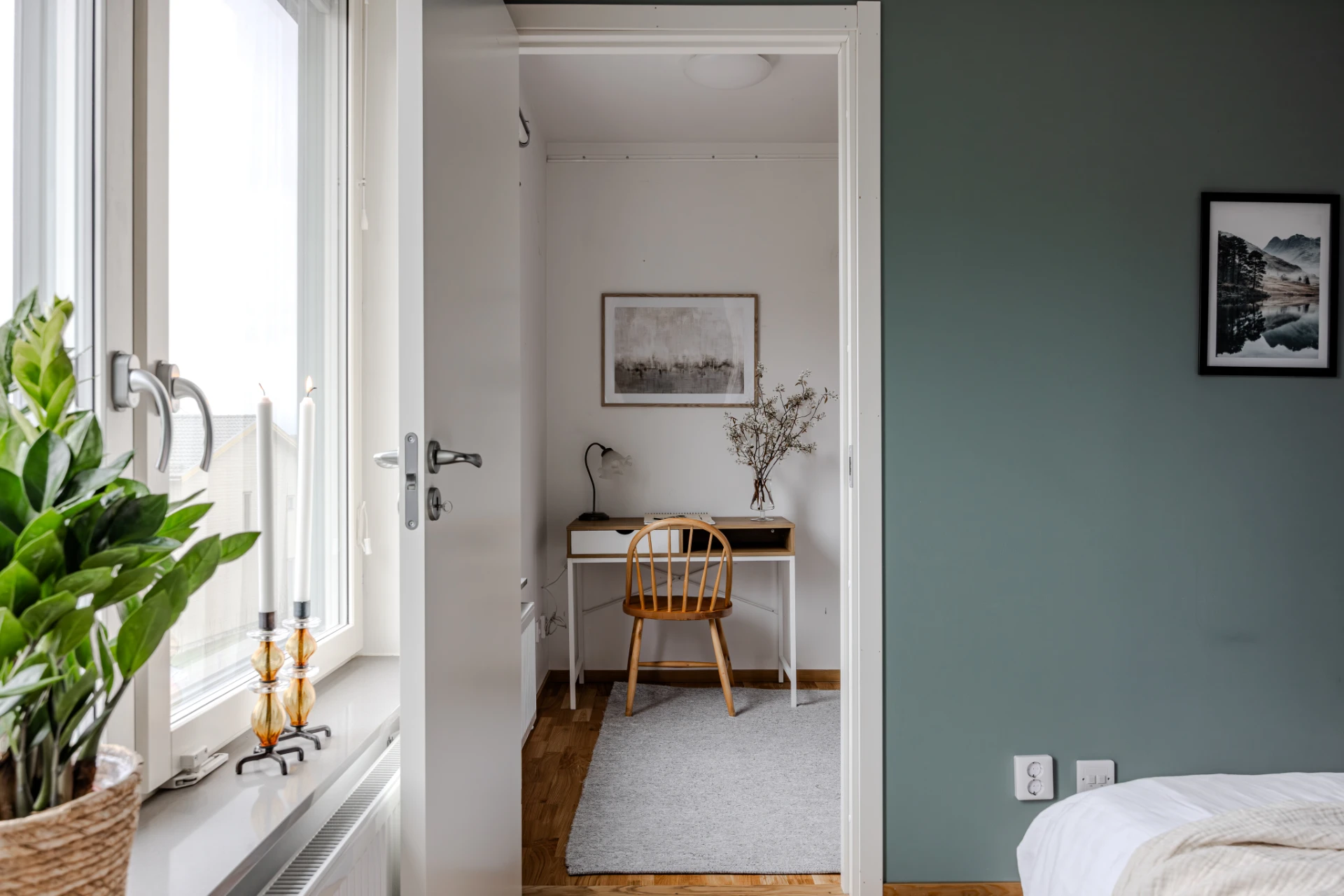Lägenheten är flexibel och kan enkelt anpassas efter dina behov, med möjlighet att skapa en fyra eller avgränsa ytor efter önskemål. Dessutom finns en rymlig klädkammare med fönster som med fördel kan användas som kontor eller ett litet barnrum.
