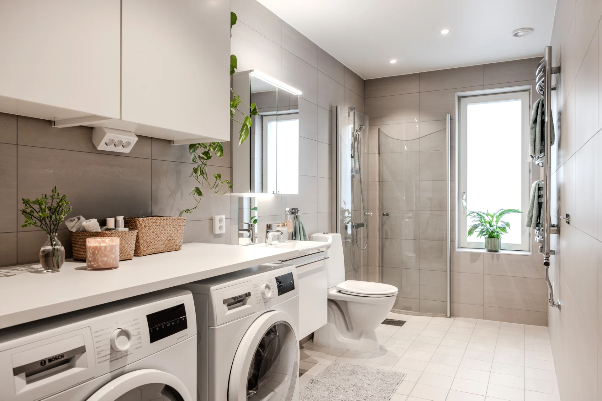 Föreningen har ingen gemensam tvättstuga då varje lägenhet har sin egen tvättutrustning.
