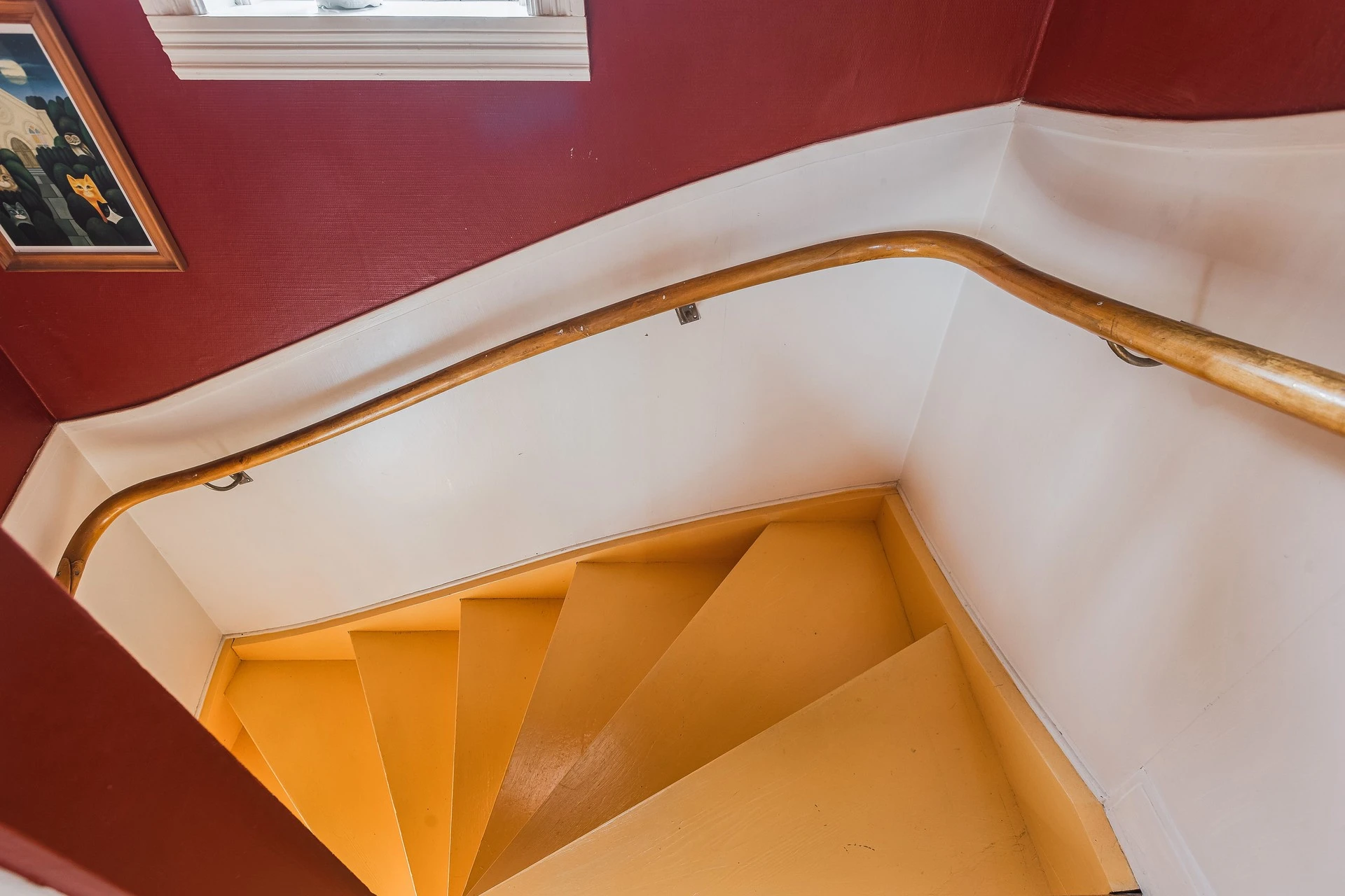 Möblerbar hall med trägolv, boasering samt paneltak. I anslutning till hallen finns en klädkammare och härifrån leder trappan upp till vindsplanet.