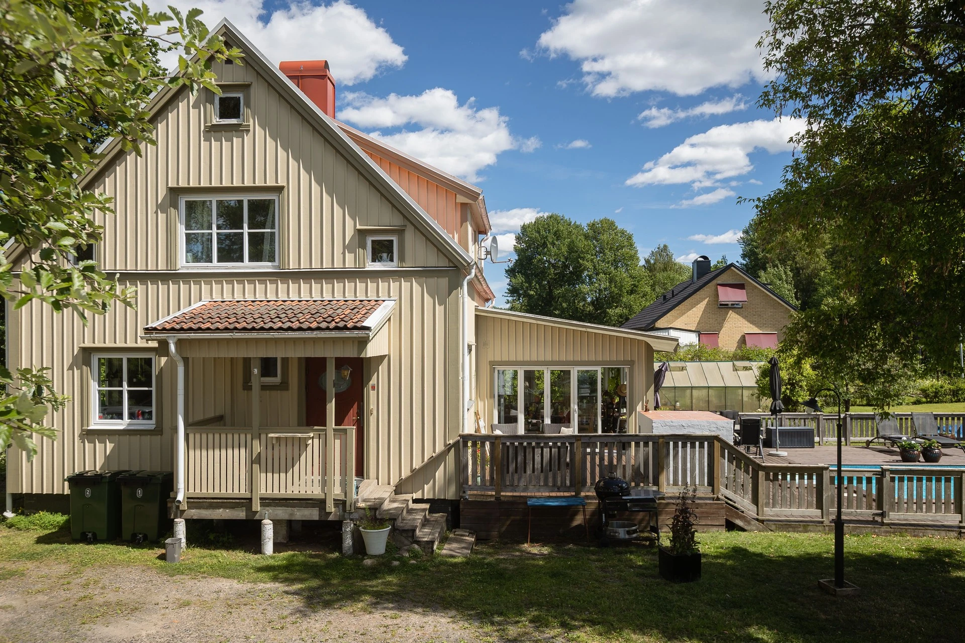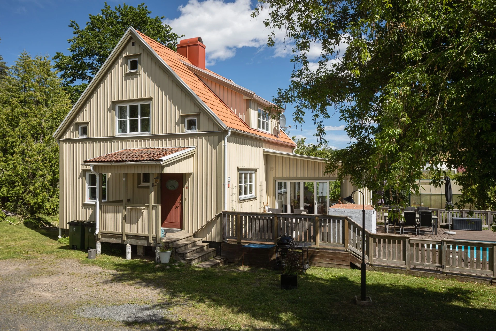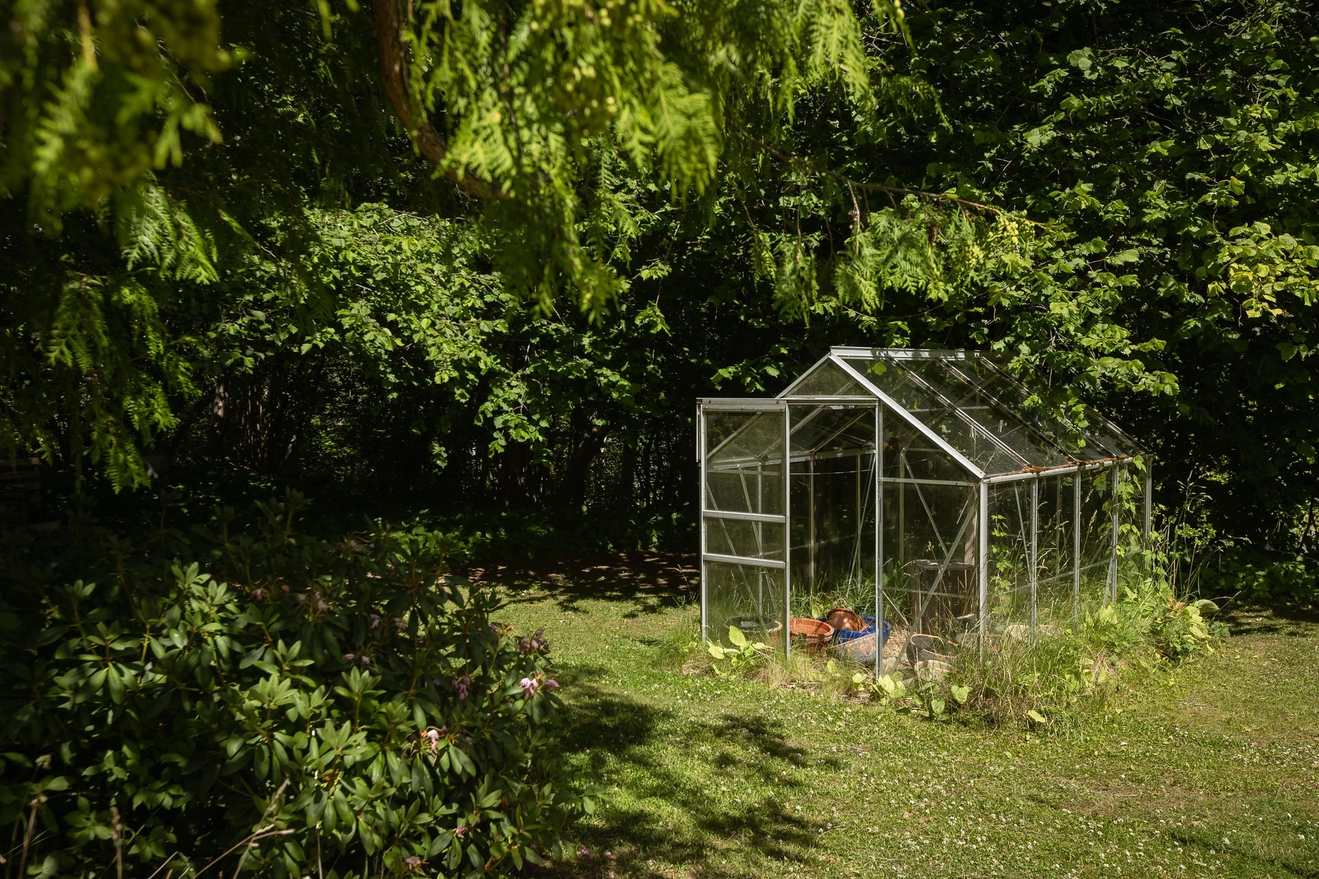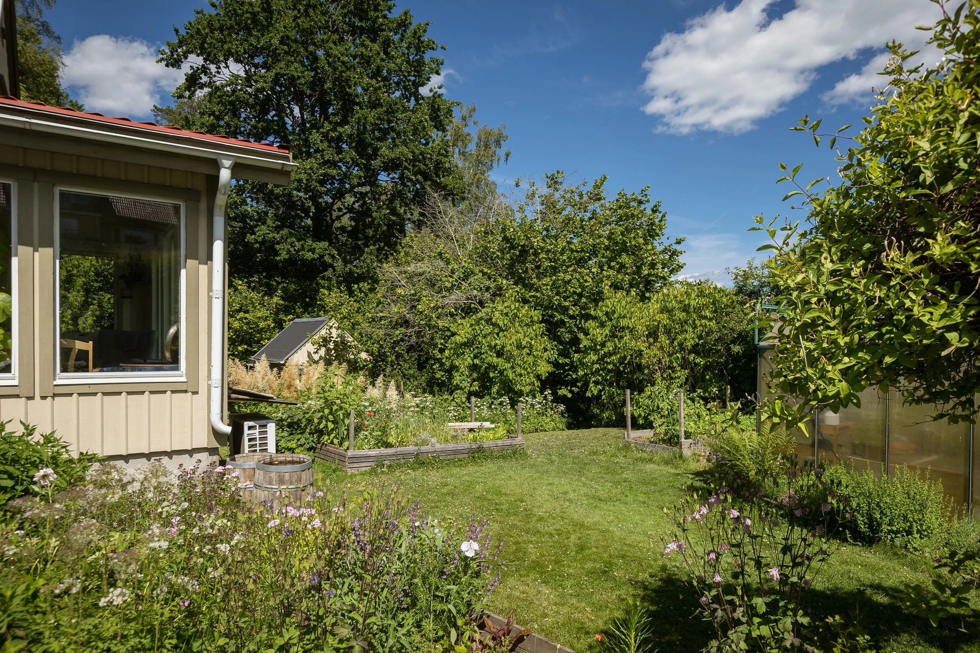 Det stora, inglasade uterummet är ett riktigt extra rum – isolerat och utrustat med golvvärme under stilrena, stora klinkerplattor för maximal komfort året om. Här bjuds du på en underbar utsikt över poolområdet och den grönskande trädgården, samtidigt som de stora skjutdörrarna suddar ut gränsen mellan ute och inne. Oavsett om du njuter av en stilla morgonkaffe, bjuder in till middagar eller vill koppla av med en bok i kvällssolen, är detta en plats som snabbt blir en favorit. En oas för avkoppling, umgänge och livskvalitet – året runt.