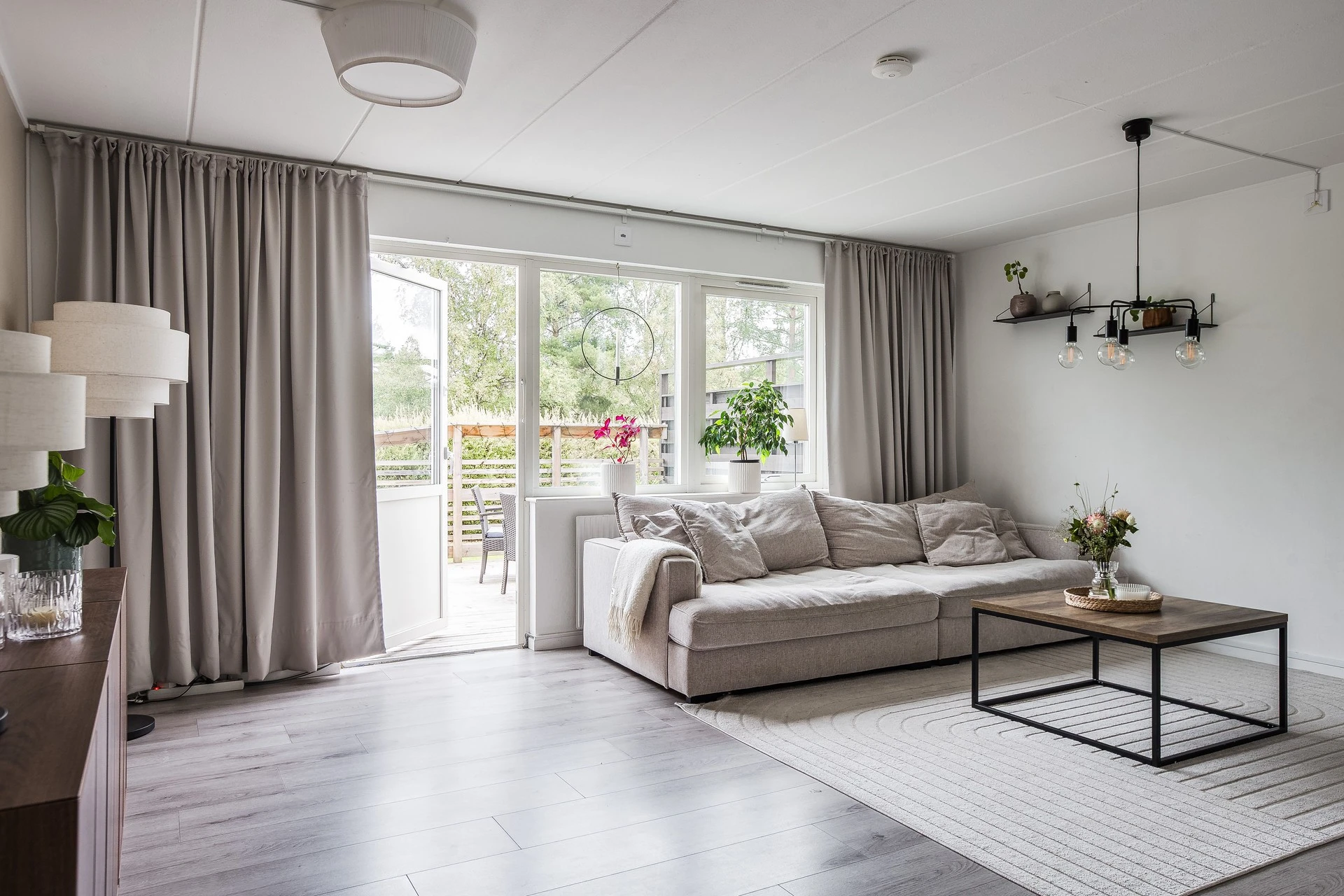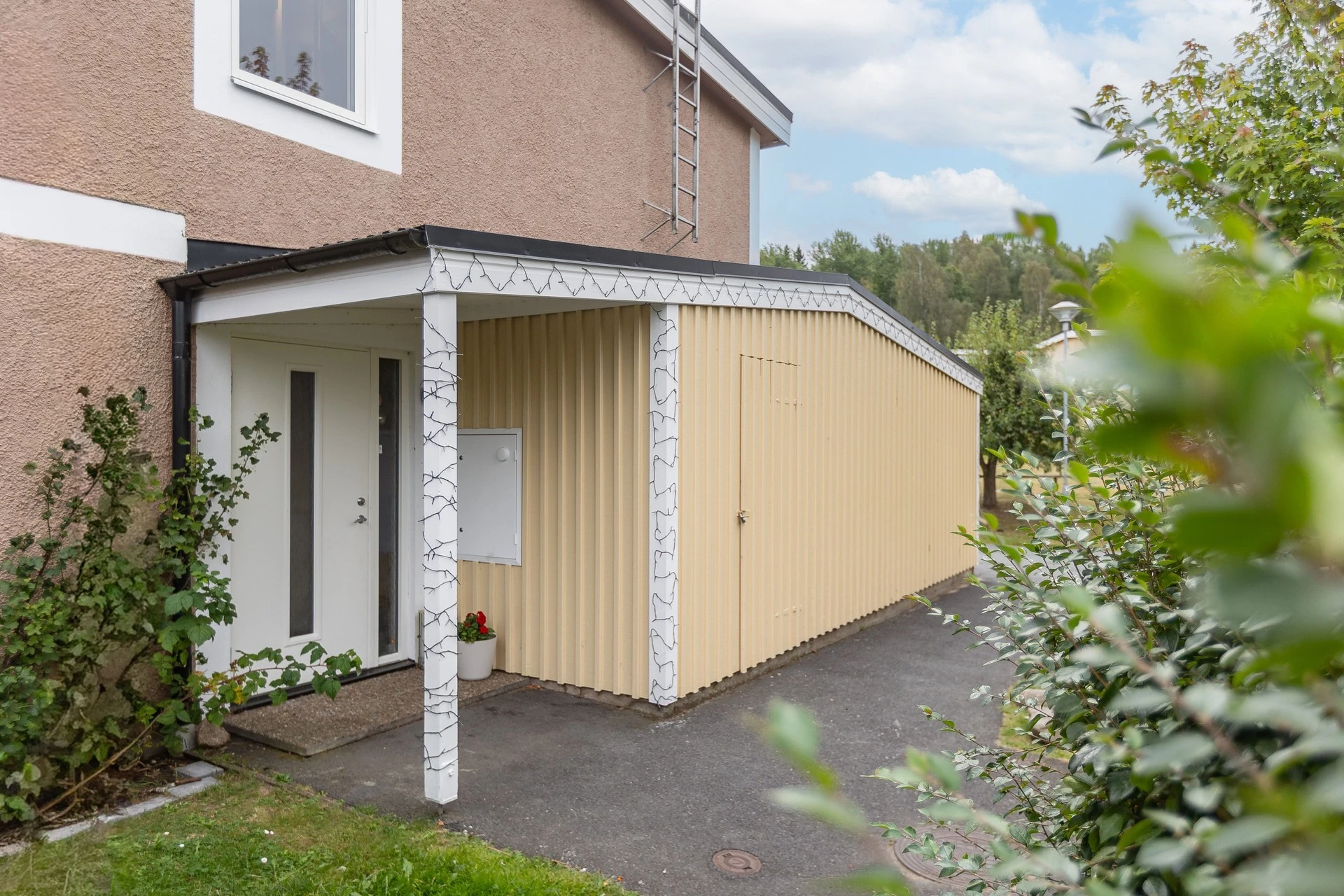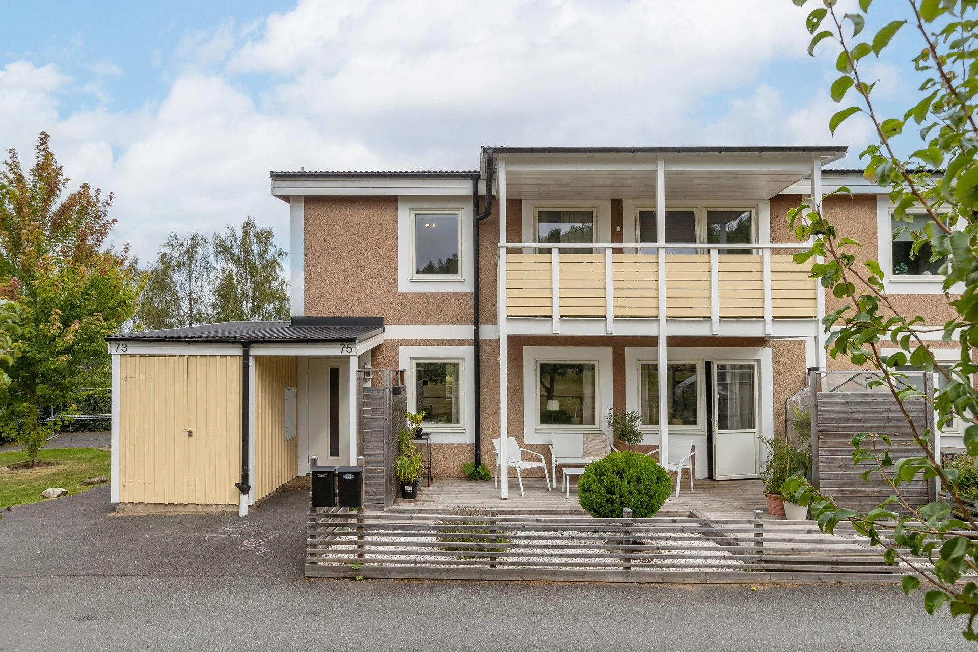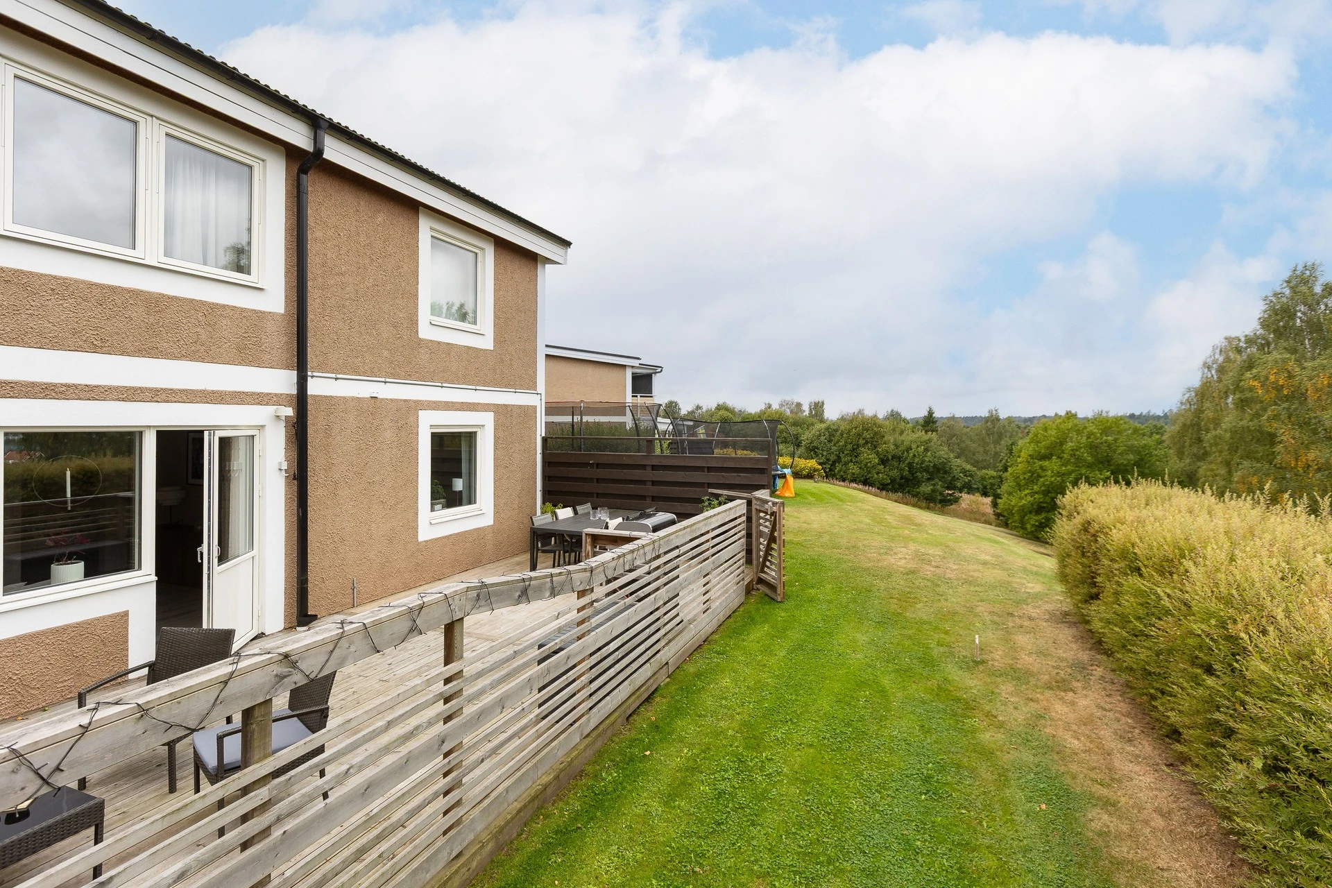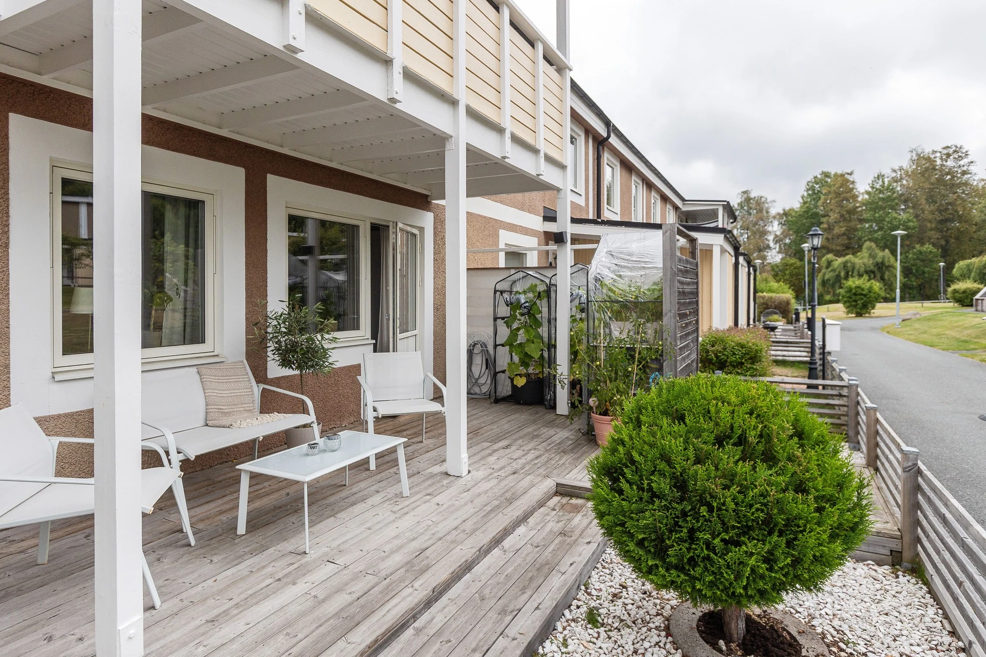 På baksidan av bostaden finns en generös uteplats med fritt läge. En härlig plats där du kan ta en paus och bara vara. Här njuter du av solen i en avskild miljö, med gott om utrymme för både loungemöbler, solstolar och grillhörna. Det här är en uteplats som förlänger hemmet ut i det fria, perfekt för sommarens middagar eller kvällar under bar himmel.