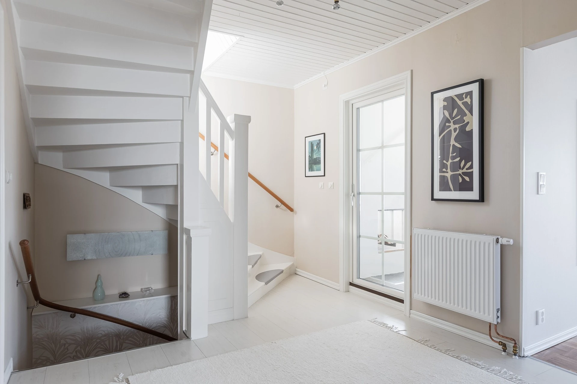 2019 Nya radiatorer i köket, hall mellanvåning samt en i vardagsrummet. Utbytta termostater på övriga element