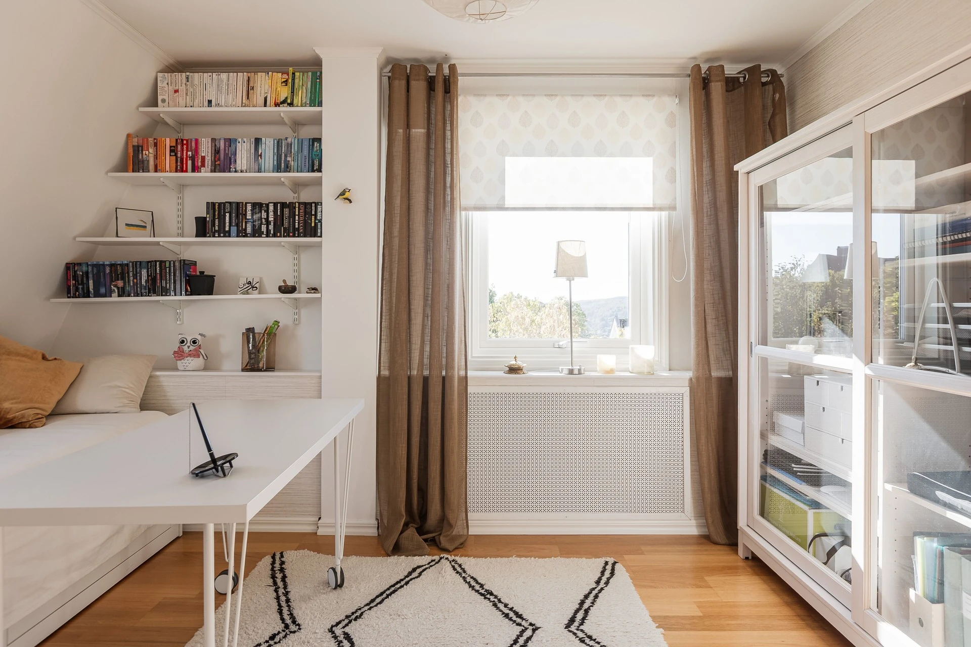 Ett vädringsfönster släpper in naturligt ljus och ger möjlighet till frisk luft, vilket förstärker den fräscha och trivsamma känslan. Som extra guldkant finns en bastu – perfekt för avkopplande stunder efter en lång dag.