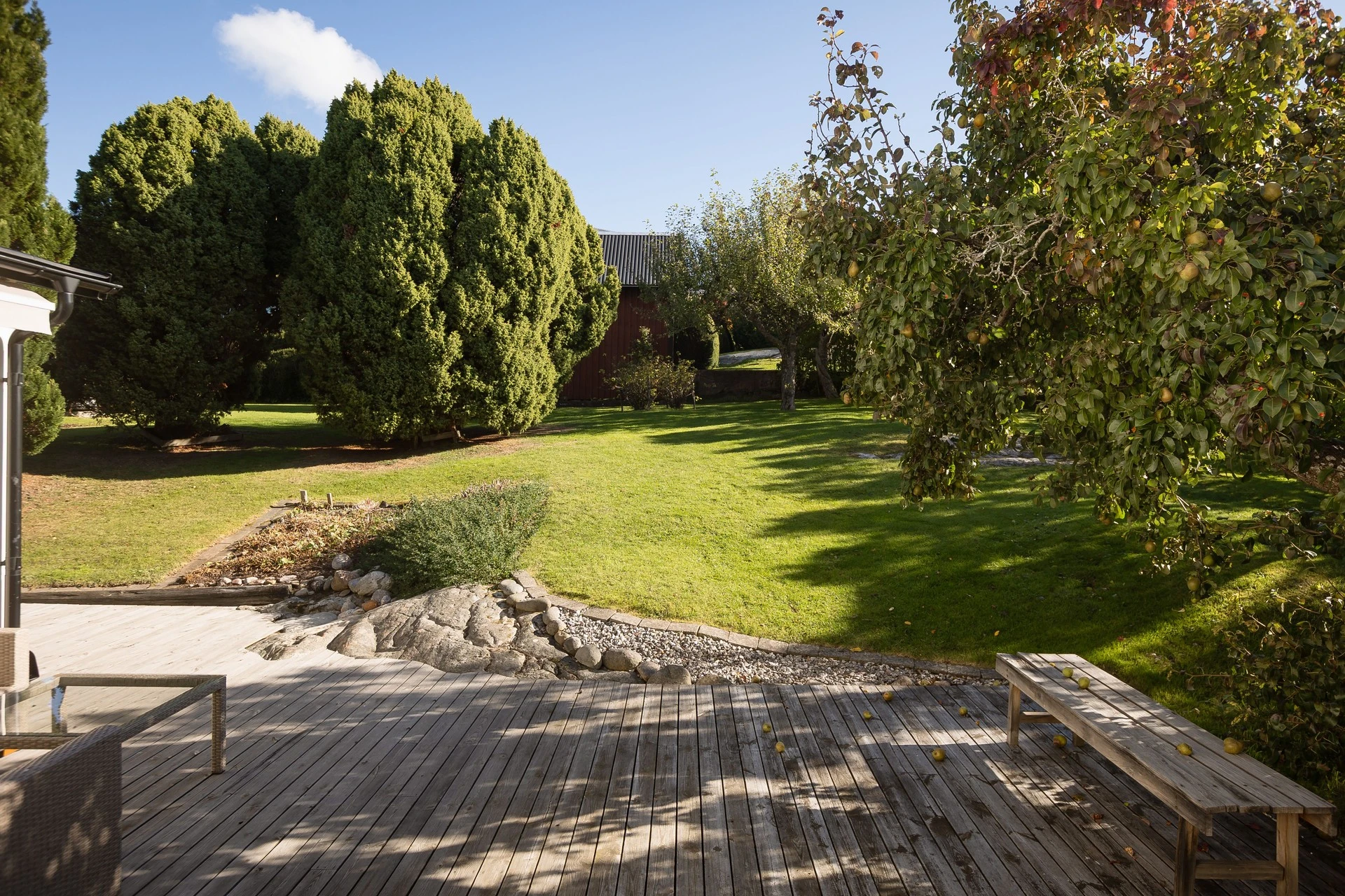 Som pricken över i finns en öppen spis som skapar både värme och en härlig stämning – perfekt för sena kvällar och avkopplande stunder året om.