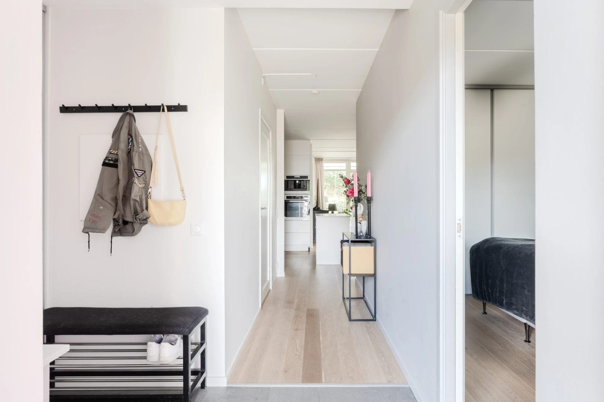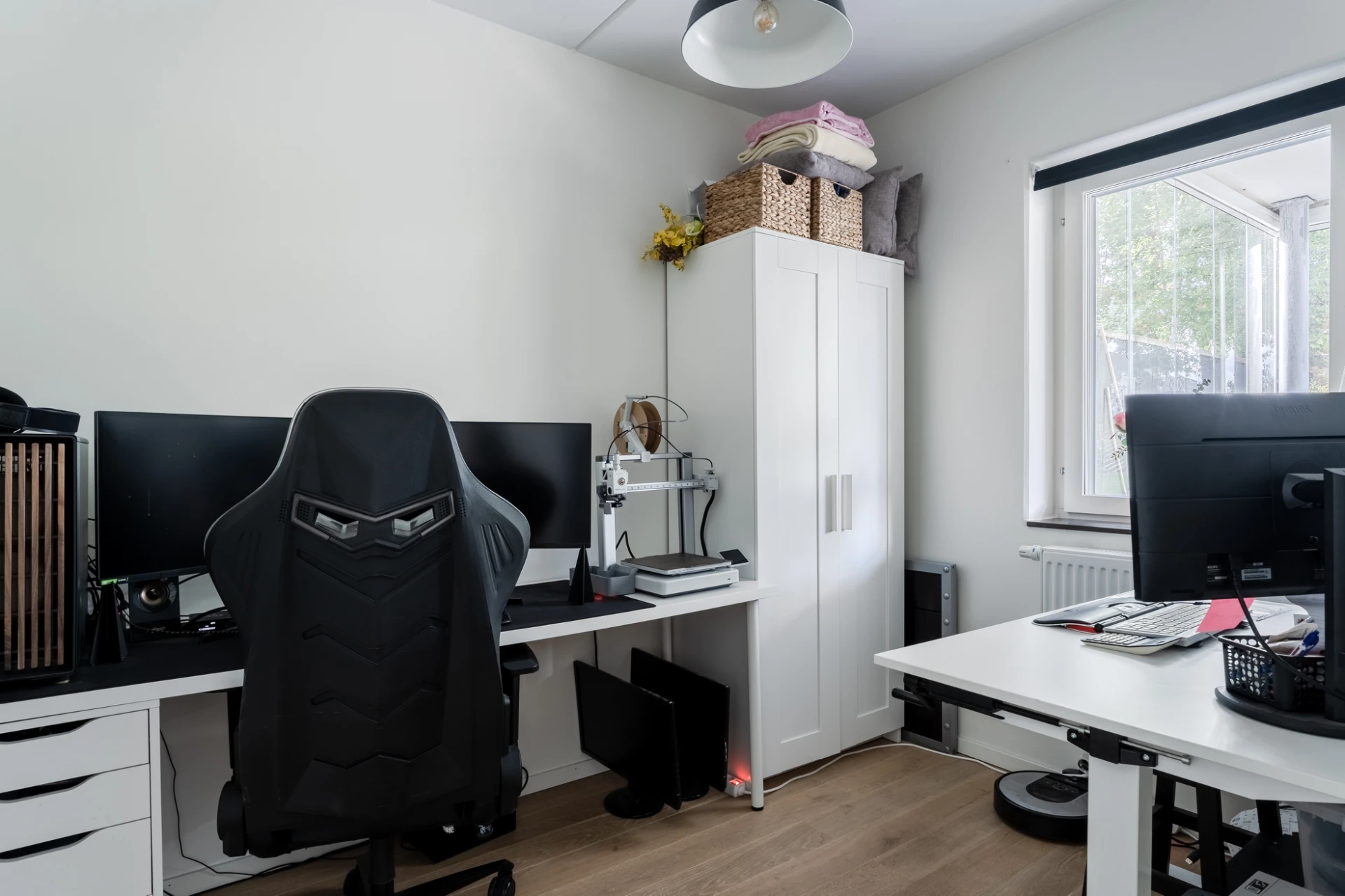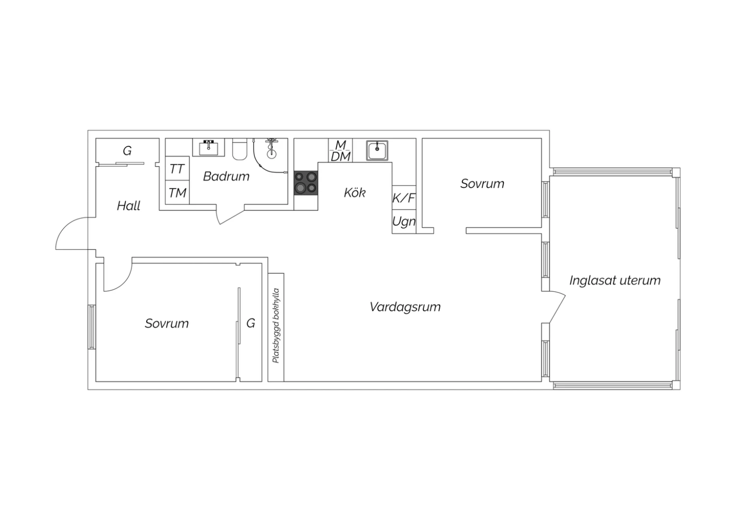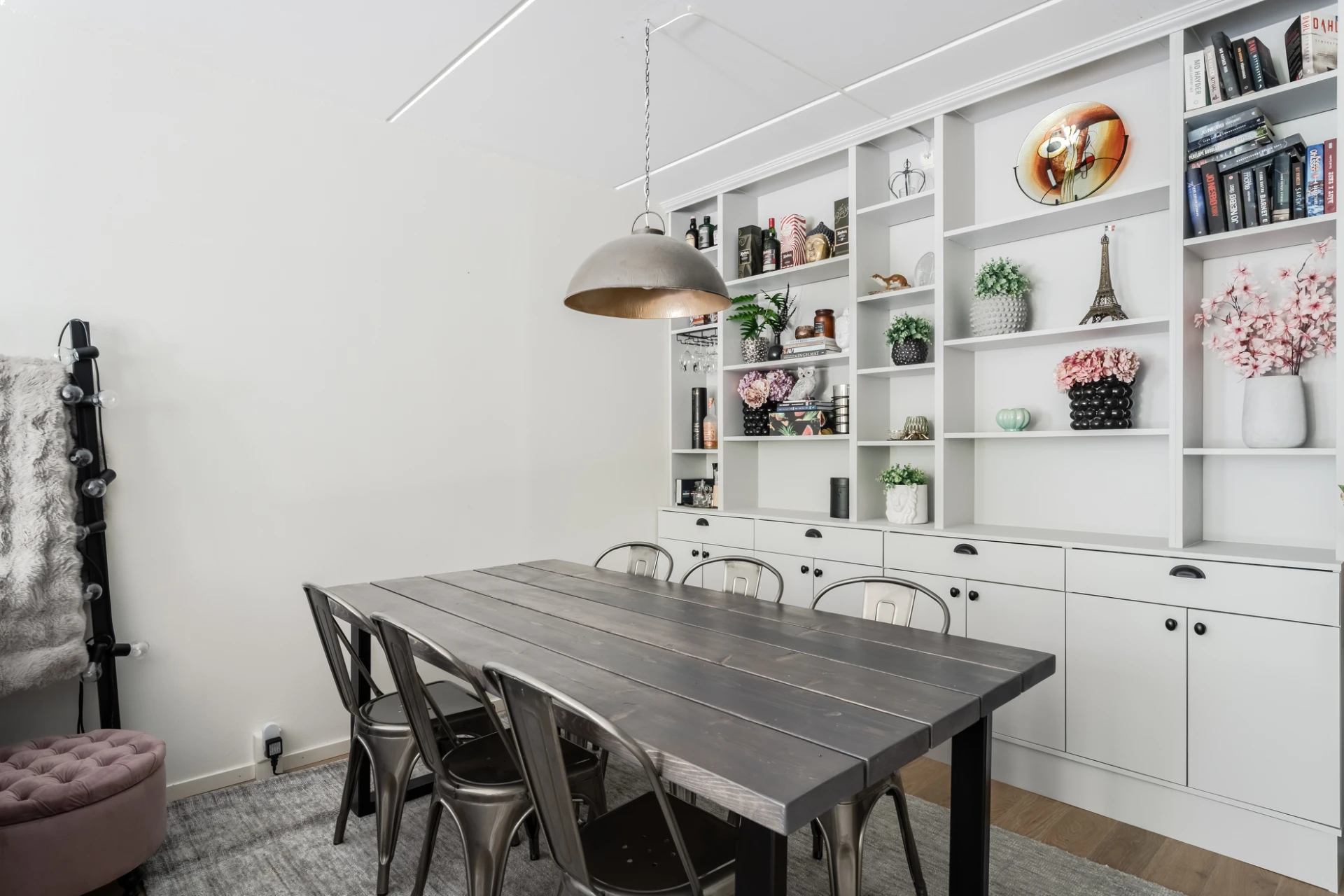 Lägenheten har en modern och genomtänkt planlösning där kök och vardagsrum möts i en öppen och social yta med generös takhöjd vilket skapar både rymd och ljus. Den centrala köksön utgör en naturlig samlingspunkt för både vardag och fest – perfekt för både matlagning och mingel. Materialvalen håller nyproduktionsstandard – här flyttar du in utan att behöva göra någonting. Från vardagsrummet kliver du rakt ut i ett inglasat uterum, som förlänger utesäsongen långt in på året. Härifrån nås även den inhägnade gräsmattan – en privat liten trädgård med sol från förmiddag till sen kväll. Perfekt för avkoppling, odling eller lek – tryggt och avskilt. Det här är ett hem som verkligen bjuder på det lilla extra – som egen tvättutrustning, goda förvaringsutrymmen och lättillgänglig entré i markplan (utan trappor). Bilen parkerar du smidigt på föreningens parkering strax intill huset (kostnad tillkommer för parkeringsplats). Föreningen har faciliteter som övernattningsrum, perfekt för långväga gäster!
