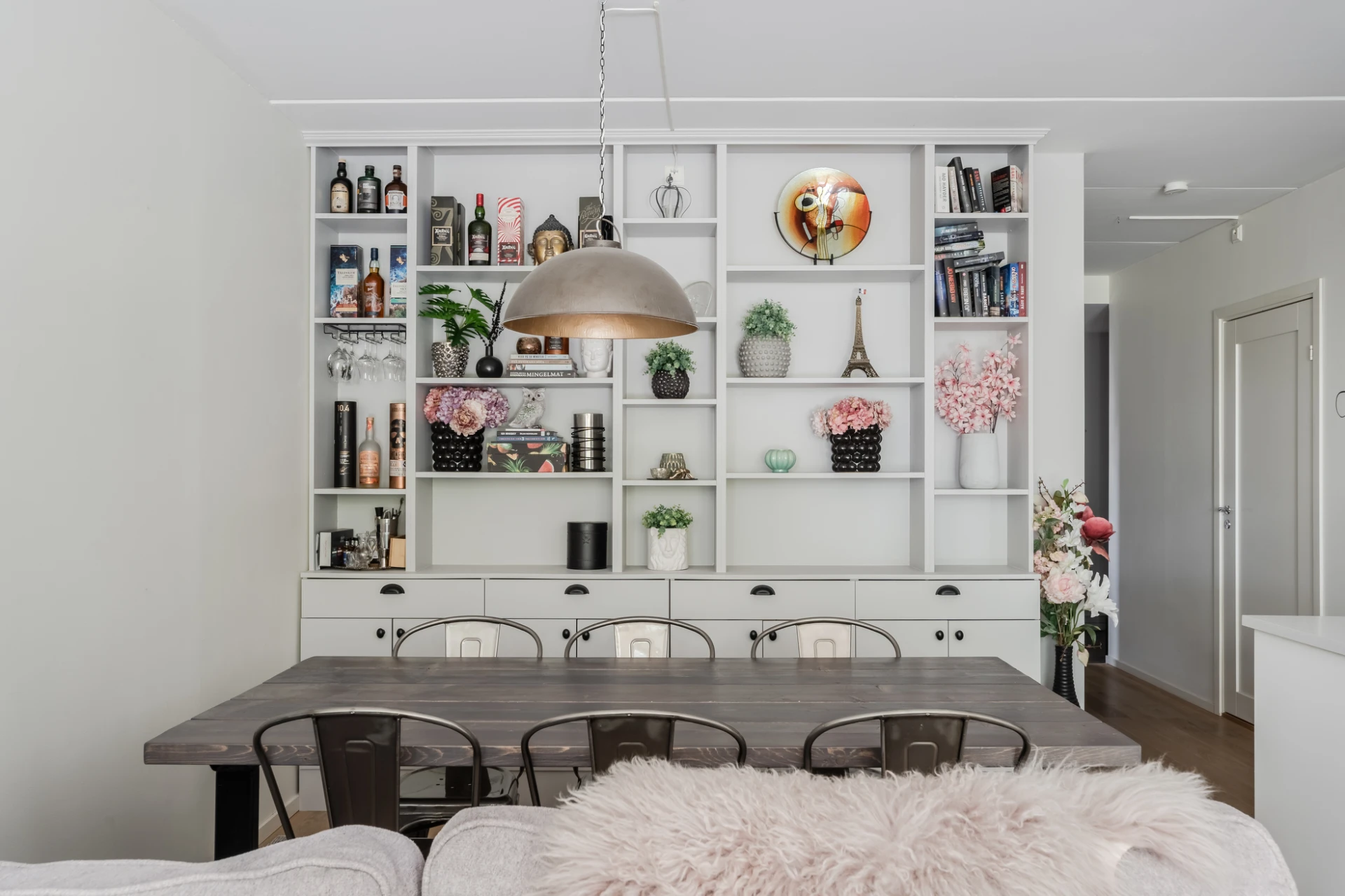 2023 Byggdes platsbyggdes hylla i vardagsrum.