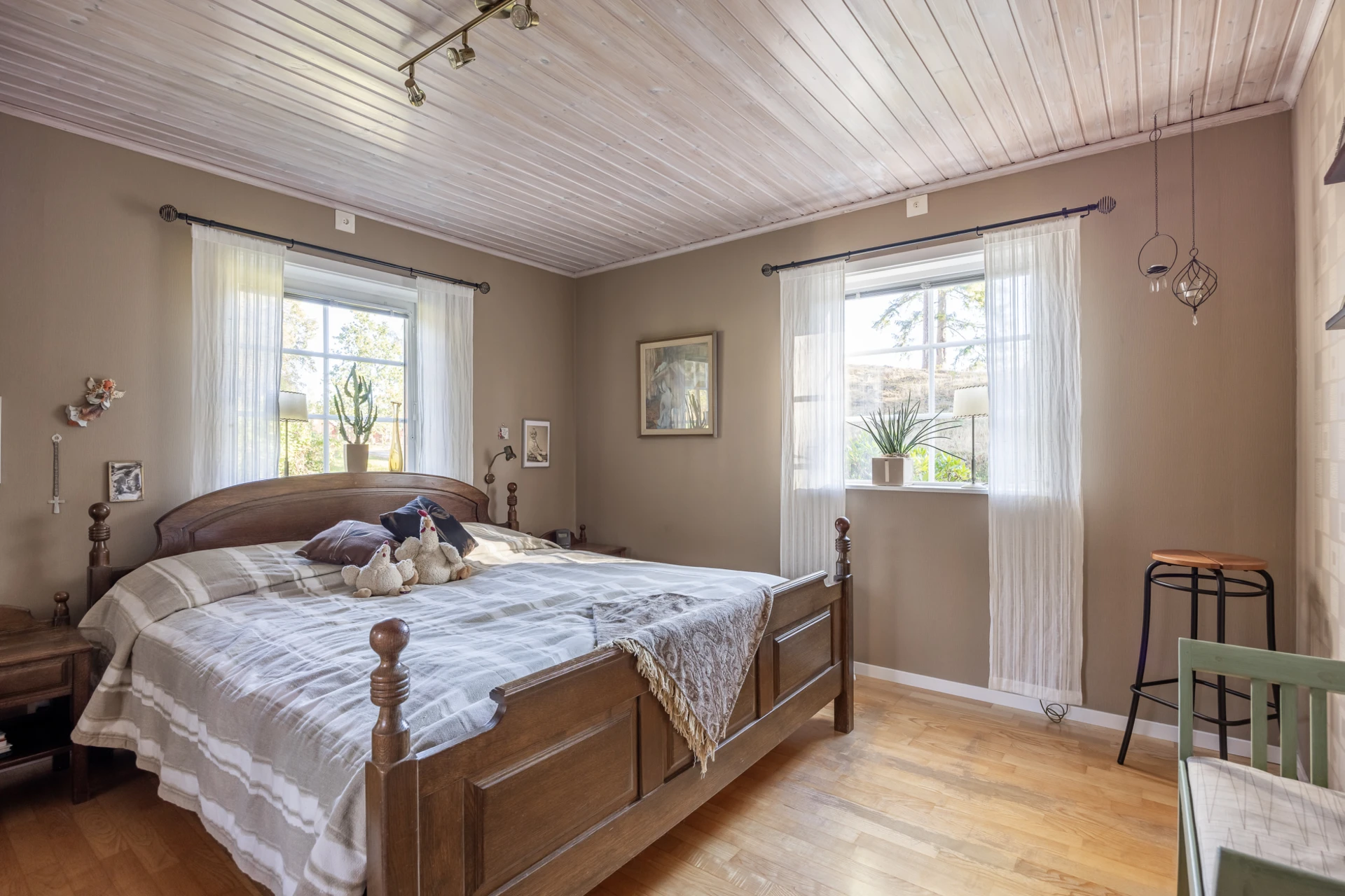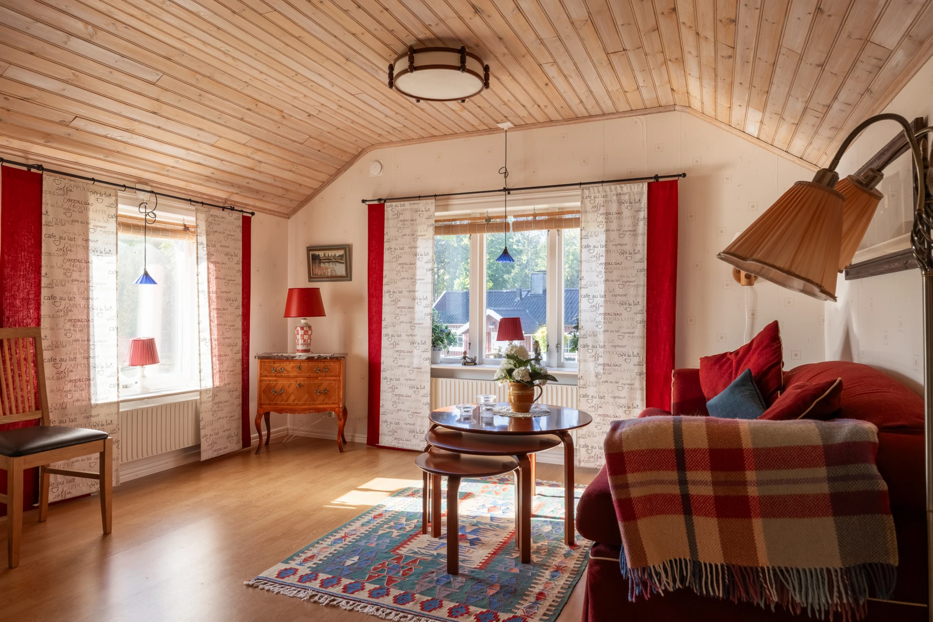 Bostadshuset från 1909 är ett charmigt och praktiskt enplanshus som varsamt renoverats och byggts till med fokus på både funktion och karaktär. Här möts gammaldags charm och moderna bekvämligheter, med ett stort inglasat uterum med braskamin som naturlig samlingspunkt för familj och vänner. På tomten finns dessutom ett fristående gästhus/lillstuga – perfekt för generationsboende, uthyrning eller kreativt hemmakontor.