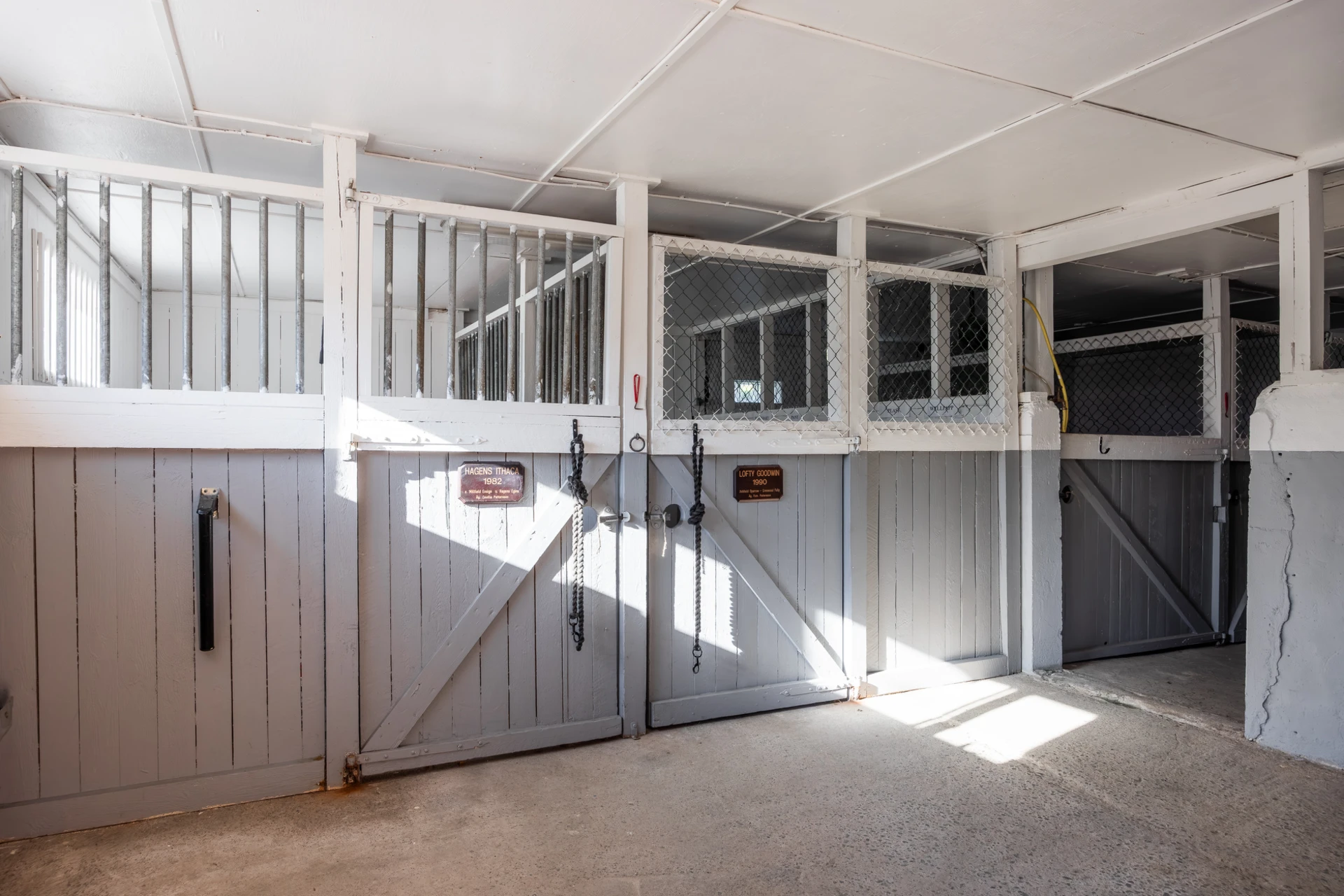 Stallet med loge har 3–4 boxar med indraget vatten och en uppvärmd sadelkammare med tvättmaskin, medan en av hagarna har ett skjul för lösdrift – idealiskt för flexibel hästhållning.