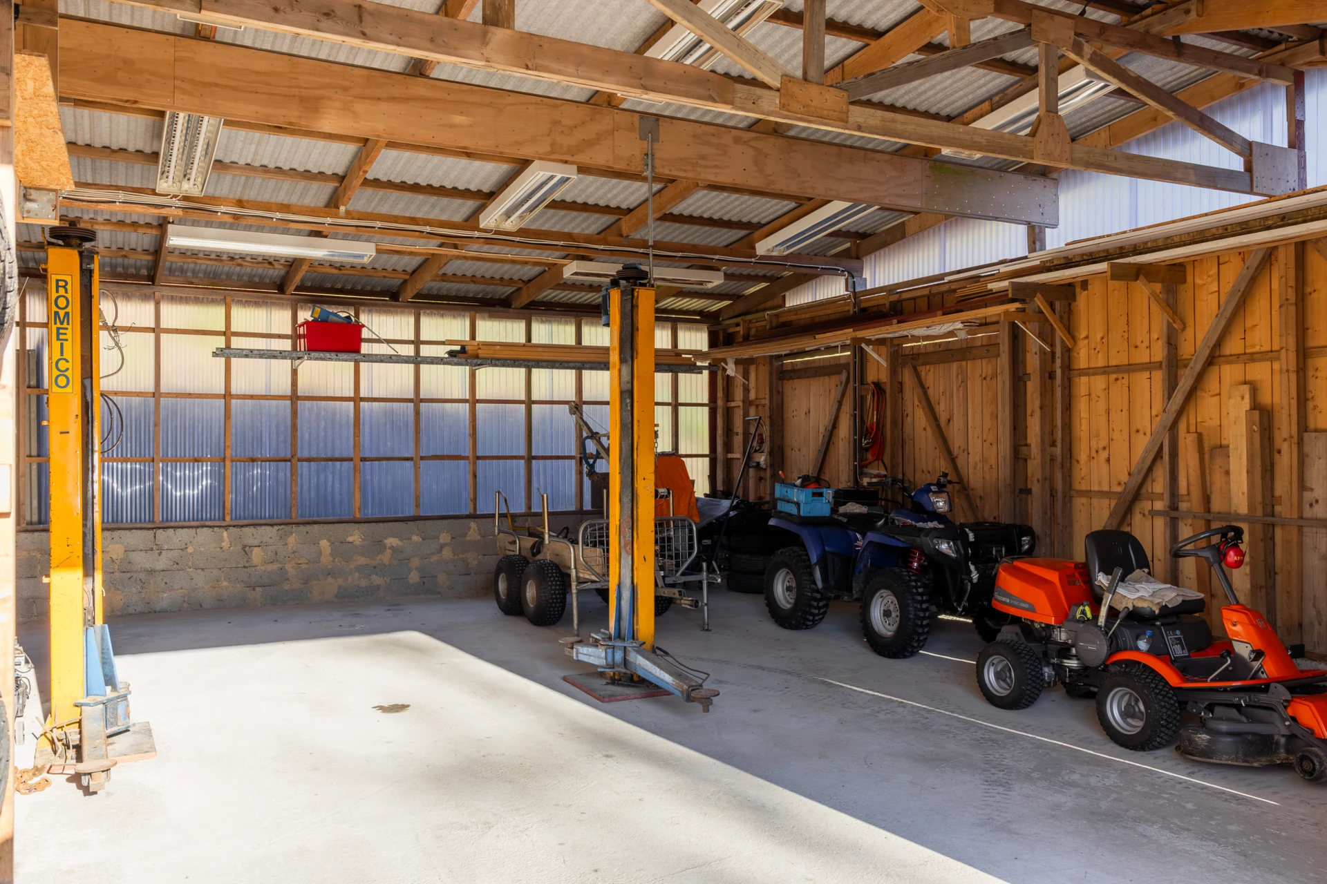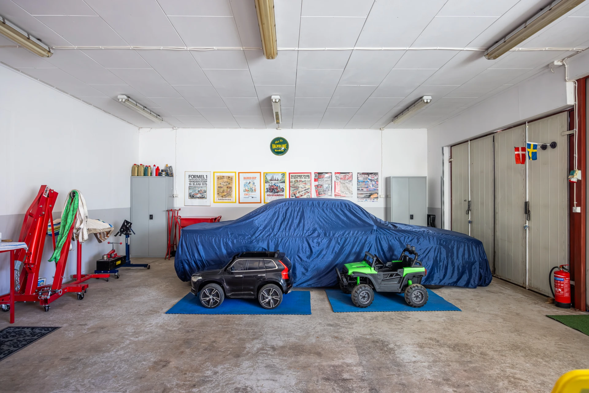 Gårdens ekonomibyggnader och garage erbjuder stora möjligheter för verksamhet och hobbyprojekt. Den nybyggda ekonomibyggnaden från 2020 används idag som hundhall och är utrustad med värmepump, vilket gör den lämplig för olika typer av verksamheter, kontor, ateljé eller mindre produktion. Här finns dessutom ett stort garage om totalt ca 185 kvm, uppdelat på varmgarage om ca 85 kvm med luftvärmepump och kallgarage om ca 100 kvm – perfekt för fordon, maskiner, förvaring eller verkstad. Ytterligare två redskapsbodar, en mindre verkstad om ca 14 kvm samt en traditionell matkällare ger ännu fler möjligheter att organisera och utveckla verksamheter.