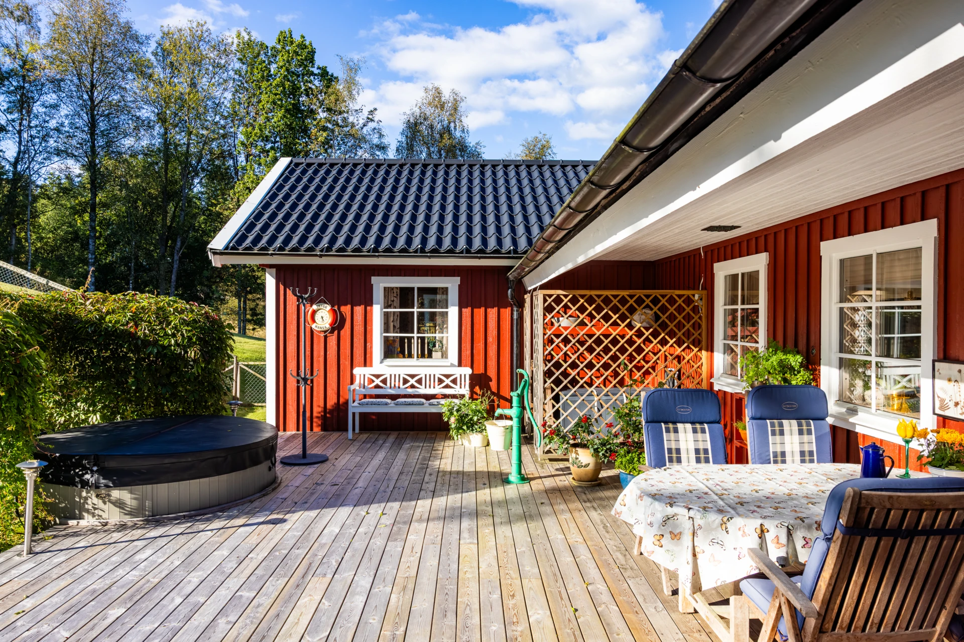 Fastigheten är utrustad med djupborrad brunn, trekammarbrunn och bergvärme, vilket ger ett tryggt och energieffektivt system för vatten, avlopp och uppvärmning. Naturen runt knuten bjuder in till promenader, ridturer och friluftsliv vid närliggande Östra Nedsjön. Hindås och Bollebygd med skolor, förskolor och service ligger inom bekvämt avstånd, vilket gör gården perfekt även för familjeliv.