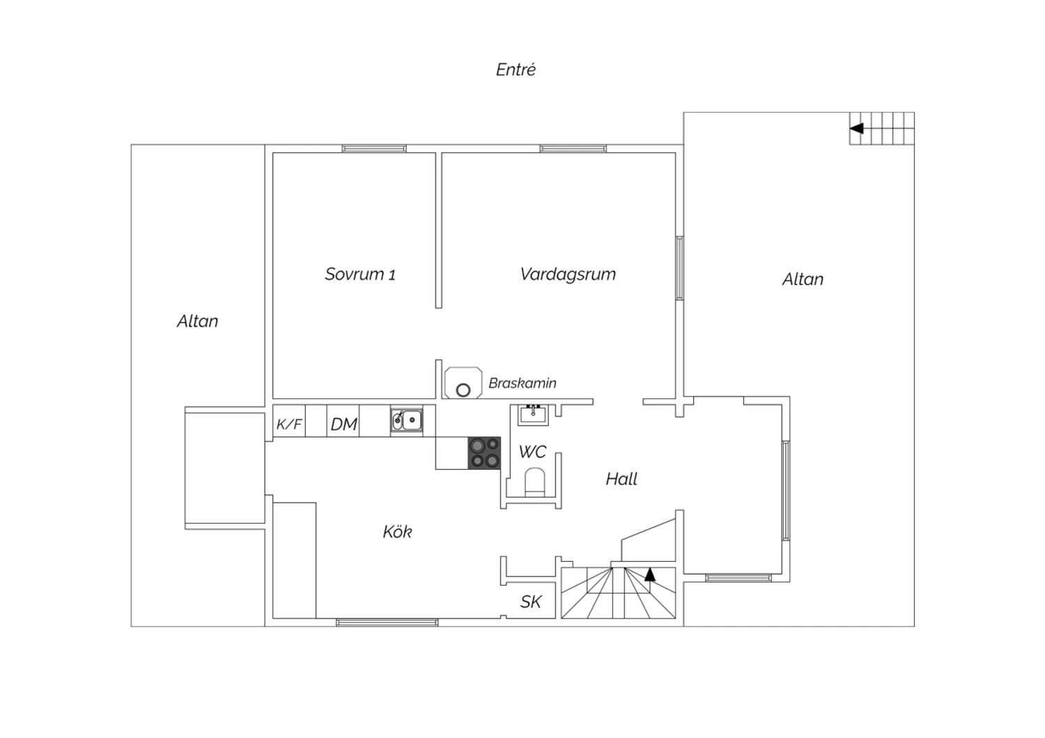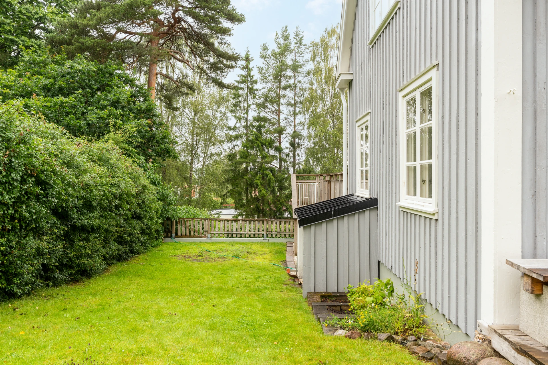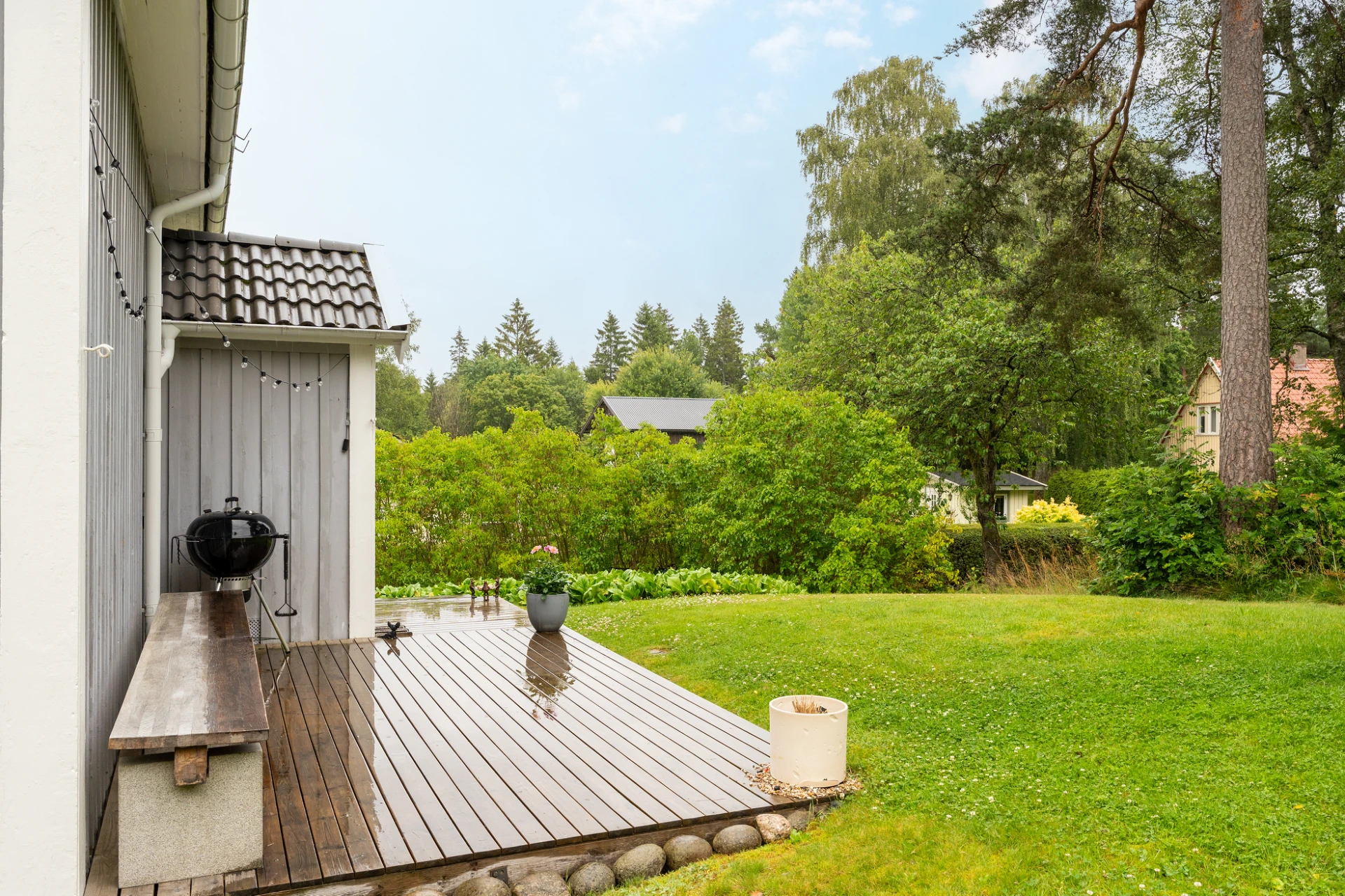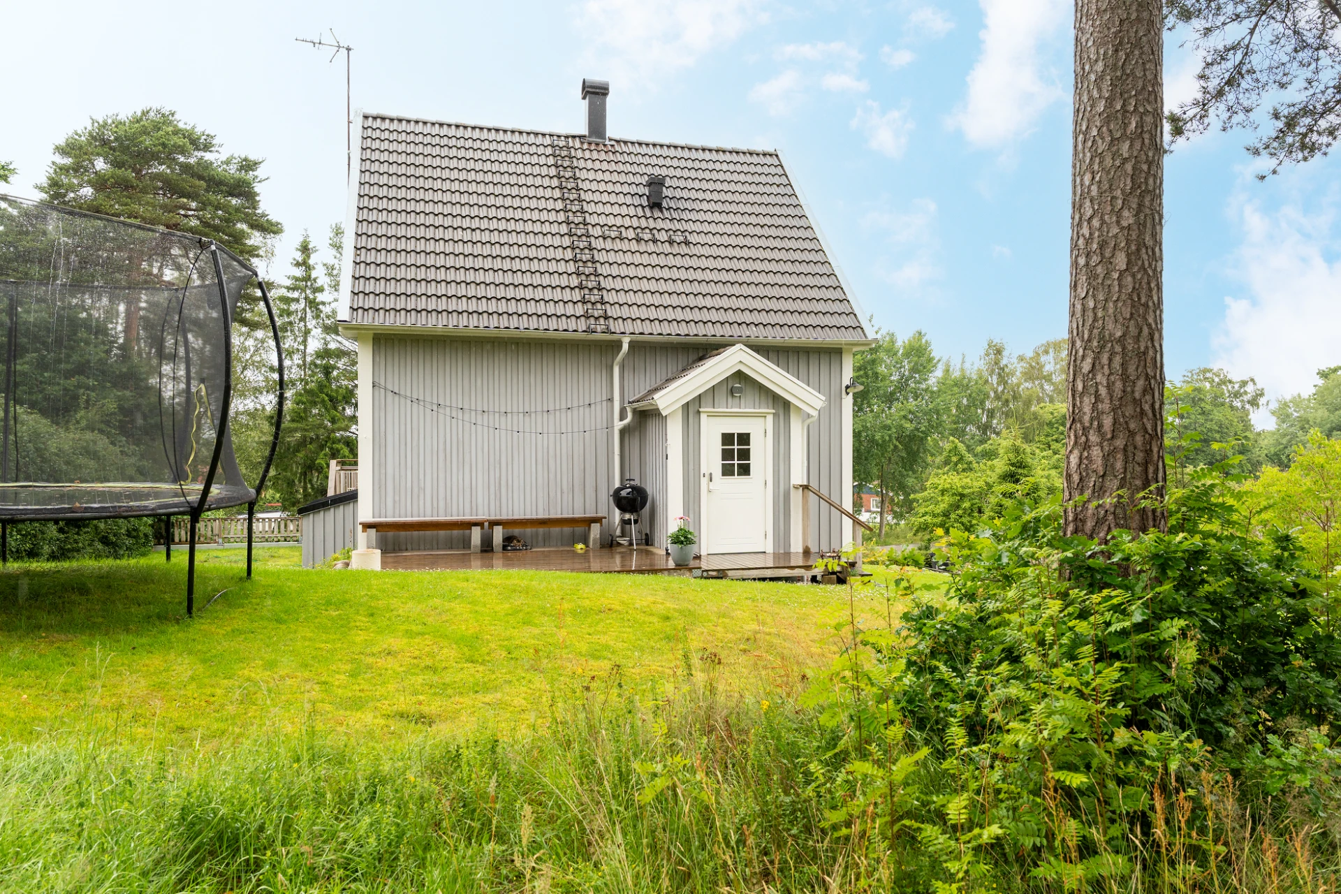 Utomhus finns en stor, solig altan med plats för både matgrupp, loungemöbler och grill – en perfekt plats för sommarens alla tillfällen, från frukost i morgonsolen till sena kvällar med vänner. Trädgården är insynsskyddad och grönskande – en privat oas med gott om utrymme för både lek och avkoppling.