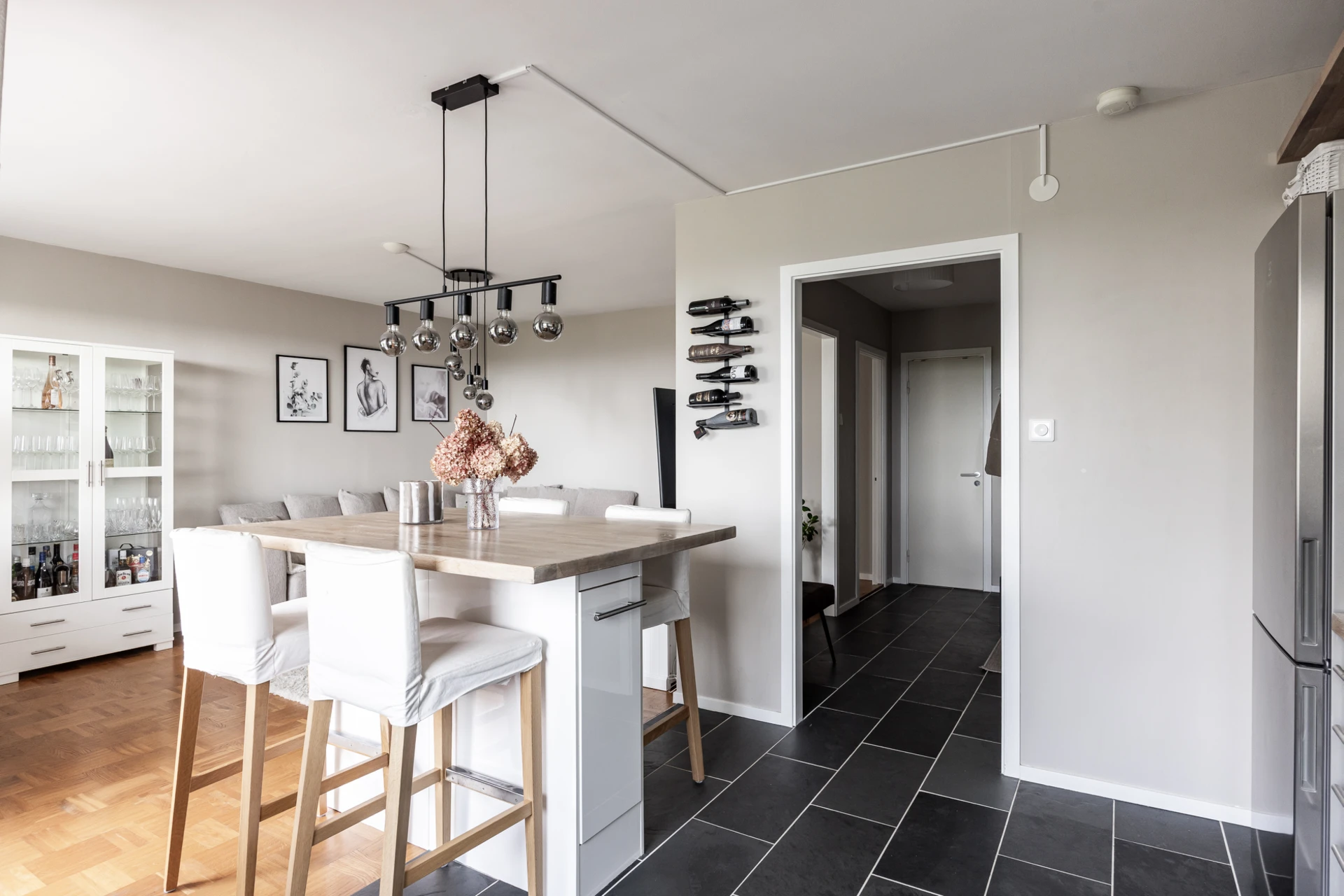I ett fritt och högt läge med utsikt som sträcker sig över hela staden, finner du denna tilltalande och ljusa tvåa som erbjuder ett boende utöver det vanliga. Här möts du av en öppen planlösning där vardagsrum och kök smälter samman på ett socialt och inbjudande sätt. De ljusa, moderna ytskikten skapar en stilren känsla och förstärker det generösa ljusinsläppet. Från vardagsrummet nås bostadens inglasade balkong – en riktig oas som under sommaren bjuder på soliga kvällar och avkoppling med vidsträckta vyer. Här kan du njuta av utsikten över landmärken som Lisebergstornet, Älvsborgsbron, Skansen Kronan, Hisingen och Göteborgs innerstad. Balkongen är dessutom utrustad med infravärme, vilket förlänger utesäsongen långt in på hösten. Det helkaklade badrummet är stilrent och fräscht, utrustat med både tvättmaskin och torktumlare – ett stort plus för dig som vill ha vardagskomfort med allt inom räckhåll. Bostaden har dessutom goda förvaringsutrymmen vilket skapar ordning och rymd i hela bostaden.