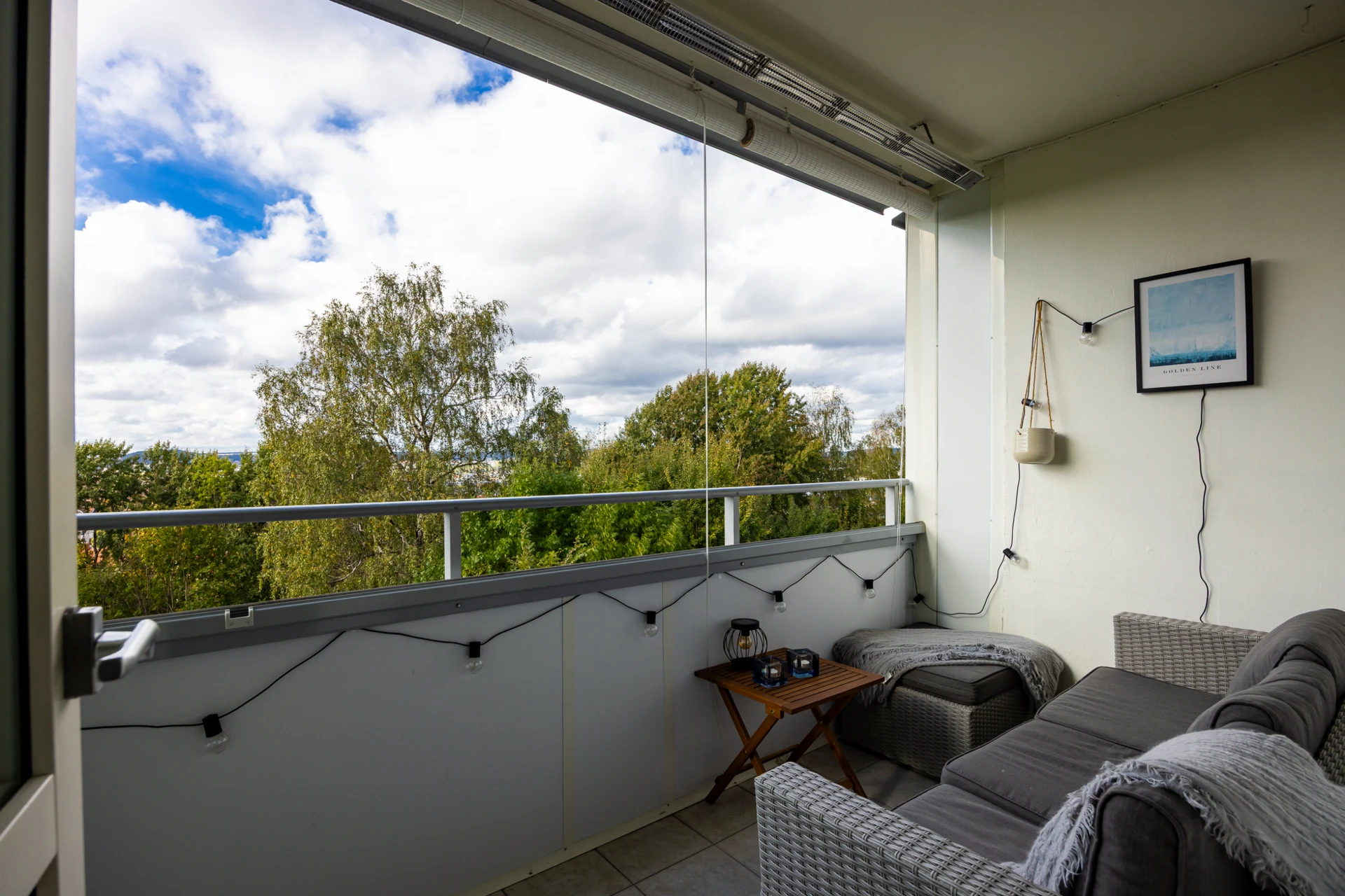 Väplanerad tvåa med inglasad balkong och panoramautsikt över staden!