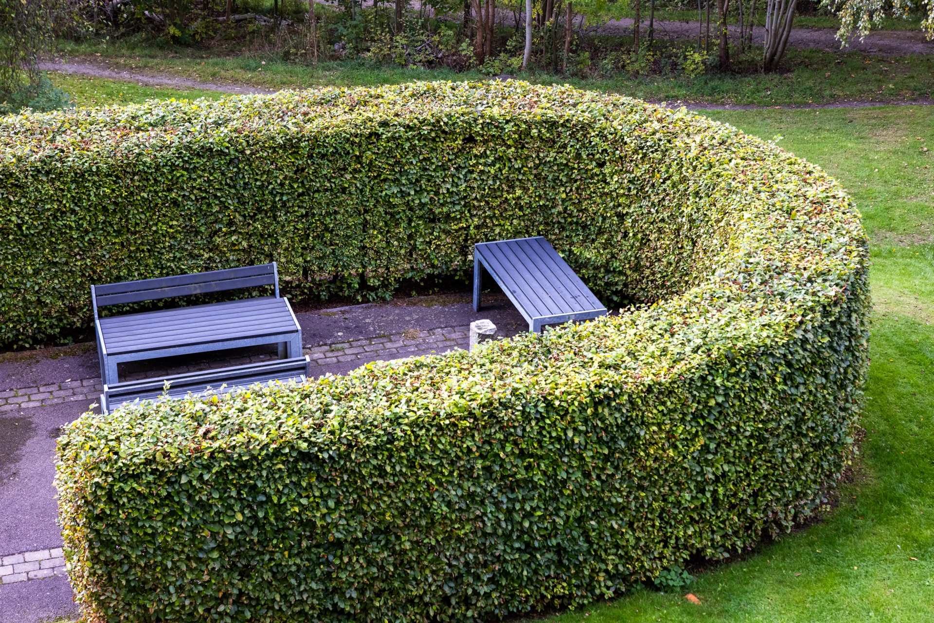 I området finns trevliga uteplatser med utomhusmöbler. Det finns även odlingslotter och en lekplats för barnen.