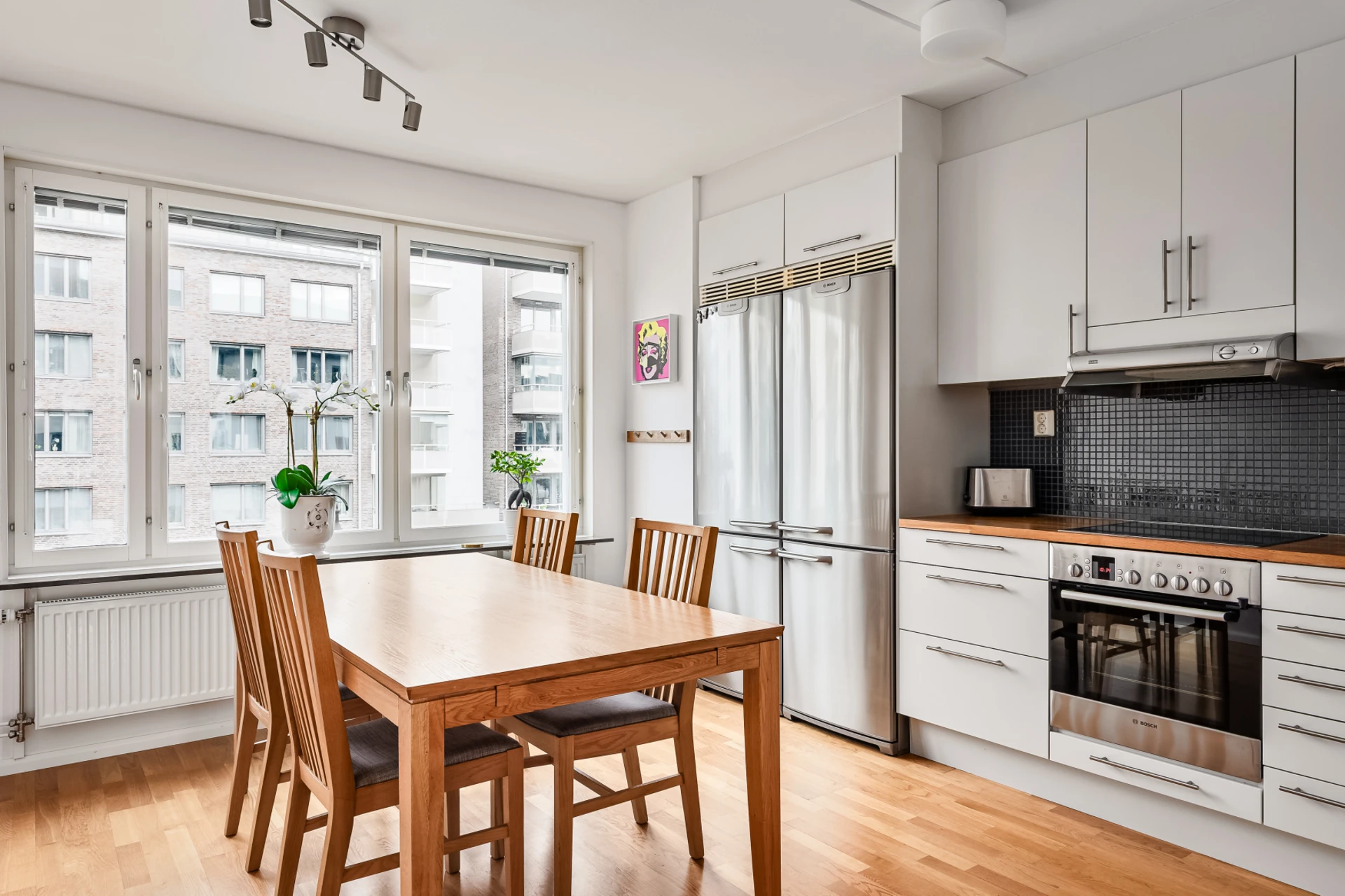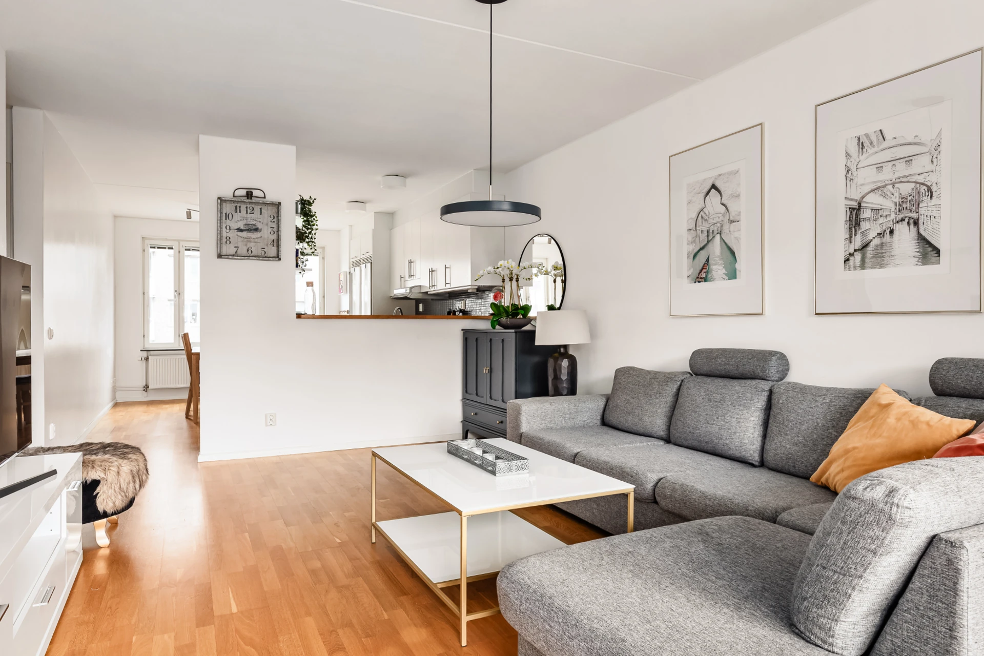 Välkomna till denna välplanerade trea med social planlösning som bjuder in till härligt umgänge med familj och vänner. Balkongen förlänger vardagsrummet och är belägen mot den lugna gården som vetter mot grönska. Här finns gott om plats för utemöbler och egna planteringar. Kök och vardagsrum ligger i en halvöppen planlösning med trevlig bardel. Smakfullt renoverat badrum i sandbeige kulör med svarta detaljer och dusch med stilren glasvägg. Välplanerad planlösning med kvadratmeterna på rätt ställe, sovrum i varsitt hörn av lägenheten och gott om förvaring i både klädkammare och garderober samt all bekvämlighet till vardagen i maskinell utrustning.