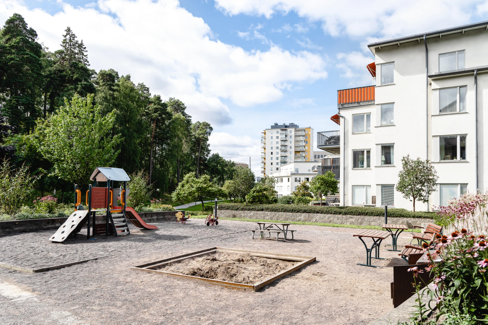Här bor ni i en trevlig förening med tillgång till en mysig gård med grönska och lekplats för barnen. Föreningen installerade solceller 2021 och har goda garagemöjligheter som nås direkt med hiss. Under juli 2025 hade föreningen en avgiftsfri månad.