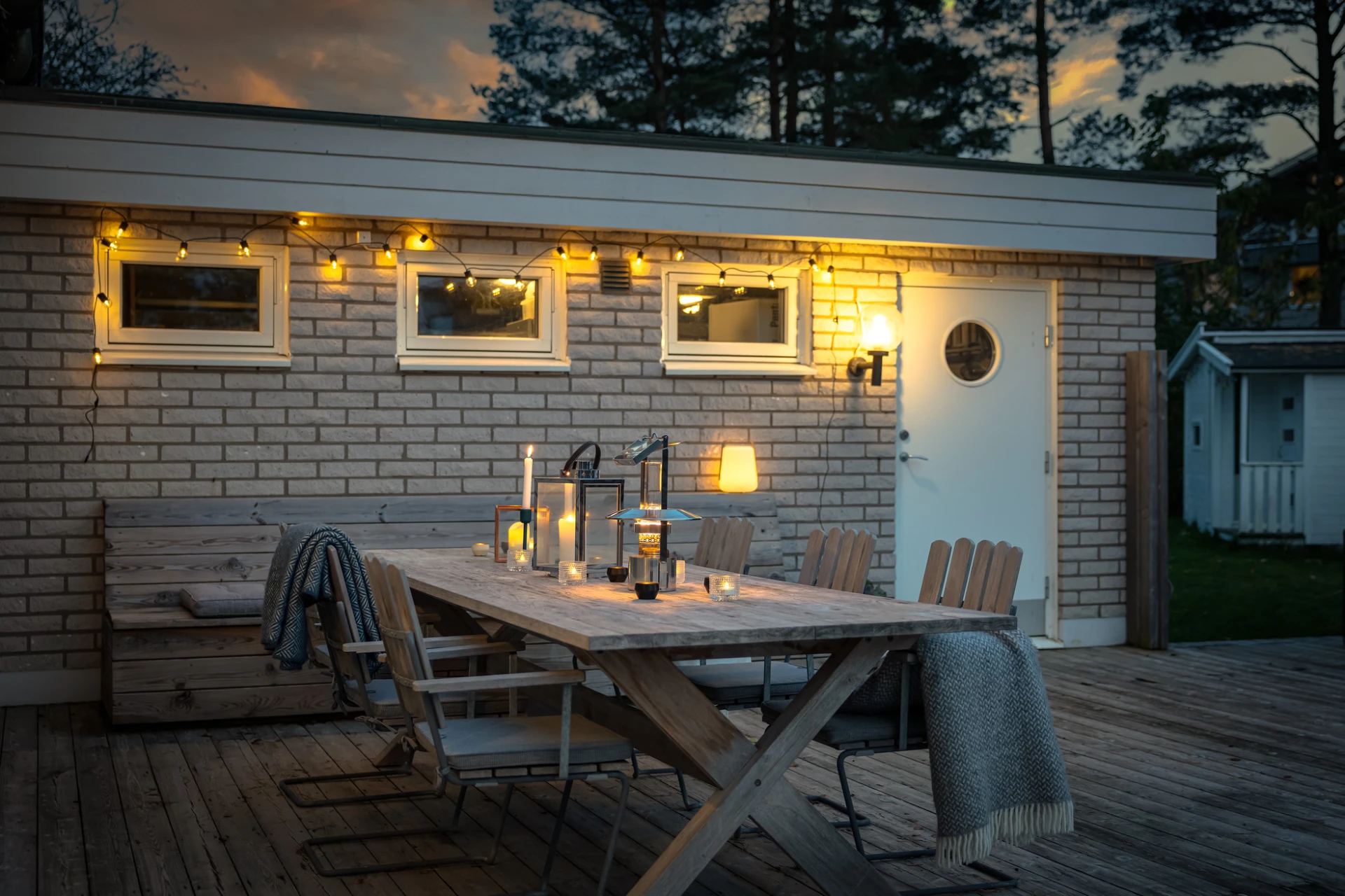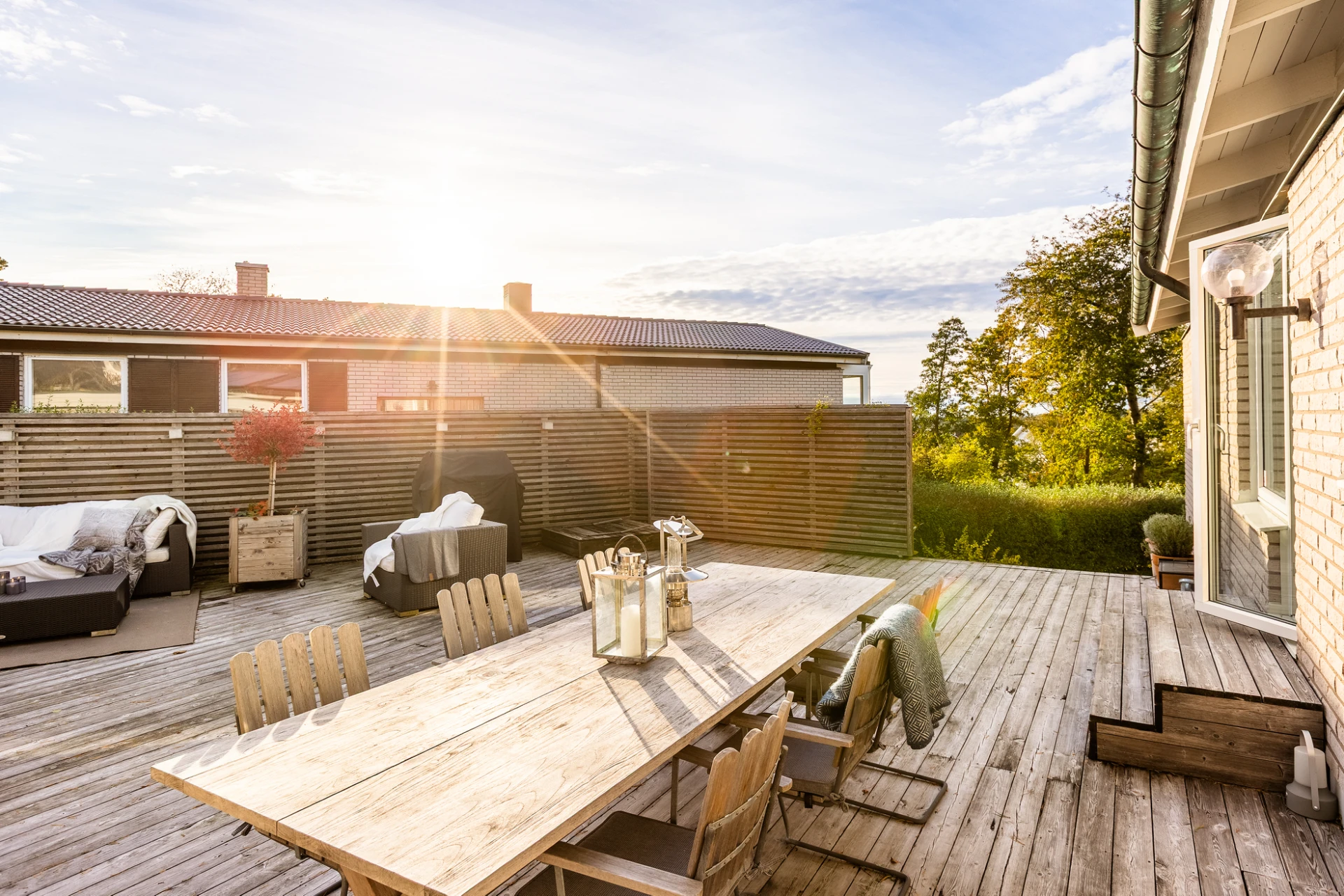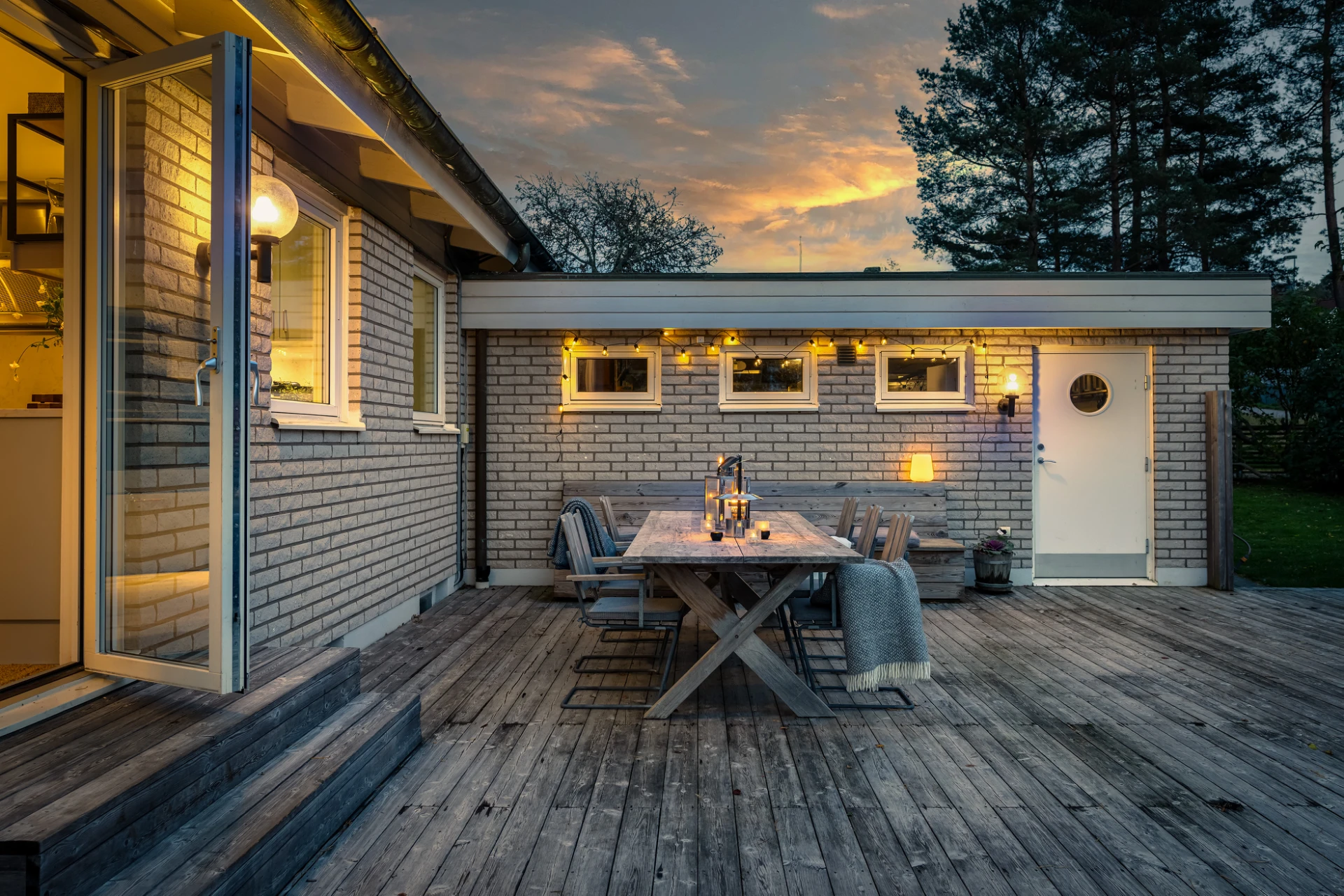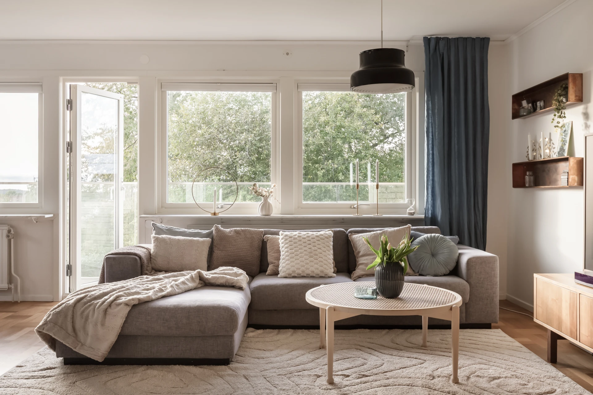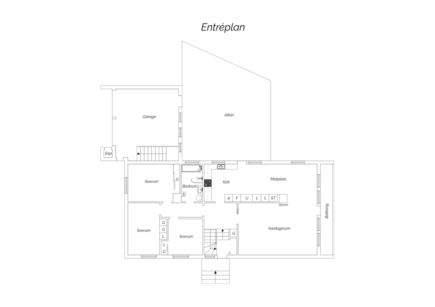 Ekparkett och vitmålade väggar, utgång till både altan och trädgård samt balkong i ljust läge. Plats för stor soffgrupp och matsalsmöbel. Kamin för extra mysfaktor.