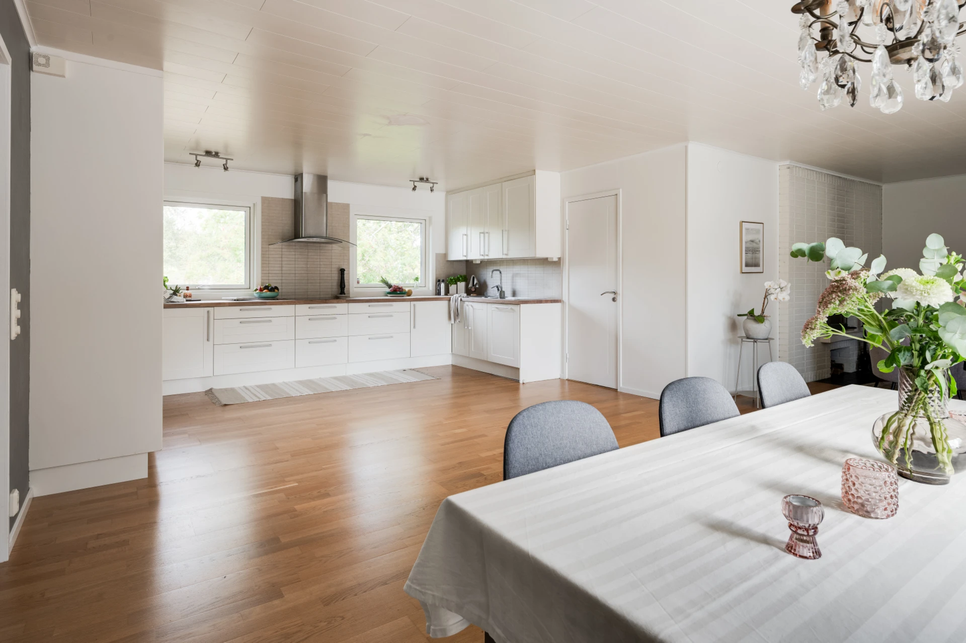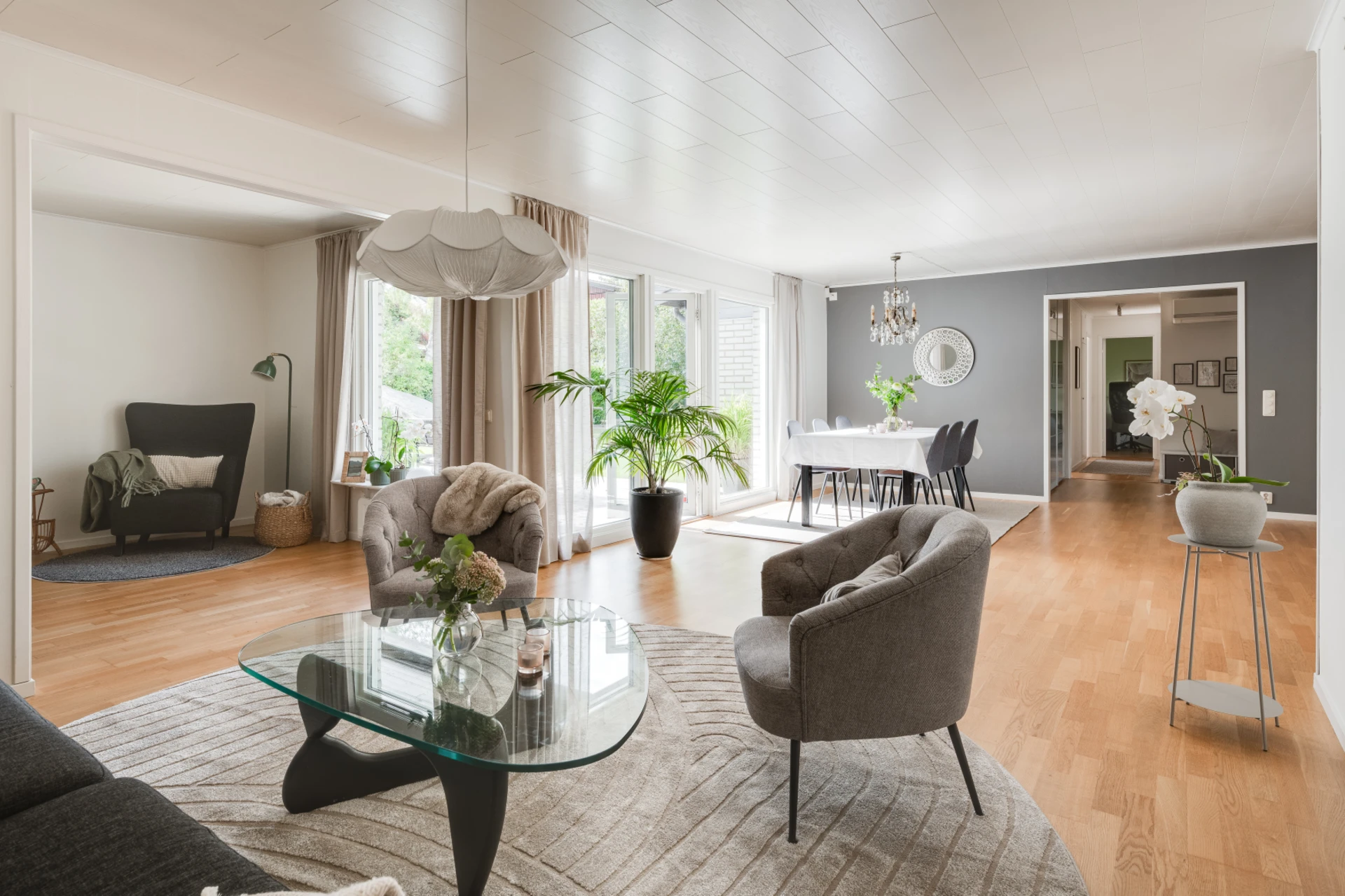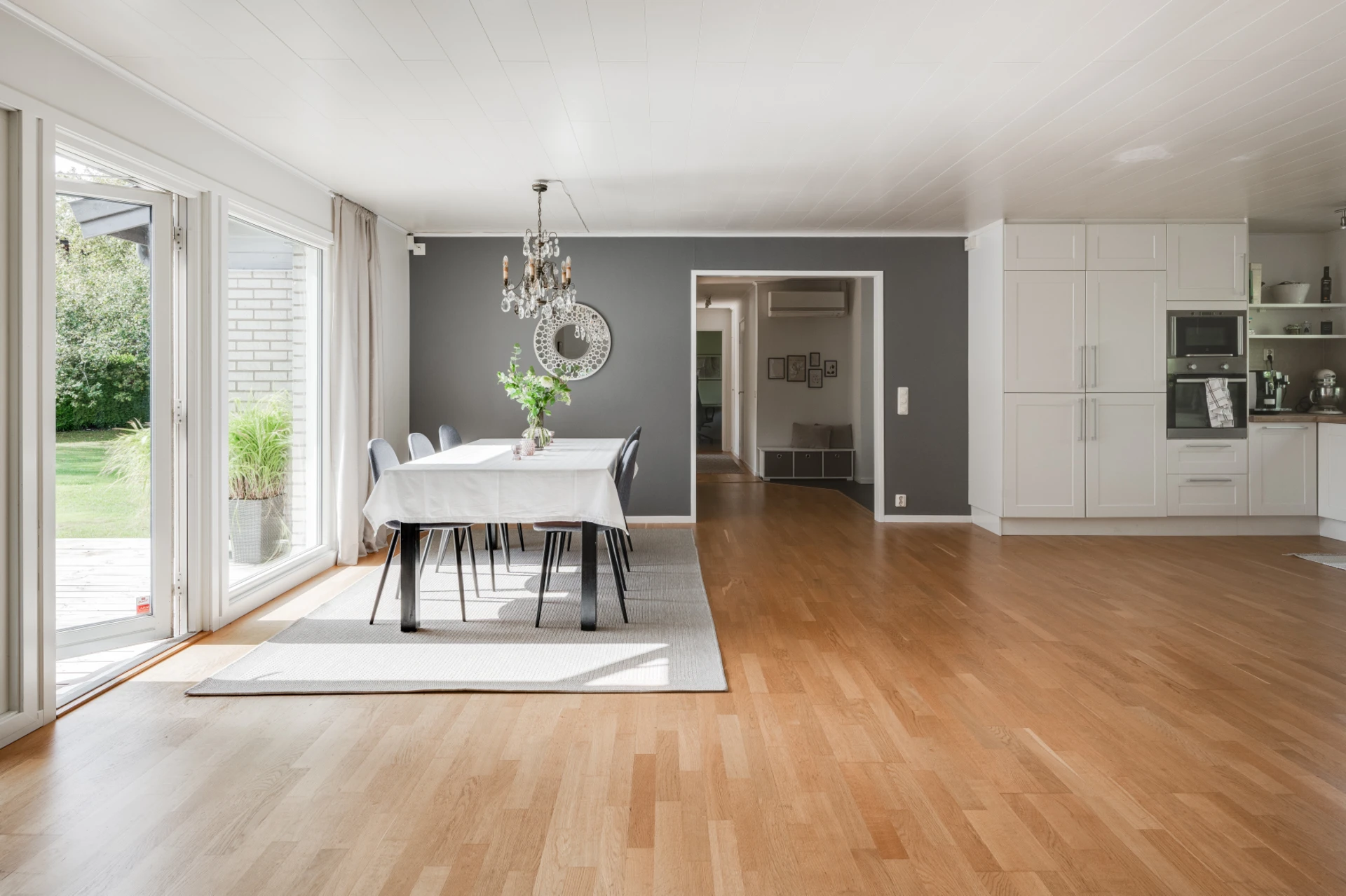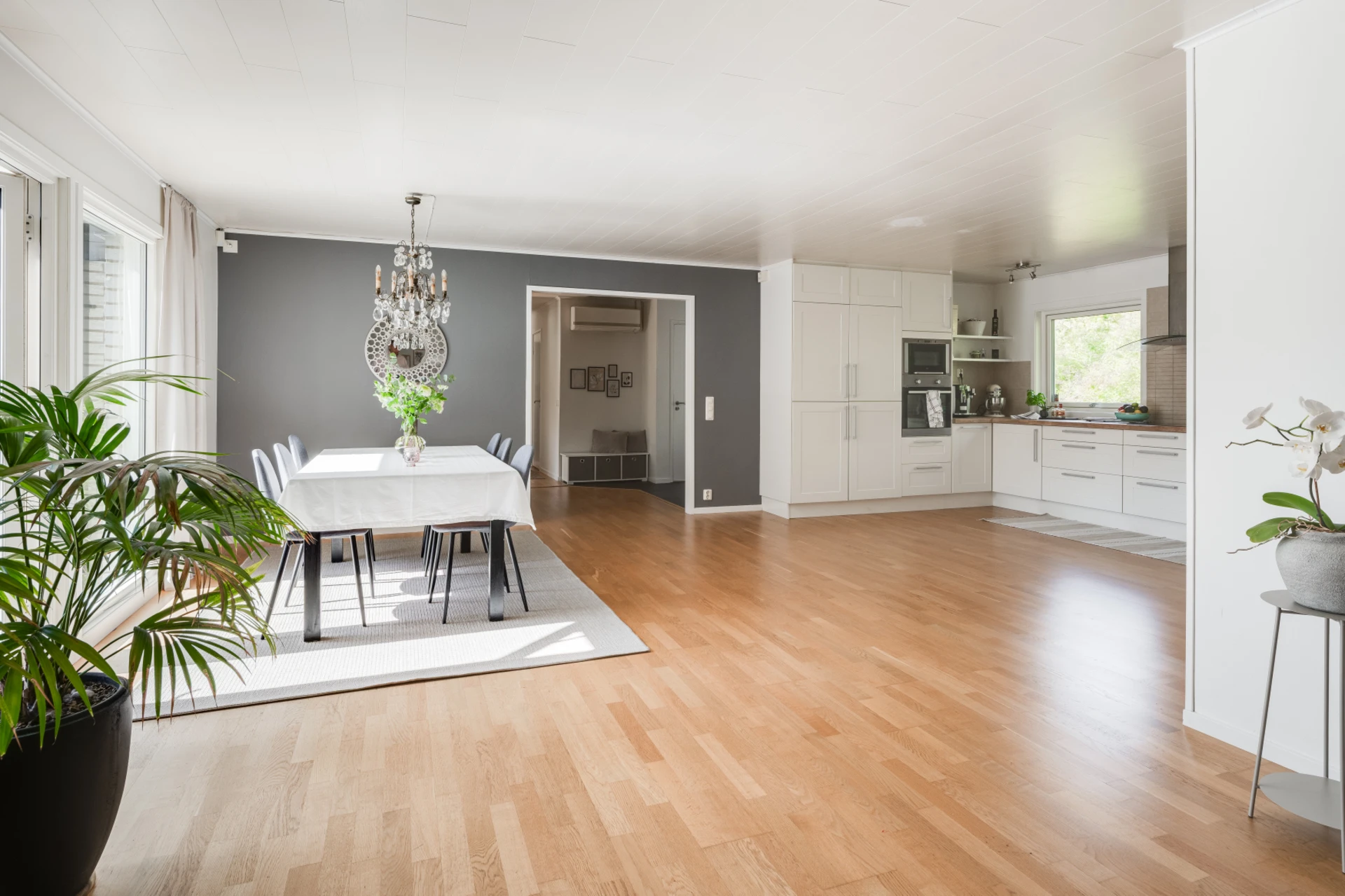 Välkommen till Oxforan 1, ett hem som kombinerar rymd, ljus och smart planering på bästa sätt! Här möts du av en välplanerad enplansvilla som erbjuder gott om utrymme för både vardagsliv och umgänge. Den öppna planlösningen mellan kök och vardagsrum skapar en inbjudande och luftig känsla, där stora fönster i flera väderstreck släpper in dagsljuset och ramar in utsikten mot trädgården.