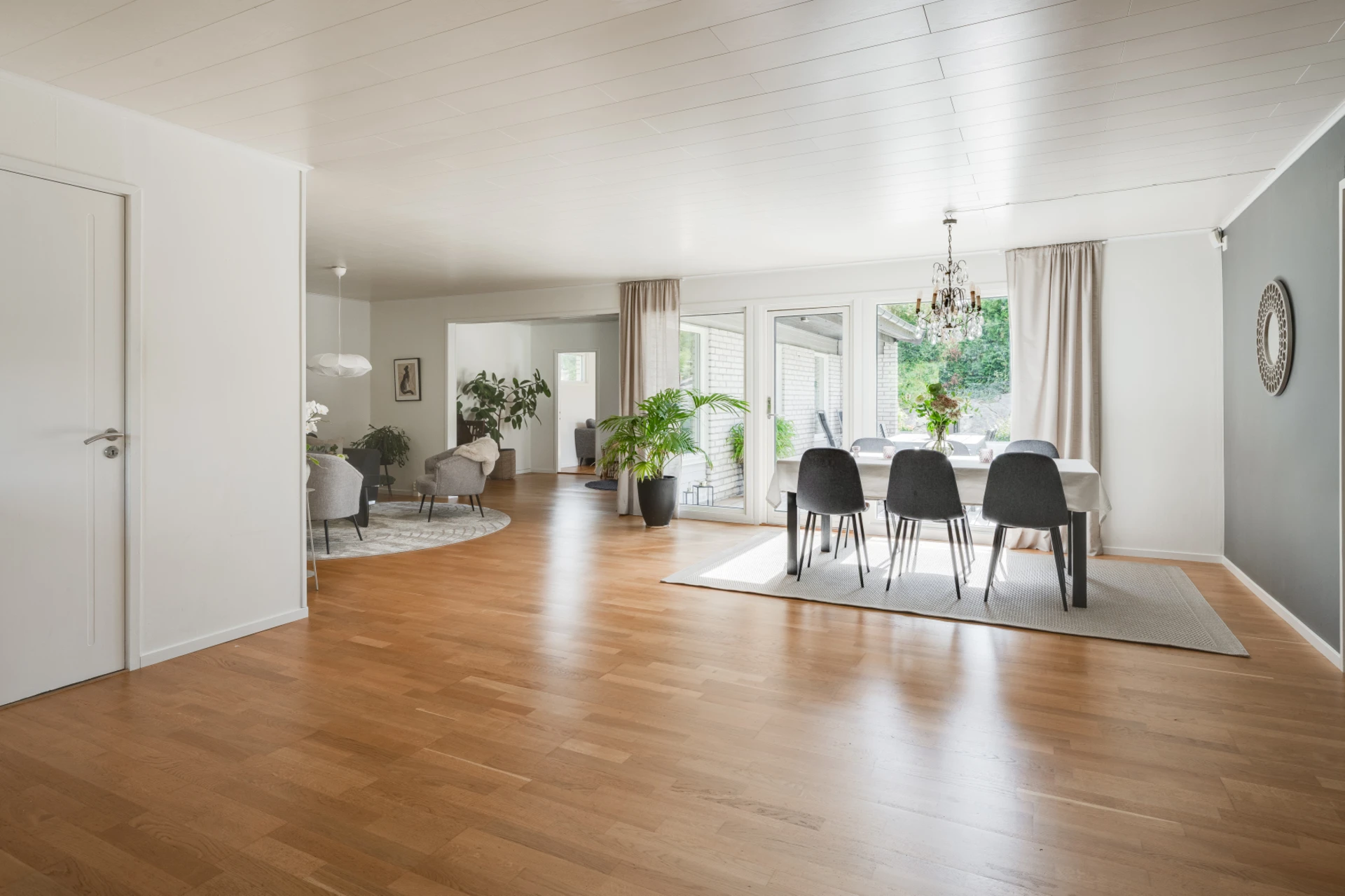 Ljus och rymlig enplansvilla med smart planlösning, härligt ljusinsläpp och högt belägen tomt!