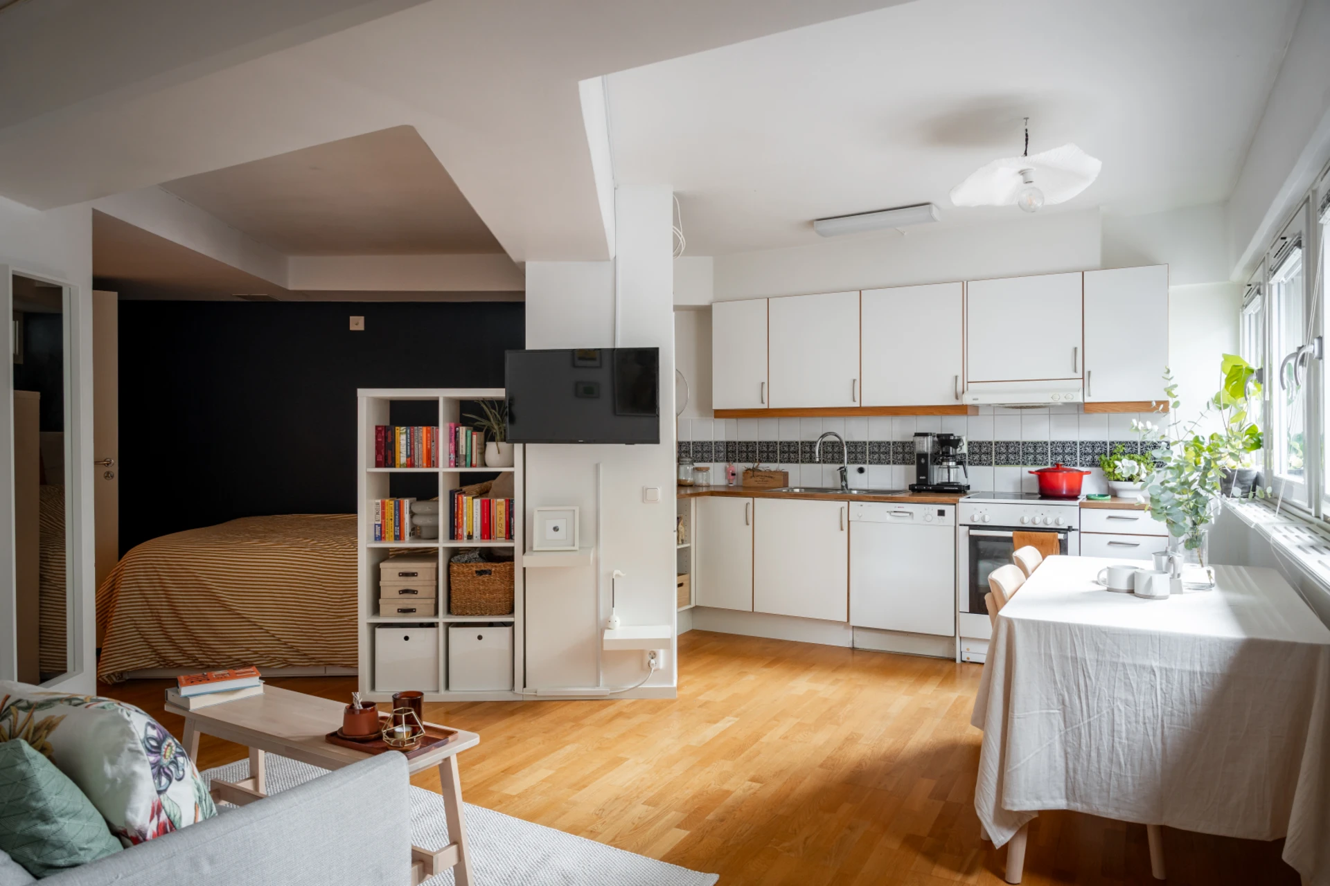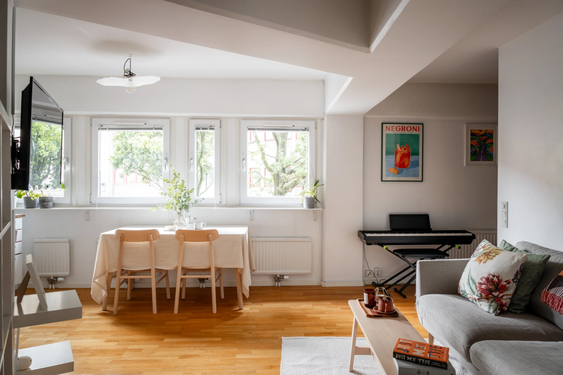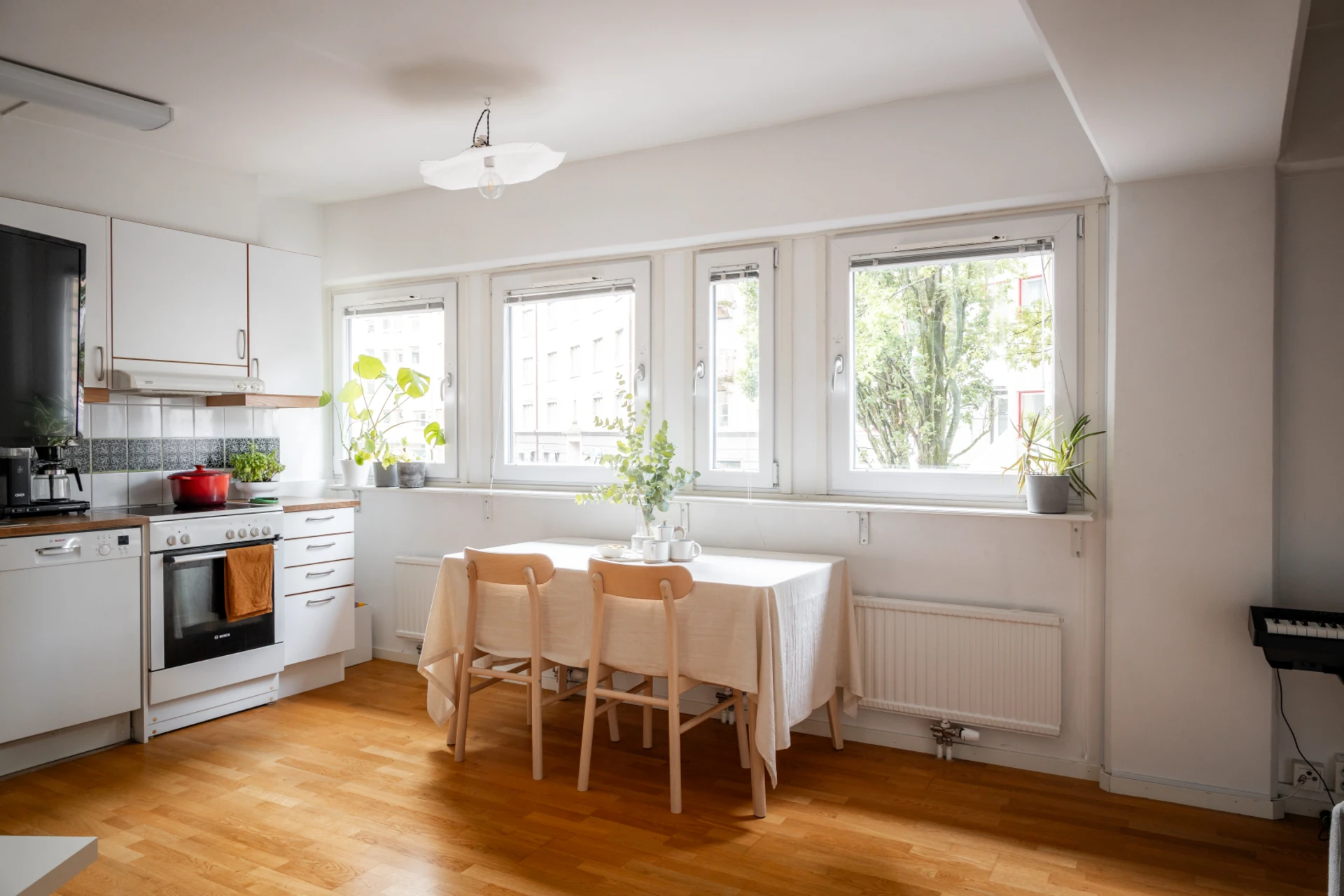 Välkommen till en bostad som bjuder på både smart planlösning och trivsam känsla! Här erbjuds ett fullutrustat kök med plats för matbord för 4–6 personer. Tack vare den genomtänkta planlösningen känns hemmet både luftigt och välkomnande, med tydliga avgränsningar mellan olika delar som skapar en känsla av att bo på större yta än kvadratmetrarna visar.