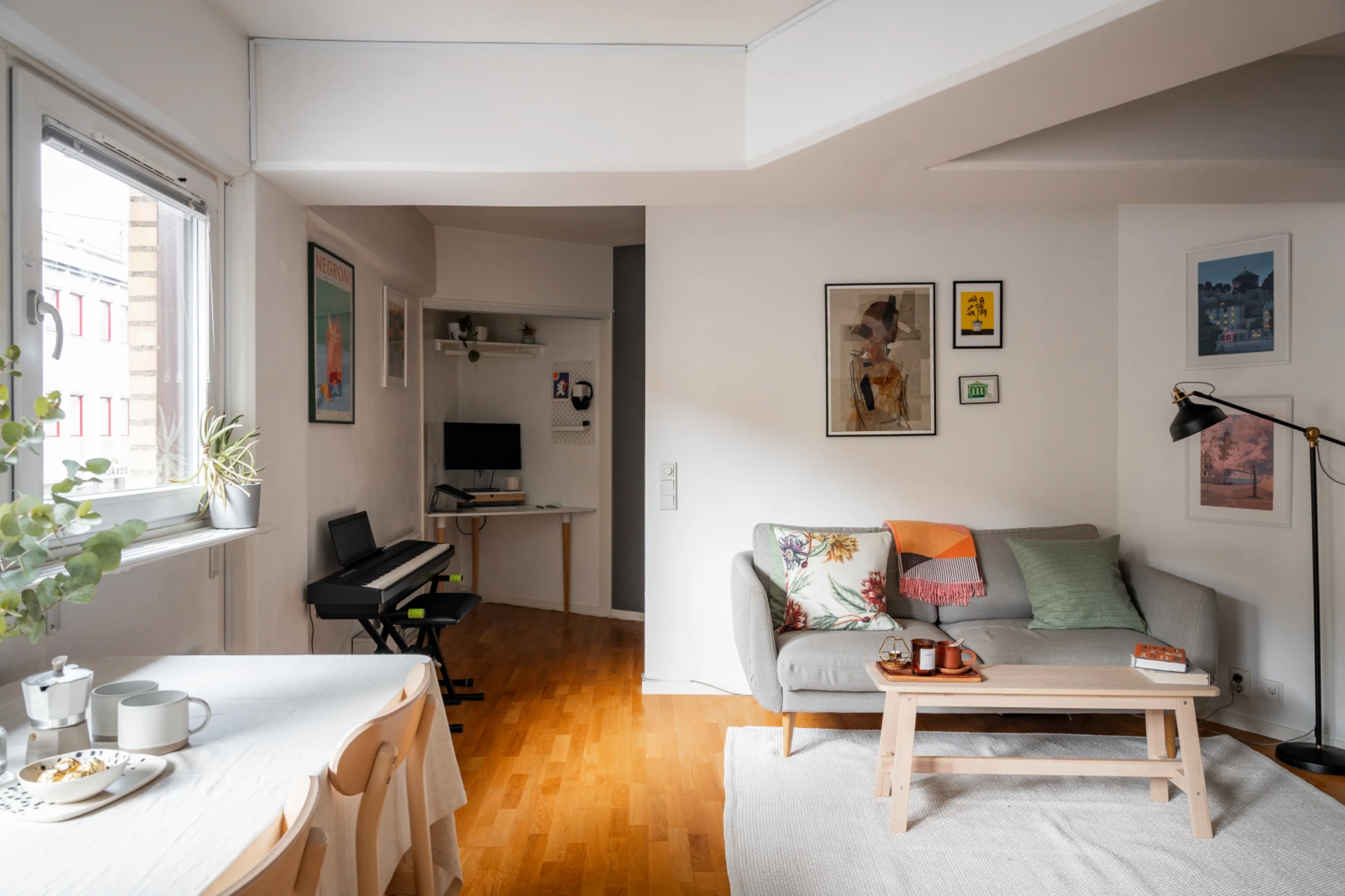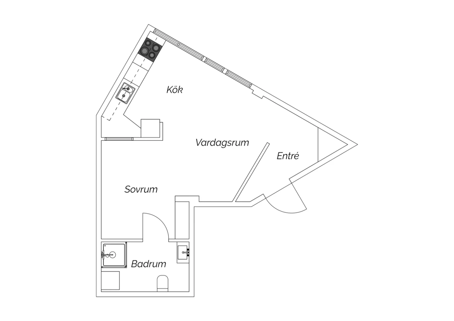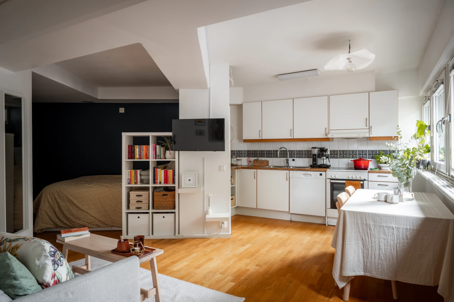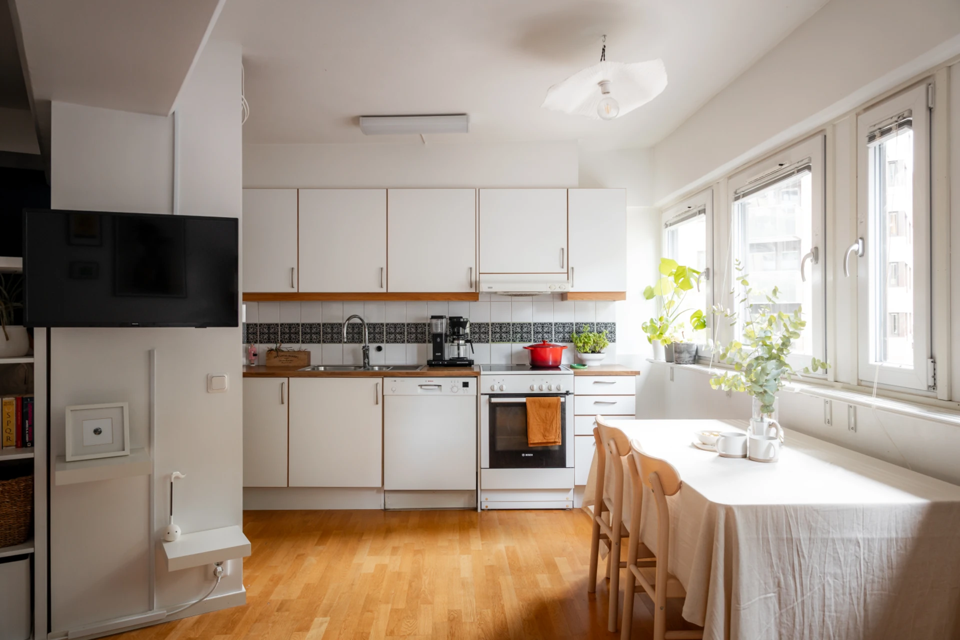 Välkommen till en bostad som bjuder på både smart planlösning och trivsam känsla! Här erbjuds ett fullutrustat kök med plats för matbord för 4–6 personer. Tack vare den genomtänkta planlösningen känns hemmet både luftigt och välkomnande, med tydliga avgränsningar mellan olika delar som skapar en känsla av att bo på större yta än kvadratmetrarna visar.