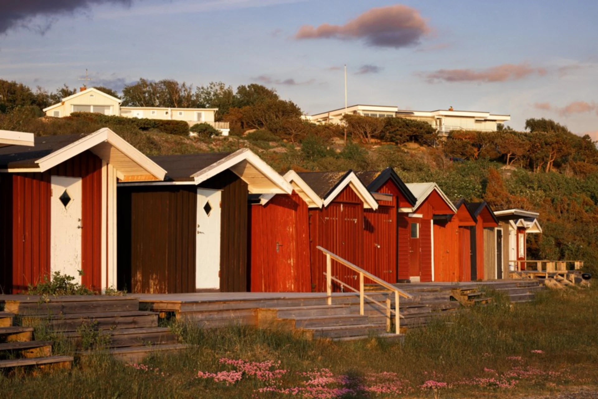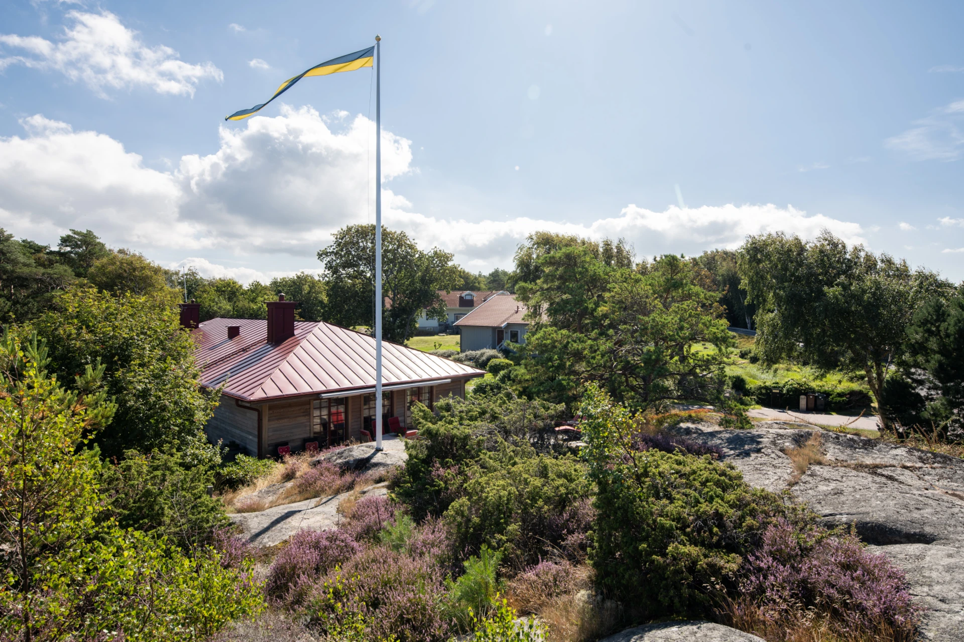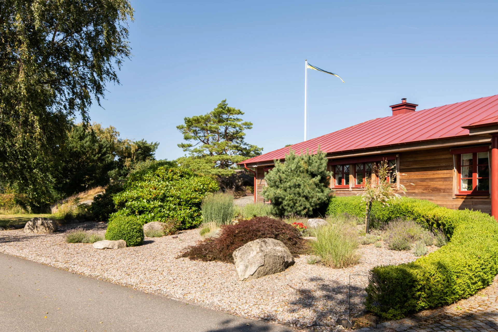 Massivt ekgolv med golvvärme möter målade väggar. Stor matsal med generösa fönsterpartier. Här finns plats för minst 12–14 sittande gäster.