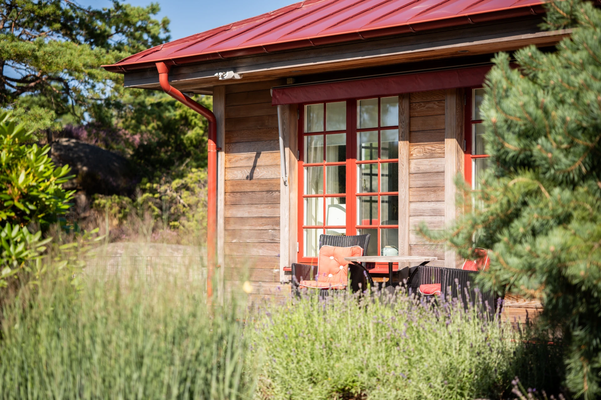 Golv av massiv ek möter målade väggar. För förvaringen finns en 2,40 meter bred garderob. Golvvärmen sprider en behaglig värme och de dimbara spotlightsen ger möjlighet till både stämningsbelysning och perfekt städljus.
