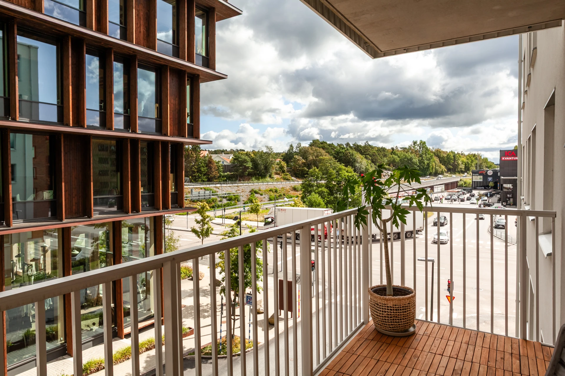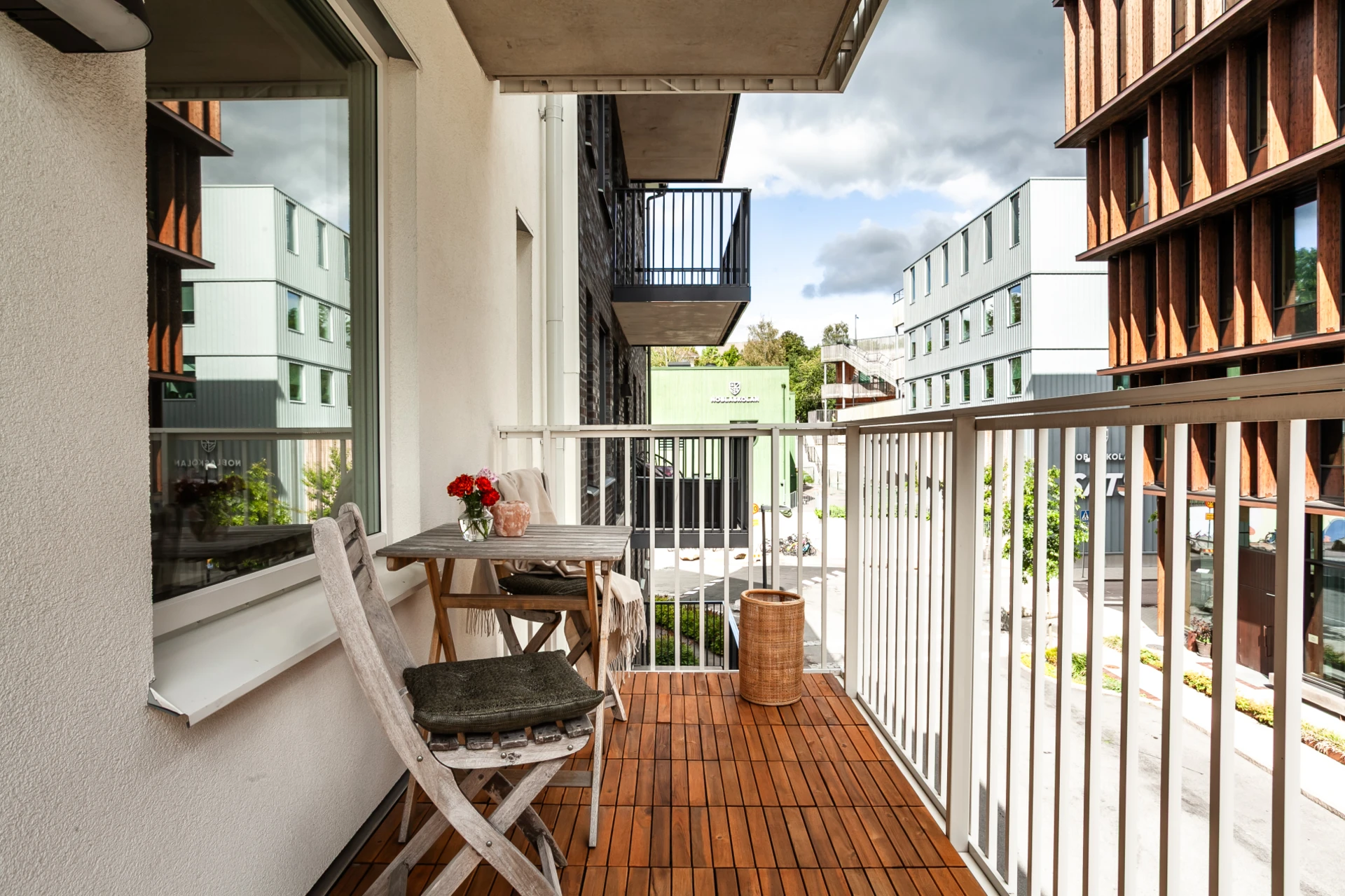 Balkongen i östläge är rymlig och har gott om plats för såväl möblemang som odlingslådor och grill för den som så önskar.